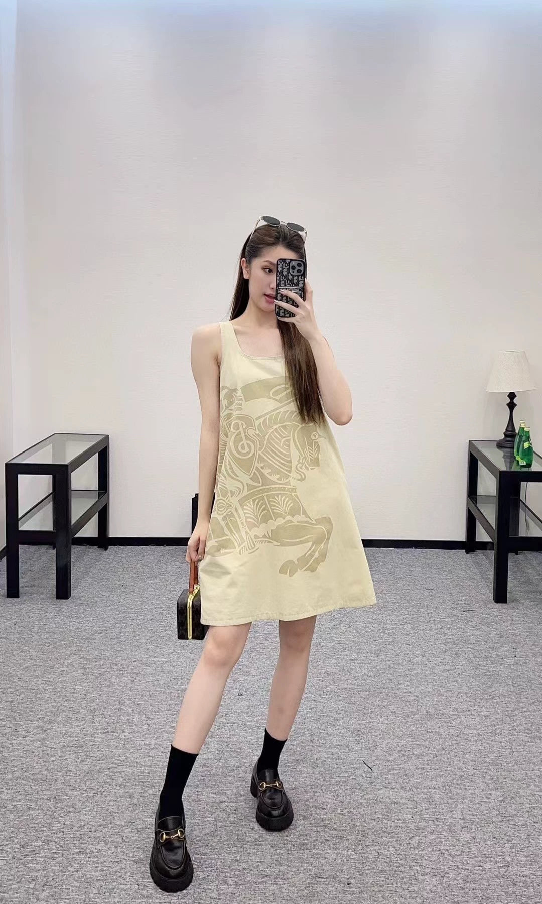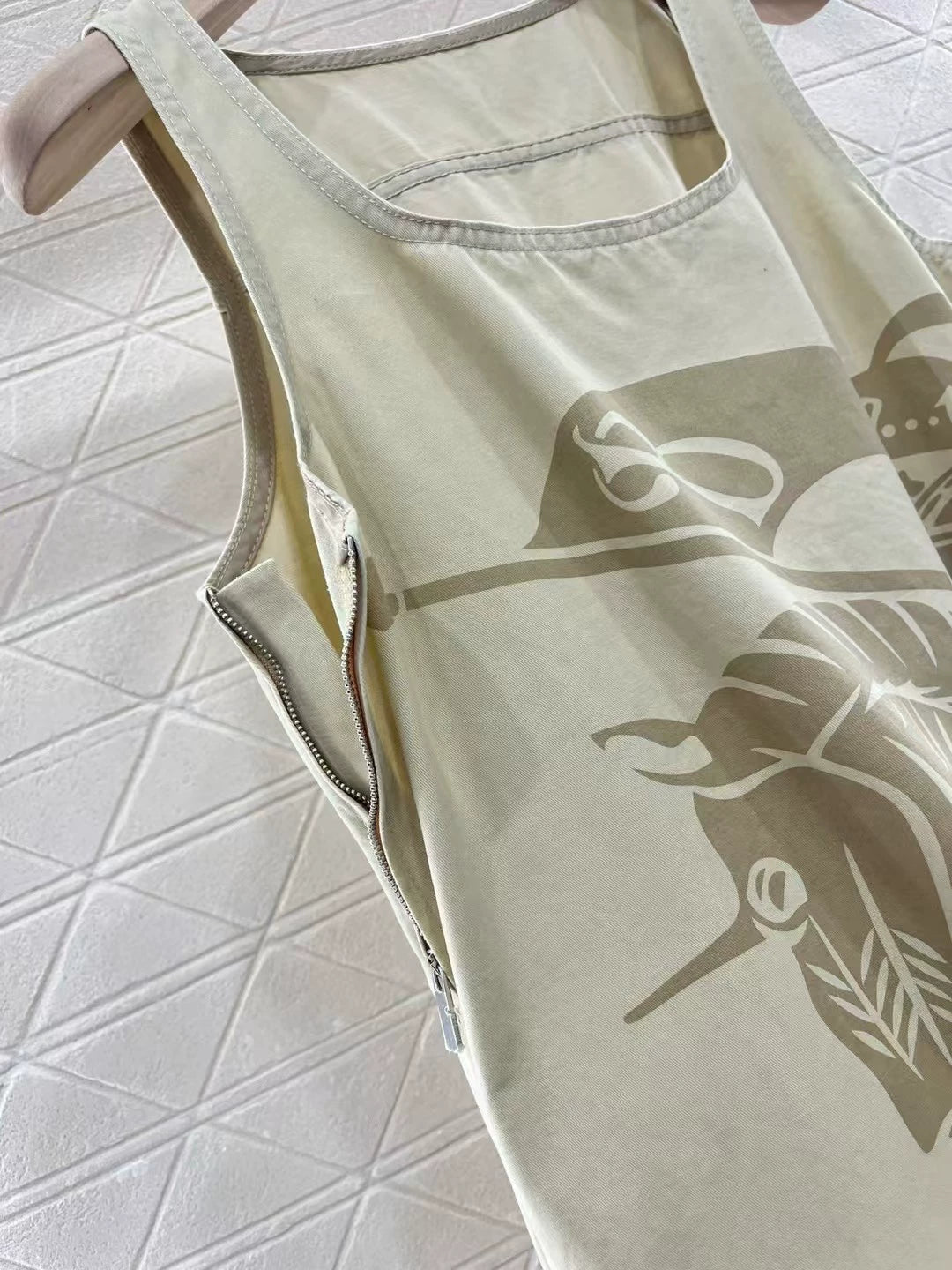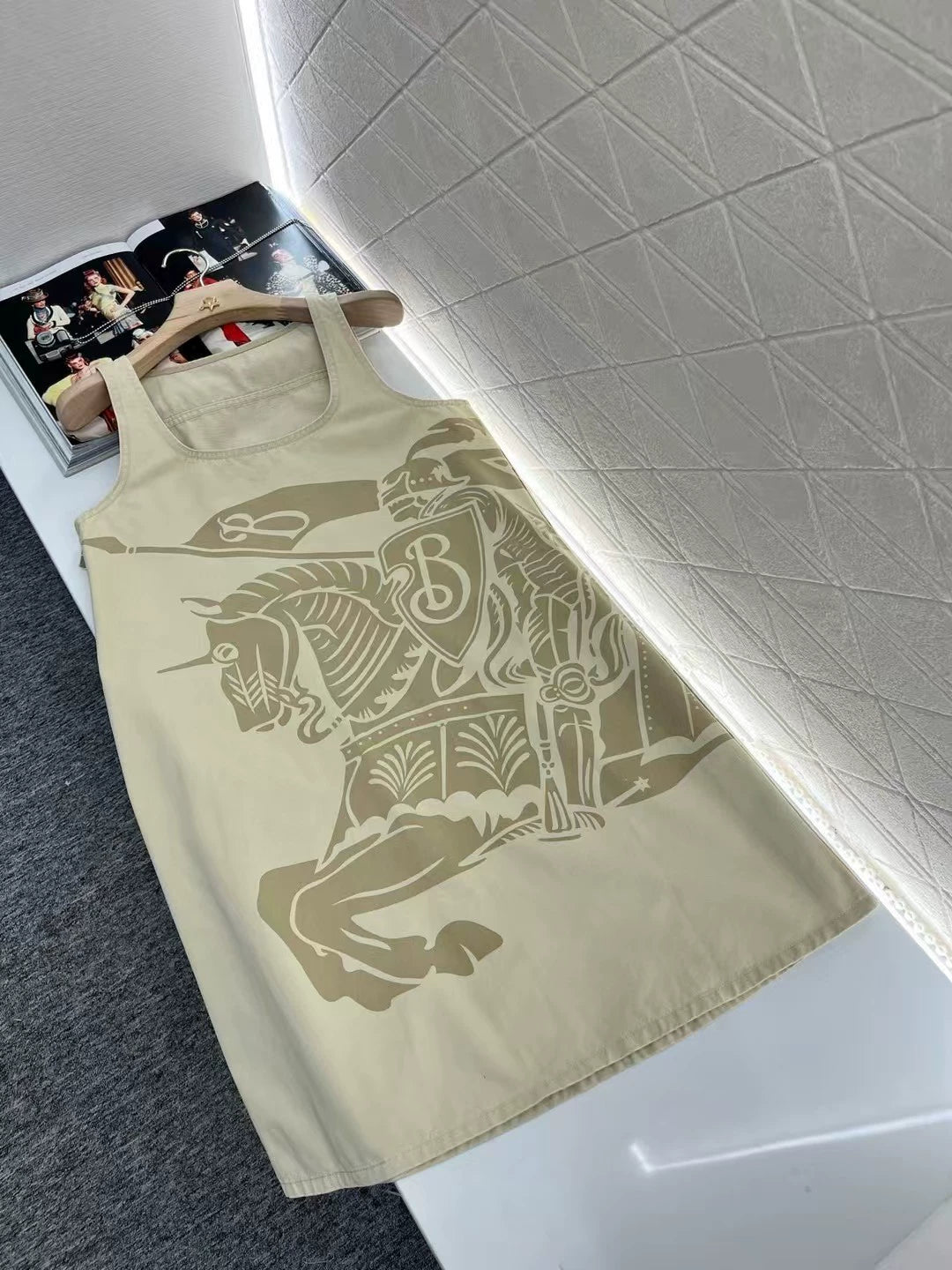 Customized YB imported twill cotton denim material Enzymatic process washed Three-dimensional and shaped Soft and comfortable Old retro apricot color Decorated with equestrian rider logo pattern decorative highlighting the brand tone Simple and advanced Loose version of the smooth lines Add a sense of modeling layers Fabric and accessories development Sleeveless dress cut Casual wear fashionable fashionable gas