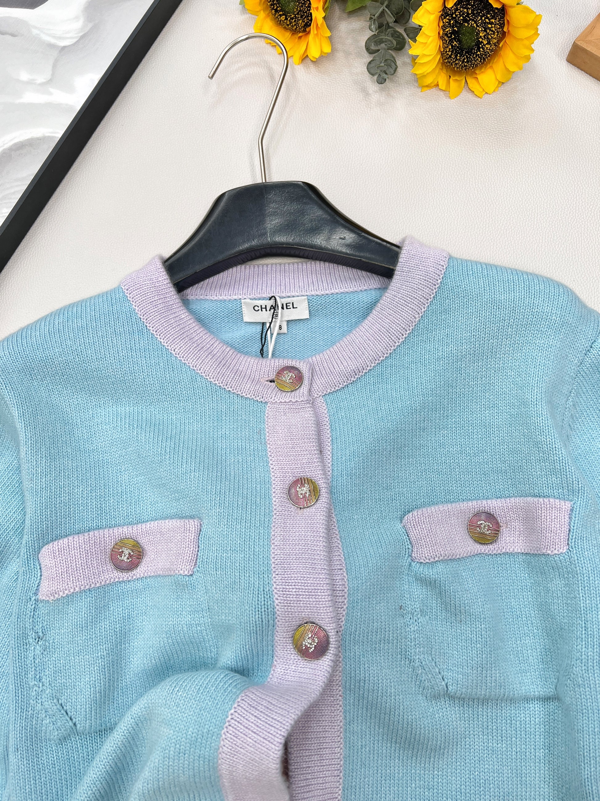 C 24 classic macaron color four-pocket contrast color knitted cardigan