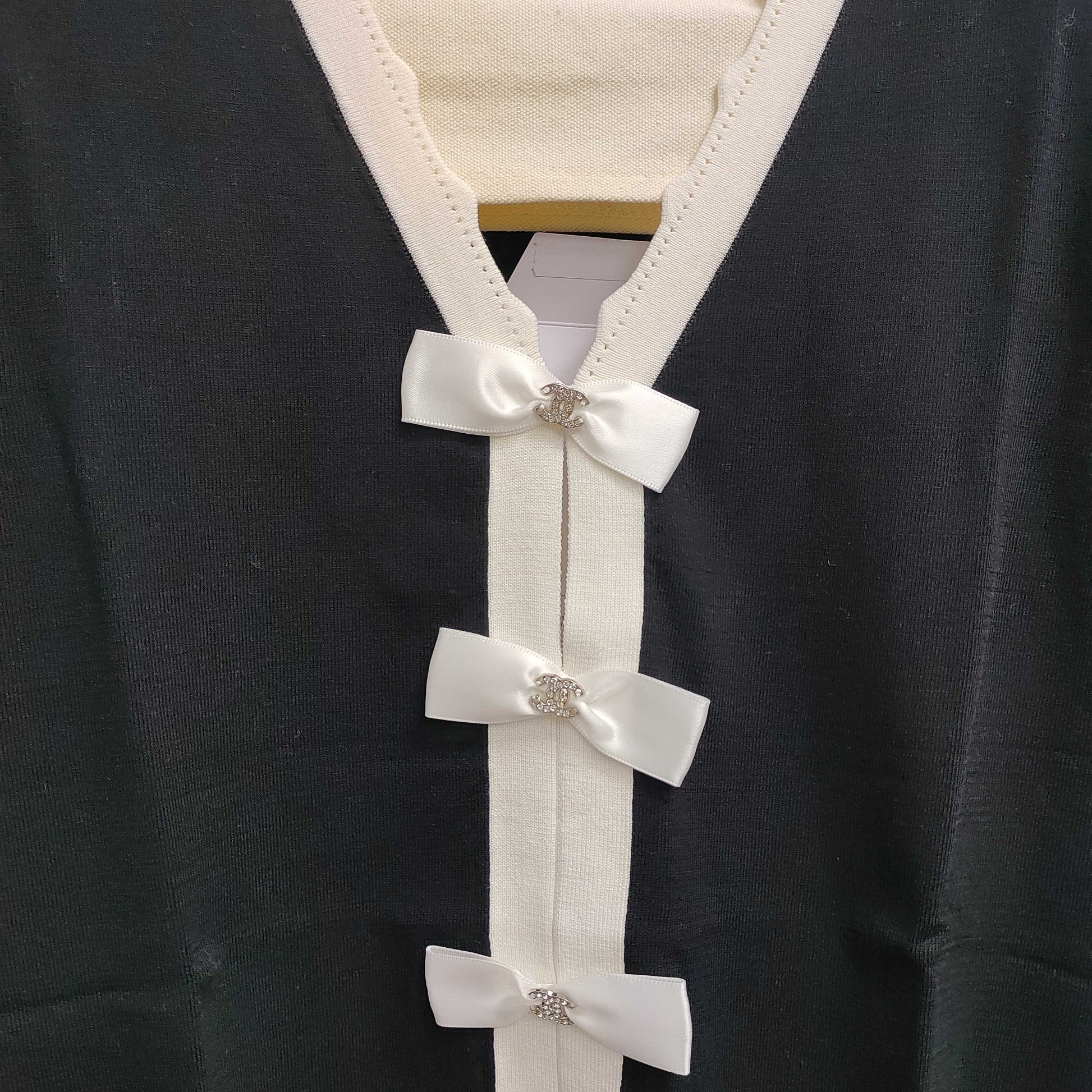 Classic color collision bow placket design, advanced black and white color matching minimalist atmosphere, temperament cardigan stacking magic weapon.V-neck H version design on the upper body giant thin! Luxurious and advanced. Elegant temperament classic version of versatile and not picky people fashionable and advanced!
