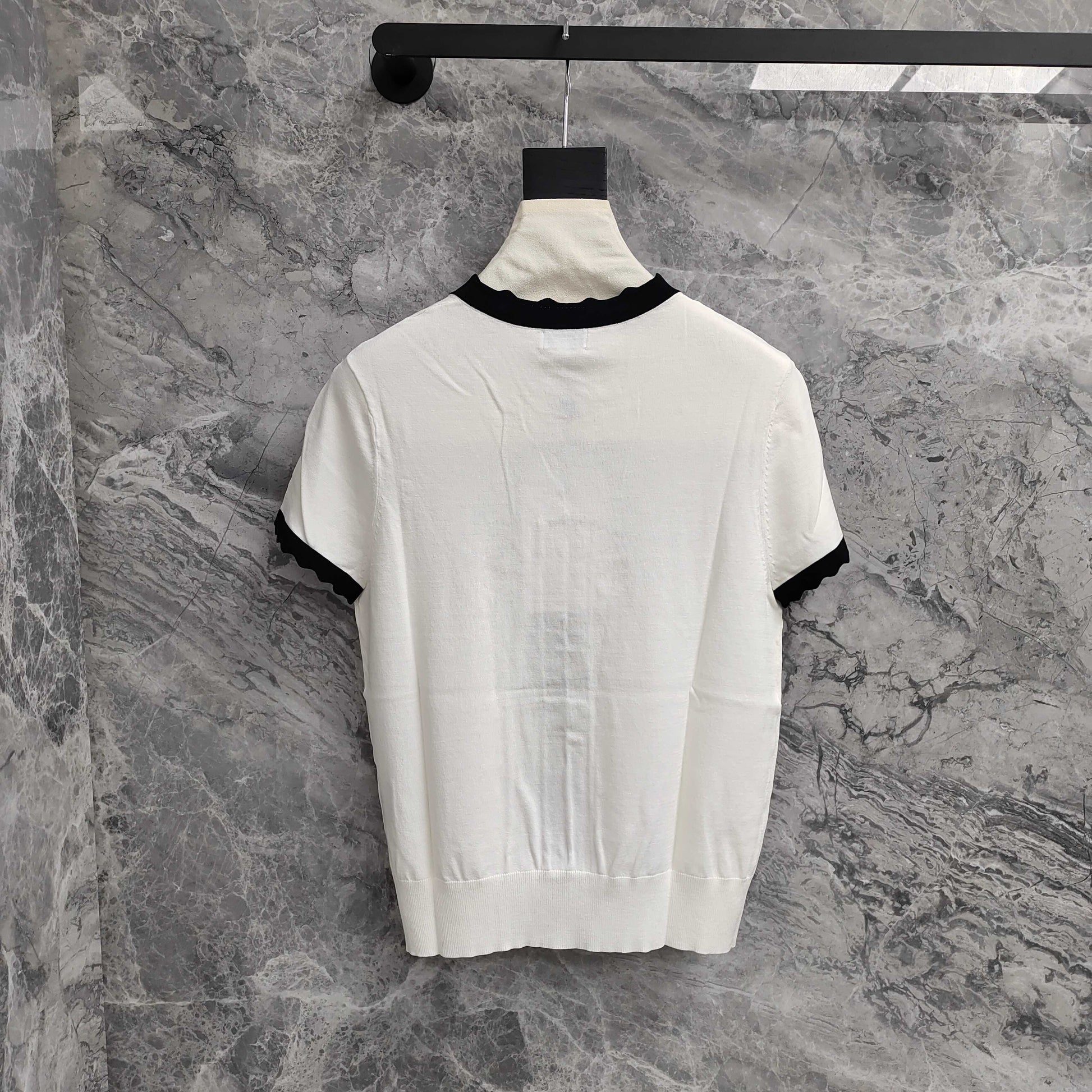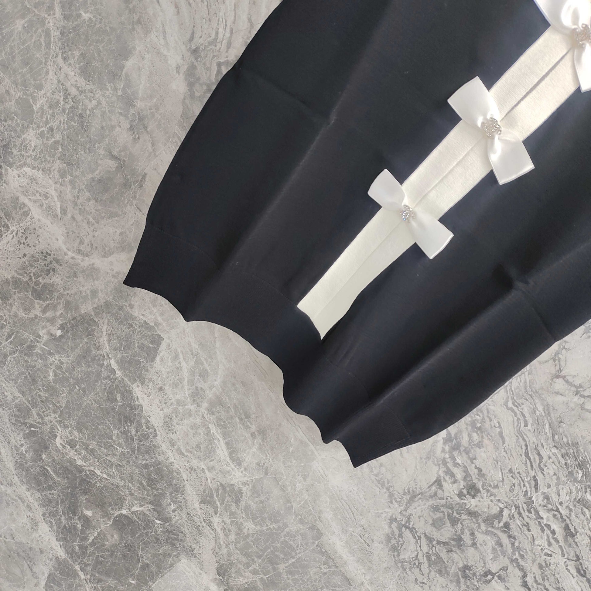 C 25 Black and White Color Clash Bow Knit Short Sleeve