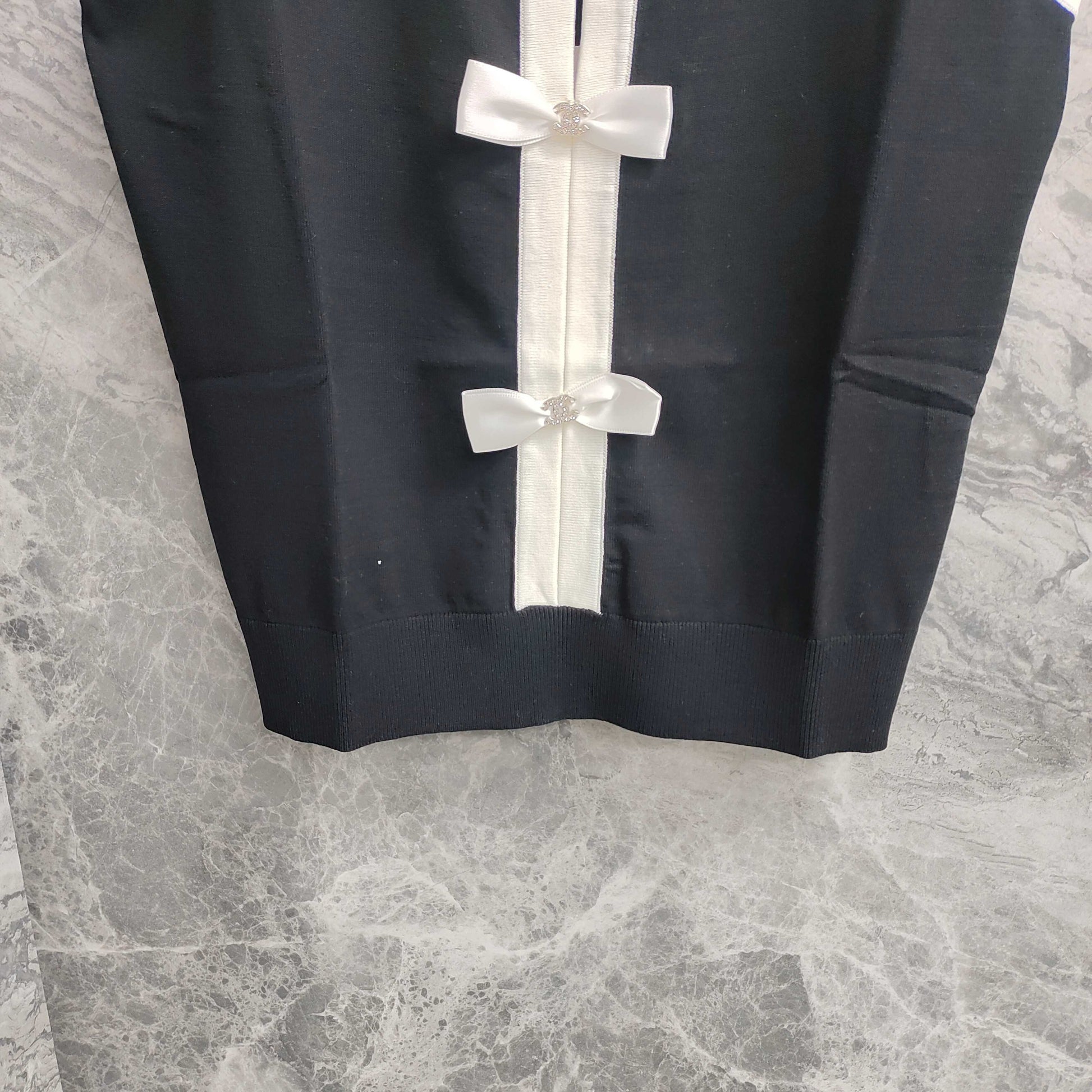 Classic color collision bow placket design, advanced black and white color matching minimalist atmosphere, temperament cardigan stacking magic weapon.V-neck H version design on the upper body giant thin! Luxurious and advanced. Elegant temperament classic version of versatile and not picky people fashionable and advanced!
