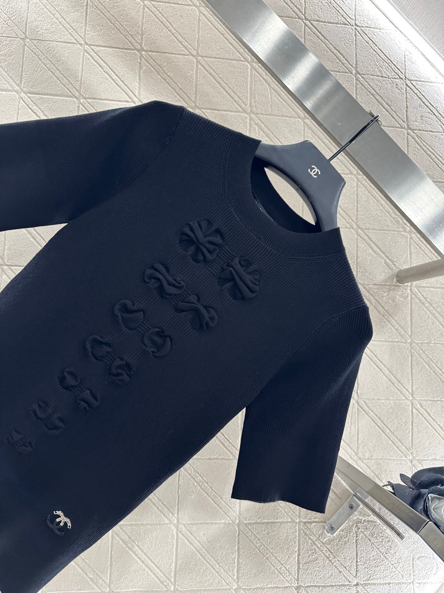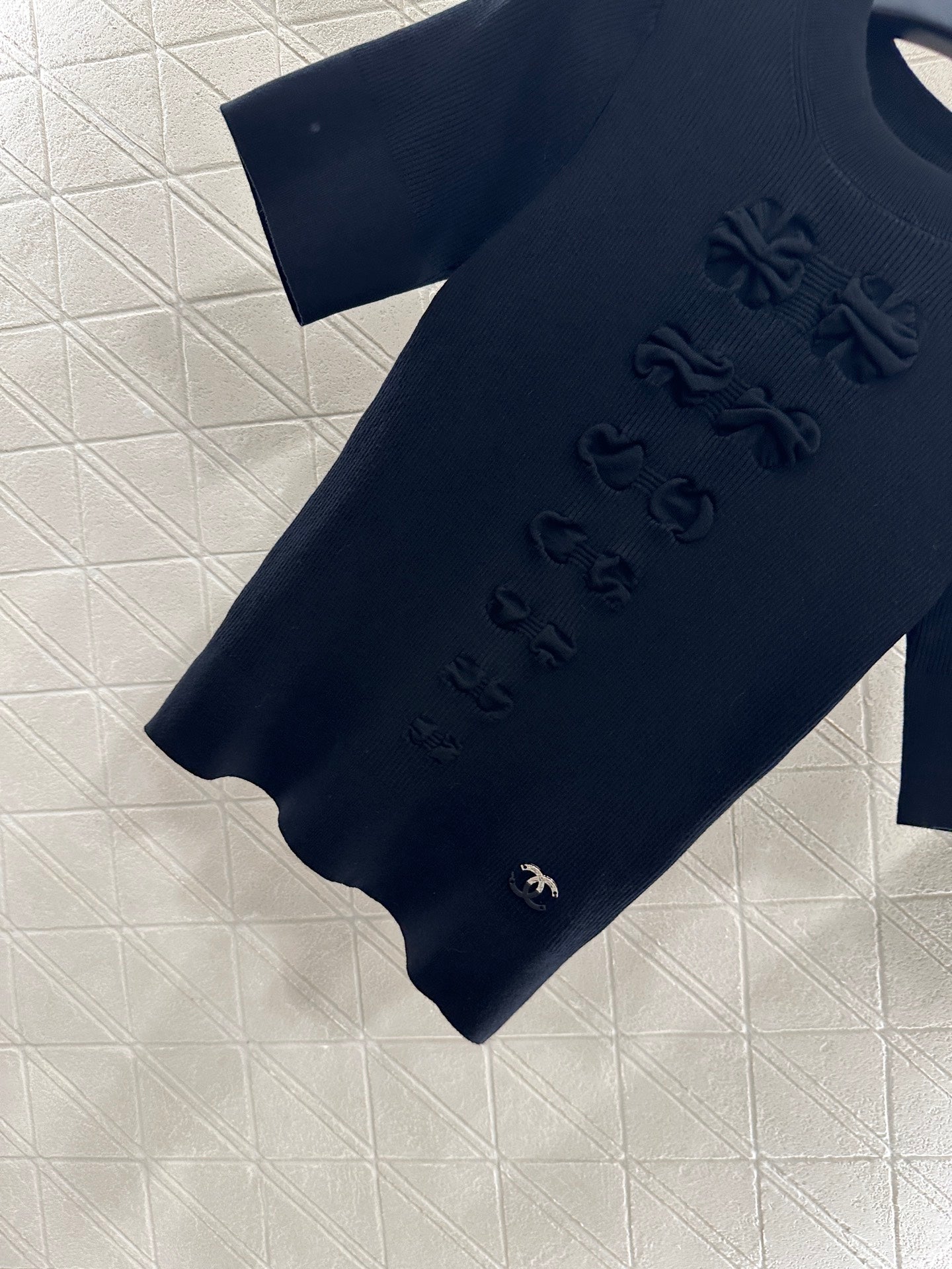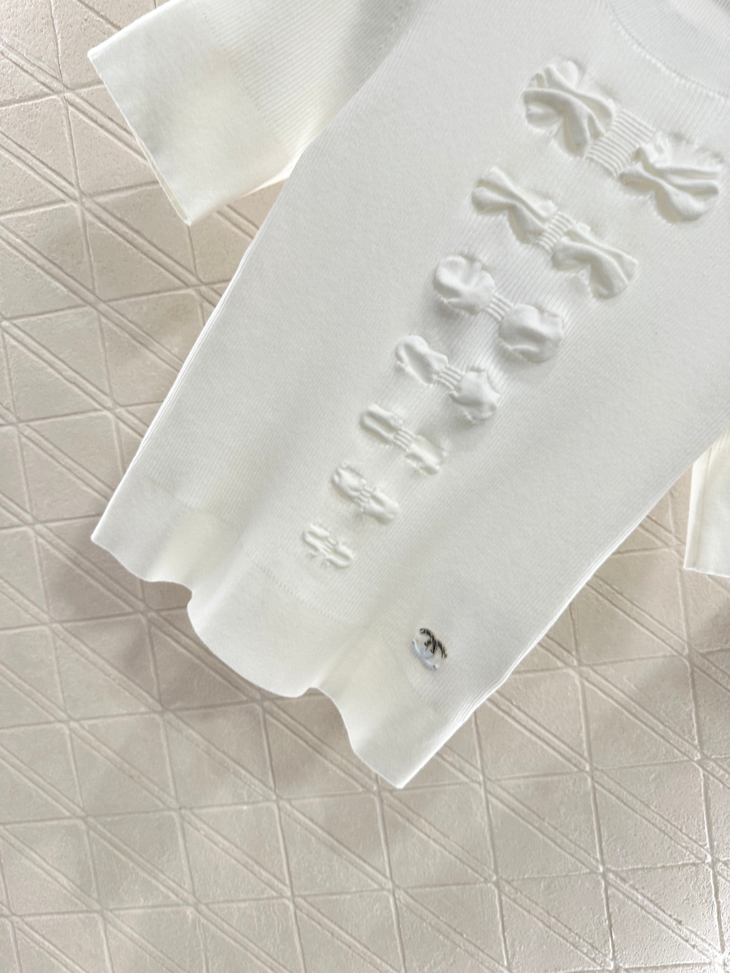 C 25 Bow tie round neck short sleeved sweater(WHITE/BLACK)