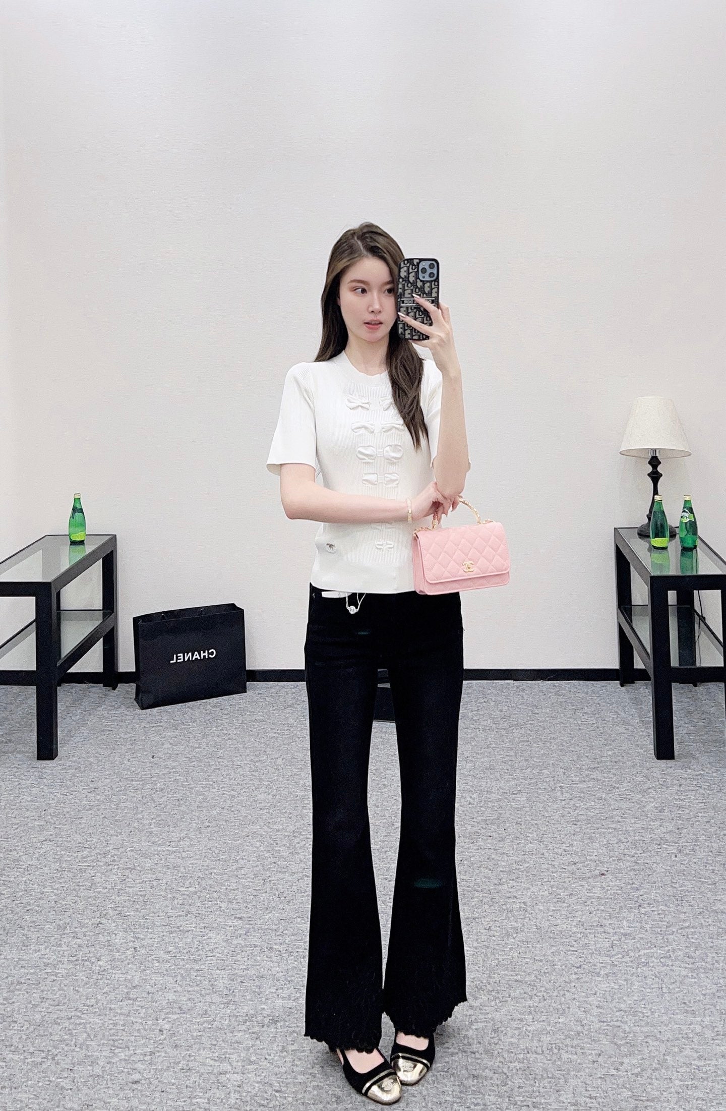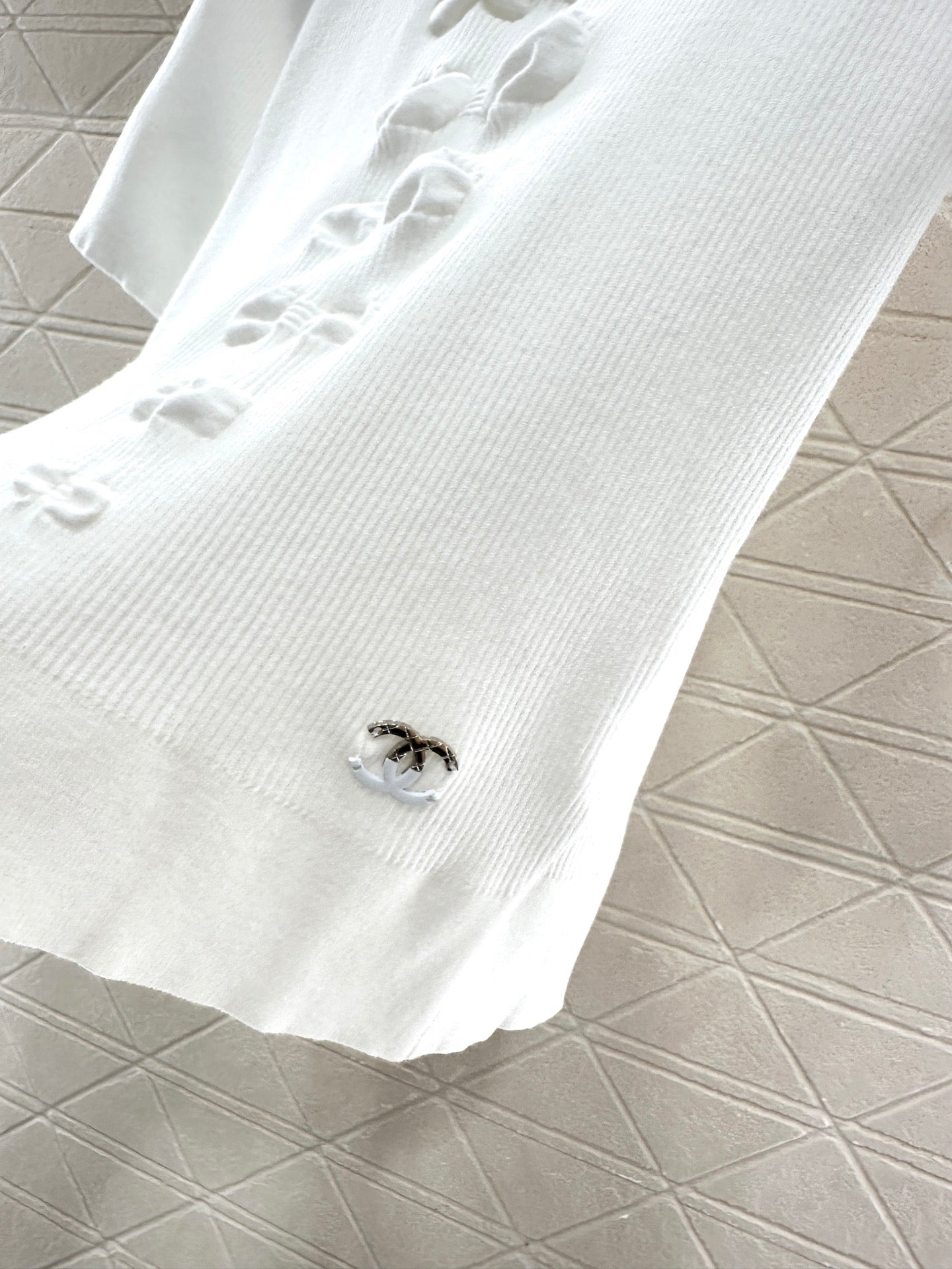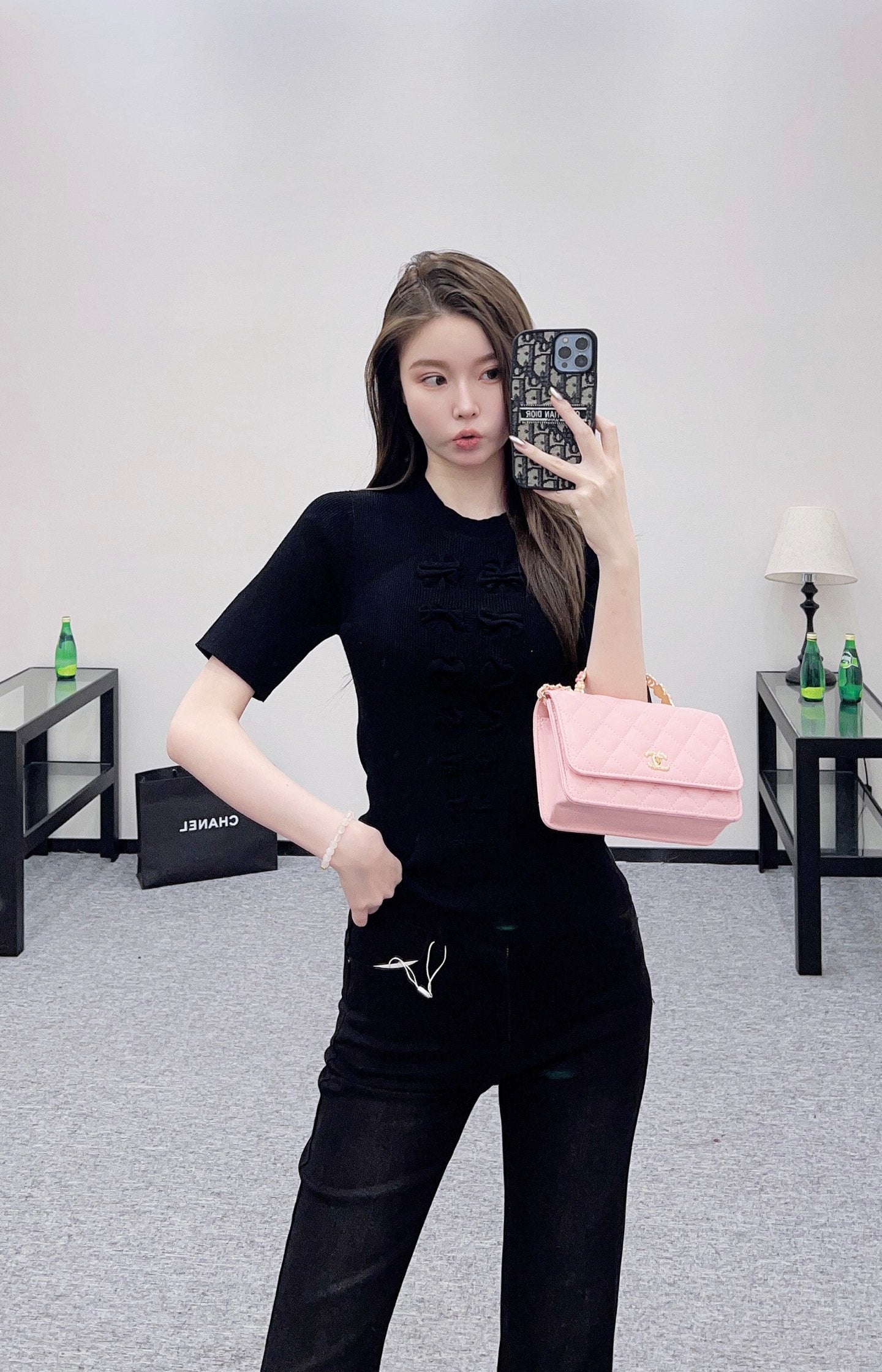 C 25 Bow tie round neck short sleeved sweater(WHITE/BLACK)