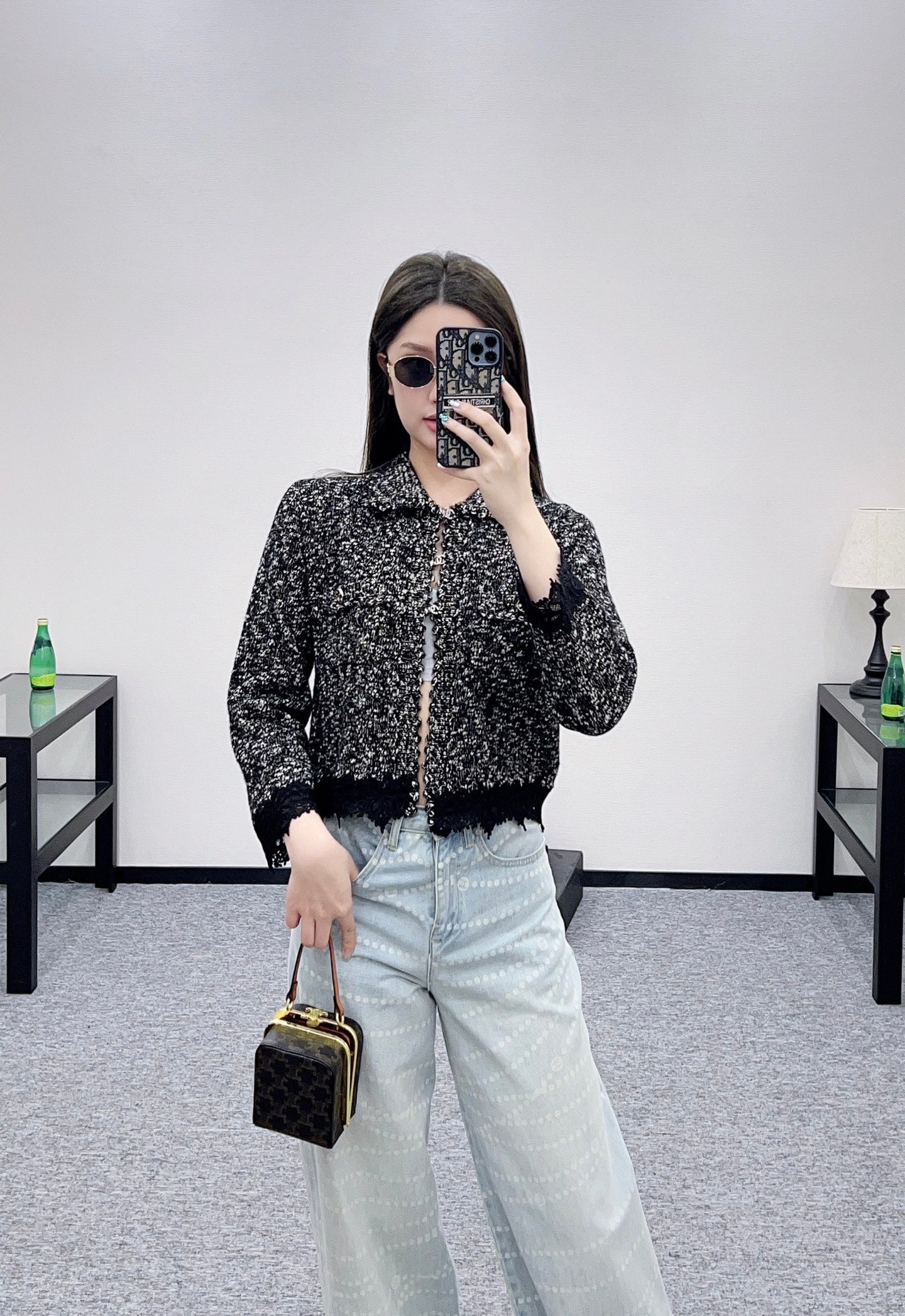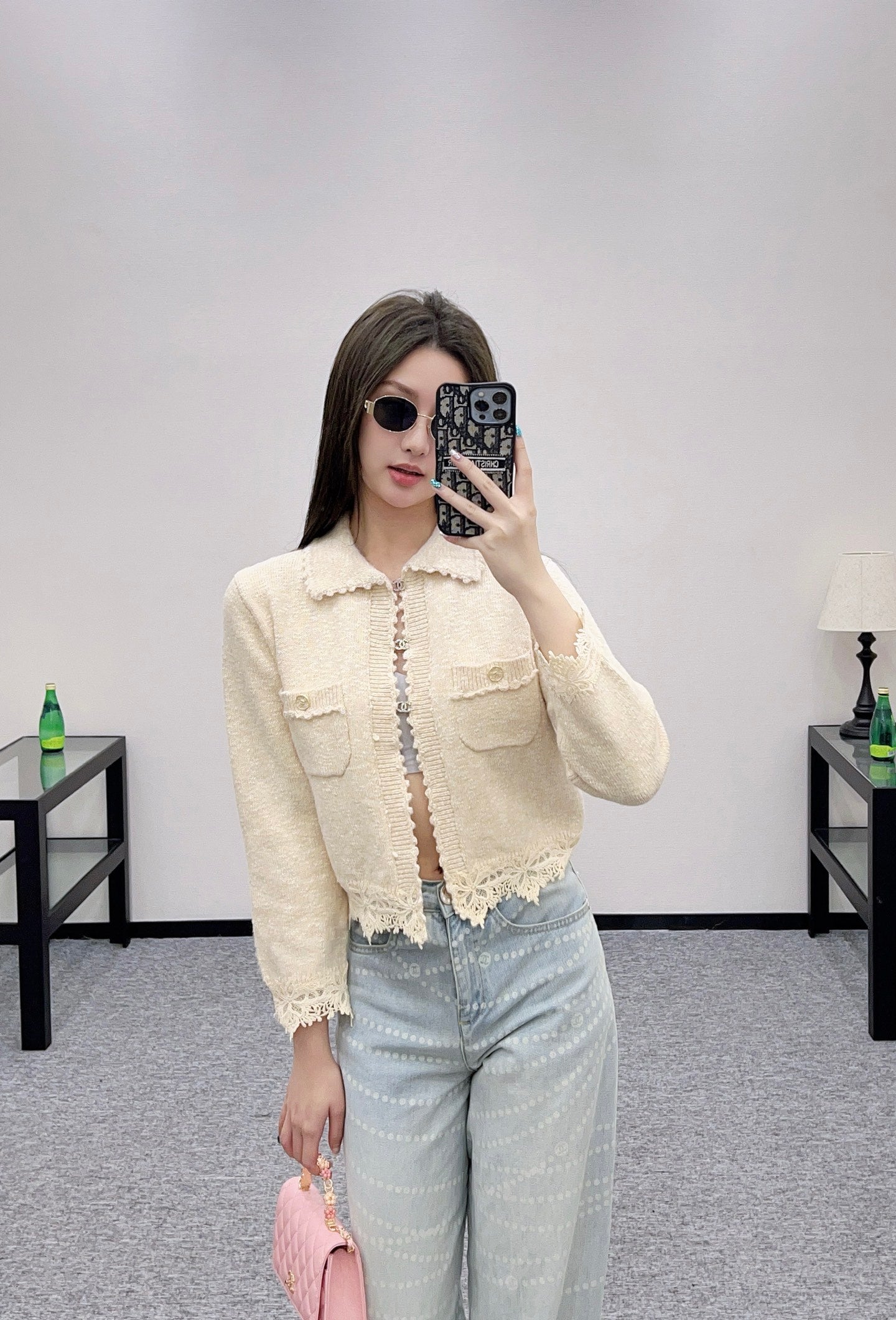 C 25 Cashmere wool blend embroidered lace knitted cardigan(BEIGI/BLUE/BLACK)