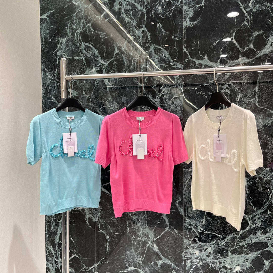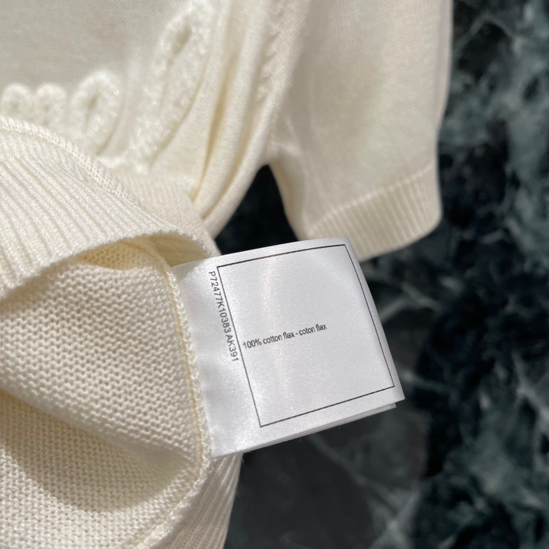 C 25 Early Fall New Crew Neck Crochet Beaded Knit Sweater
