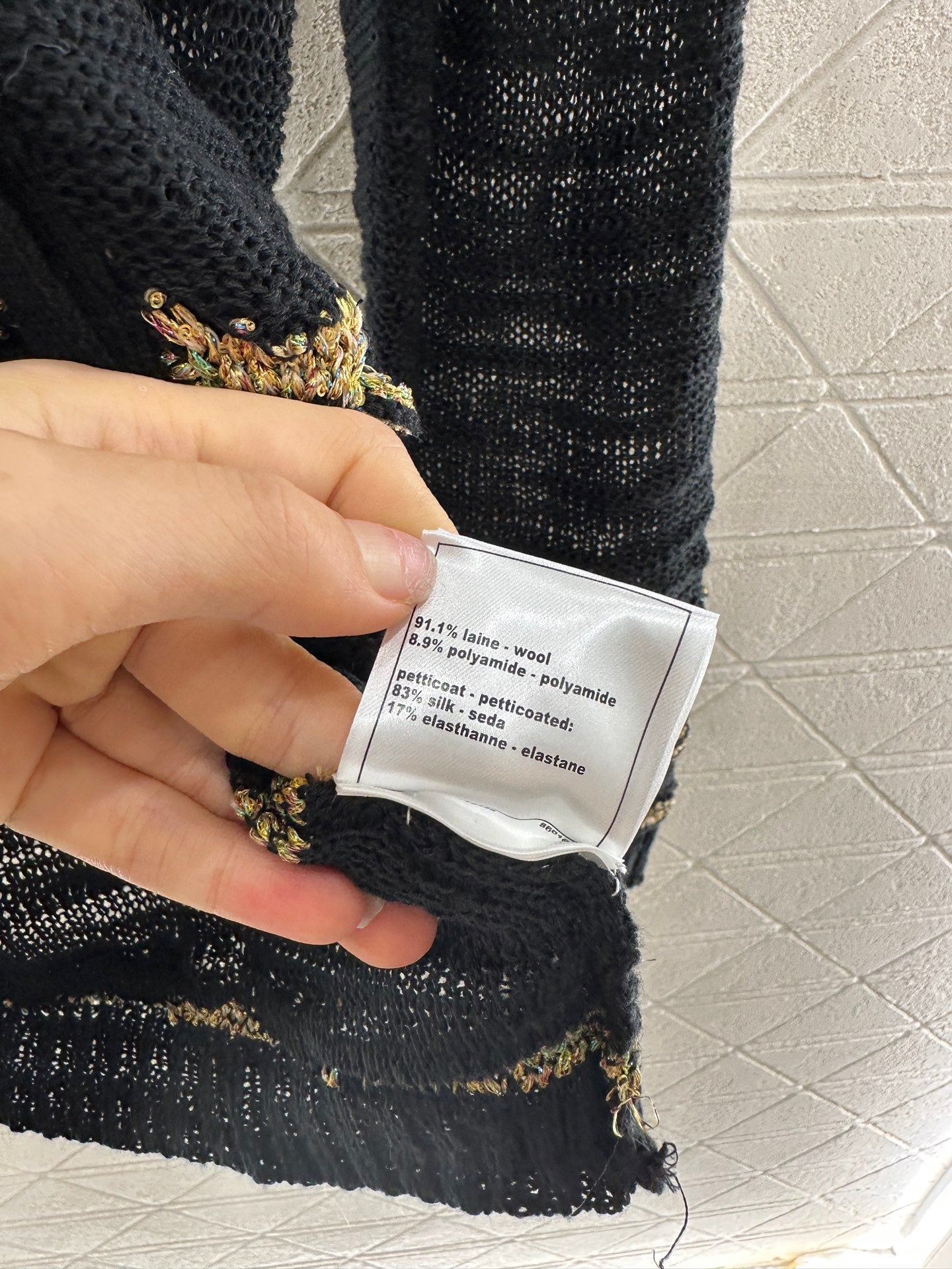 Customized YB wool yarn weaving Soft and skin-friendly Smooth and comfortable Silhouette mid-length knitted cardigan cut Deep V-neck button adjustment Texture is light and slightly transparent Overall beautification of head-to-shoulder ratio makes it look slimmer Available in black and white Gold thread embroidery on the cuffs and hem presents a triple contrast color Strong retro style Camellia round button decoration Shows taste Oversized elastic version accommodates body shape Elegant temperament Easy to wear for daily travel or parties Customized fabrics and accessories Look for the version High version
