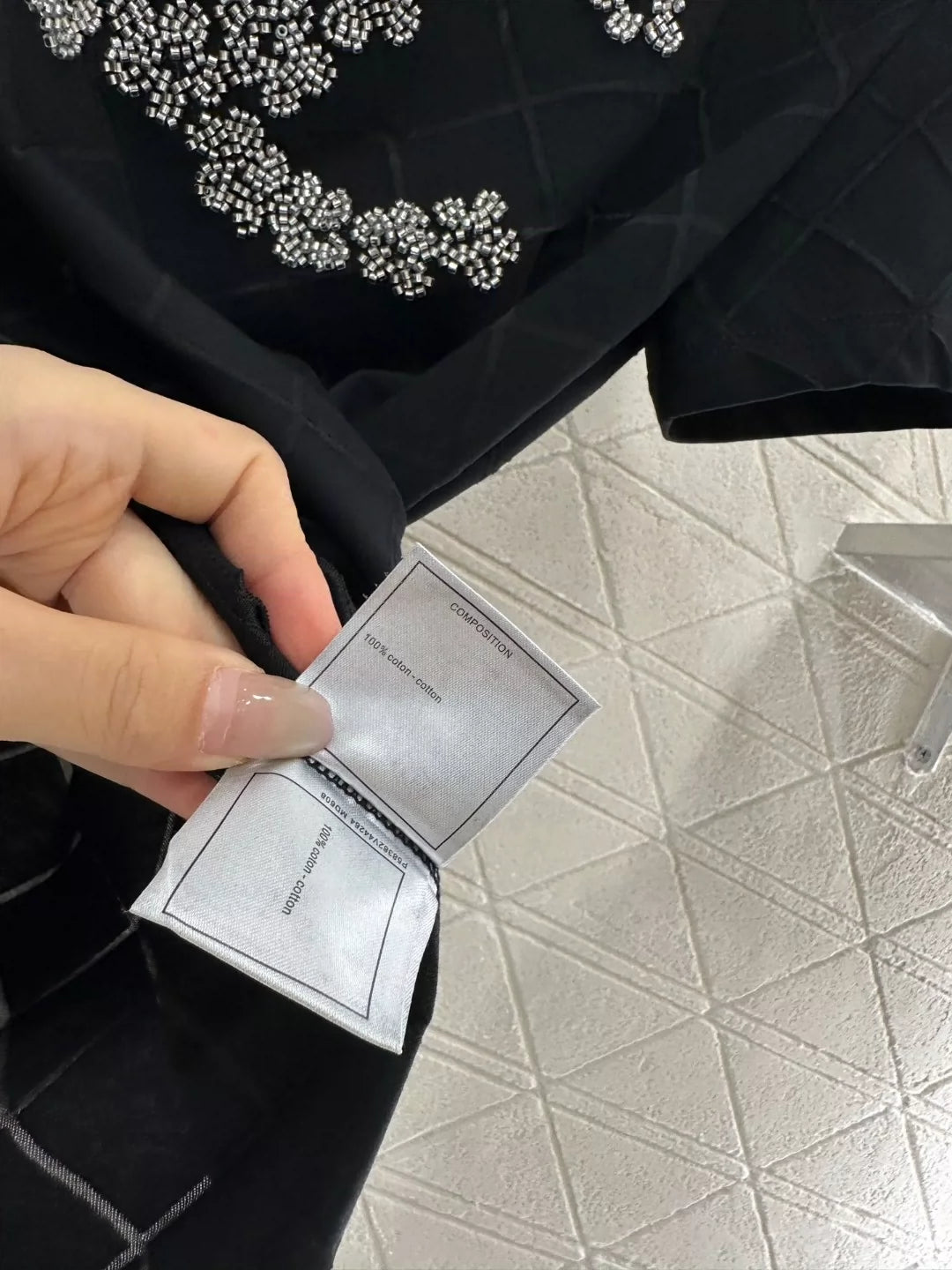 Twill cotton material Soft and skin-friendly Comfortable and stylish Regular short-sleeved shape Heavy embroidery decorative beads on the chest With the diamond lattice distribution of artistic textures throughout the body Layers of rich style Delicate and elegant Retro style strong Regular fit Inclusive figure Playful and stylish Daily travel or party easy to handle Heavy embroidery logo that can only be mastered by gram-weighted silk cotton