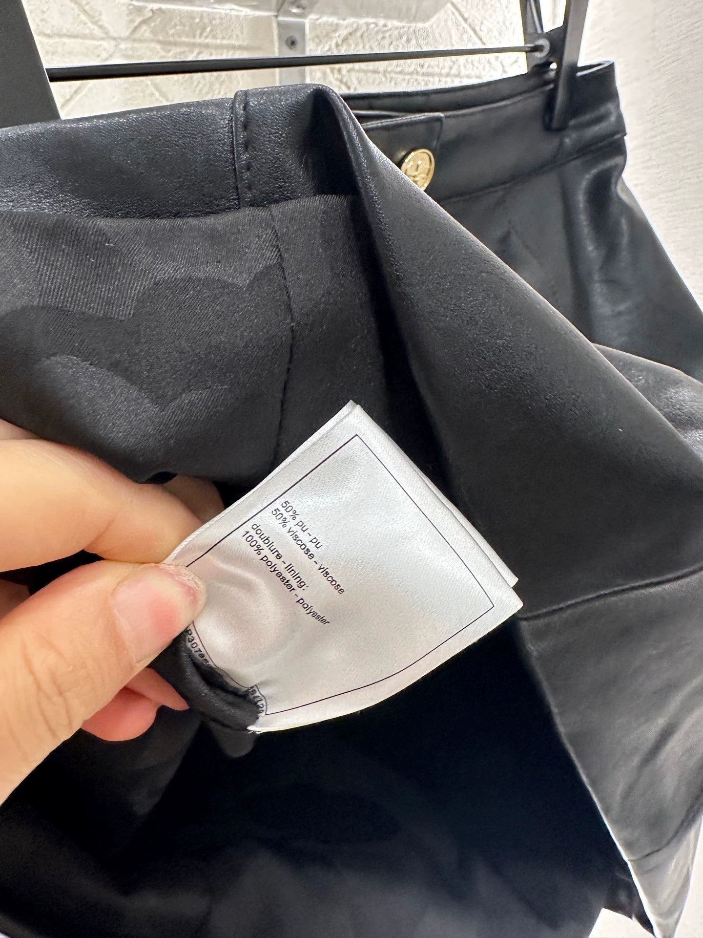 Customized YB imported leather with premium texture and pronounced grain. High-waisted, short skirt cut creates a sophisticated, slimming look. The top is sweet, cool, and playful. Centered zipper with molded, engraved round buckle. Black and gold colorway exudes elegance. Matte leather for a rich, textured look. Hip-hugging, straight-leg, short silhouette flatters long legs, creating a slimming effect and adding a touch of trendy charm. Layering creates a stylish, sweet, and cool look. Customized fabrics and accessories. Look for the latest version.