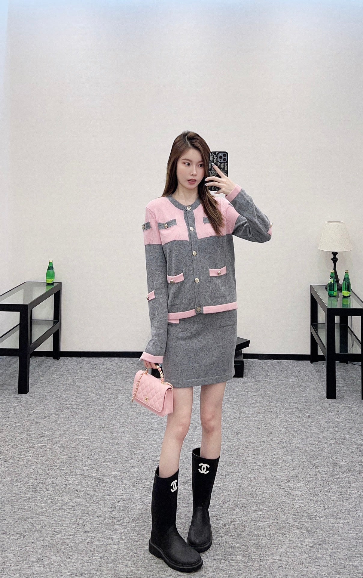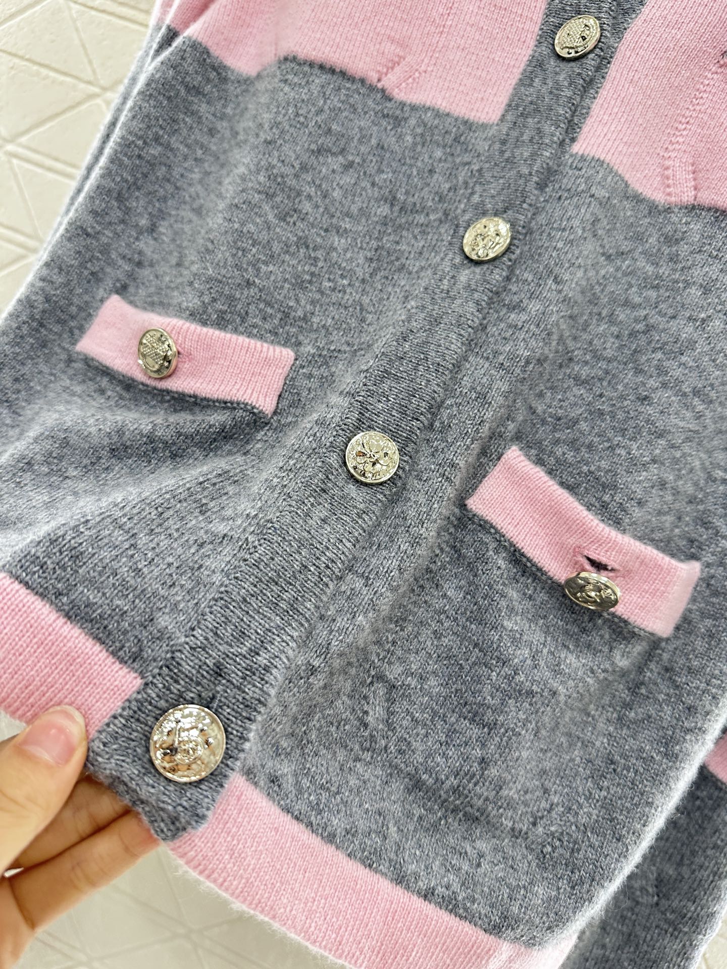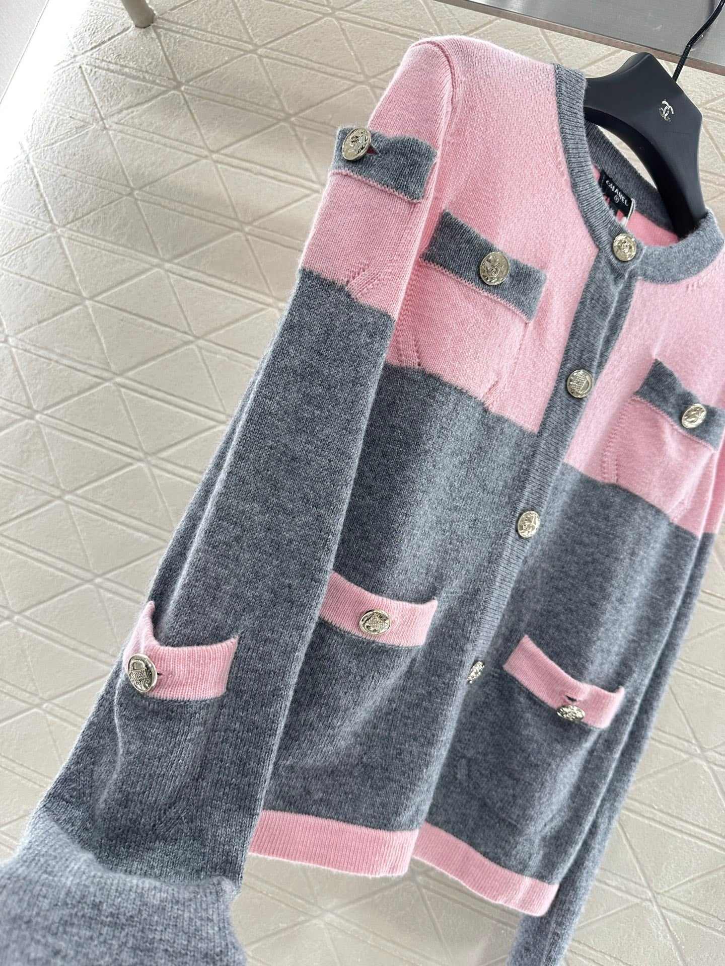 Custom-made wool yarn knitting, comfortable and soft, with excellent elasticity. Round-neck knit vest cut, using high-end stitching techniques, with all-over lace-knit patterns and intricate hem detailing, adding a literary touch to simple outfits. Premium tailoring flatters all body types. The double C logo on the chest adds a playful touch, effortlessly showcasing a cute and stylish vibe. Slim-fit silhouette, slim and fashionable. Perfect for wearing alone or layering in all seasons. 👌