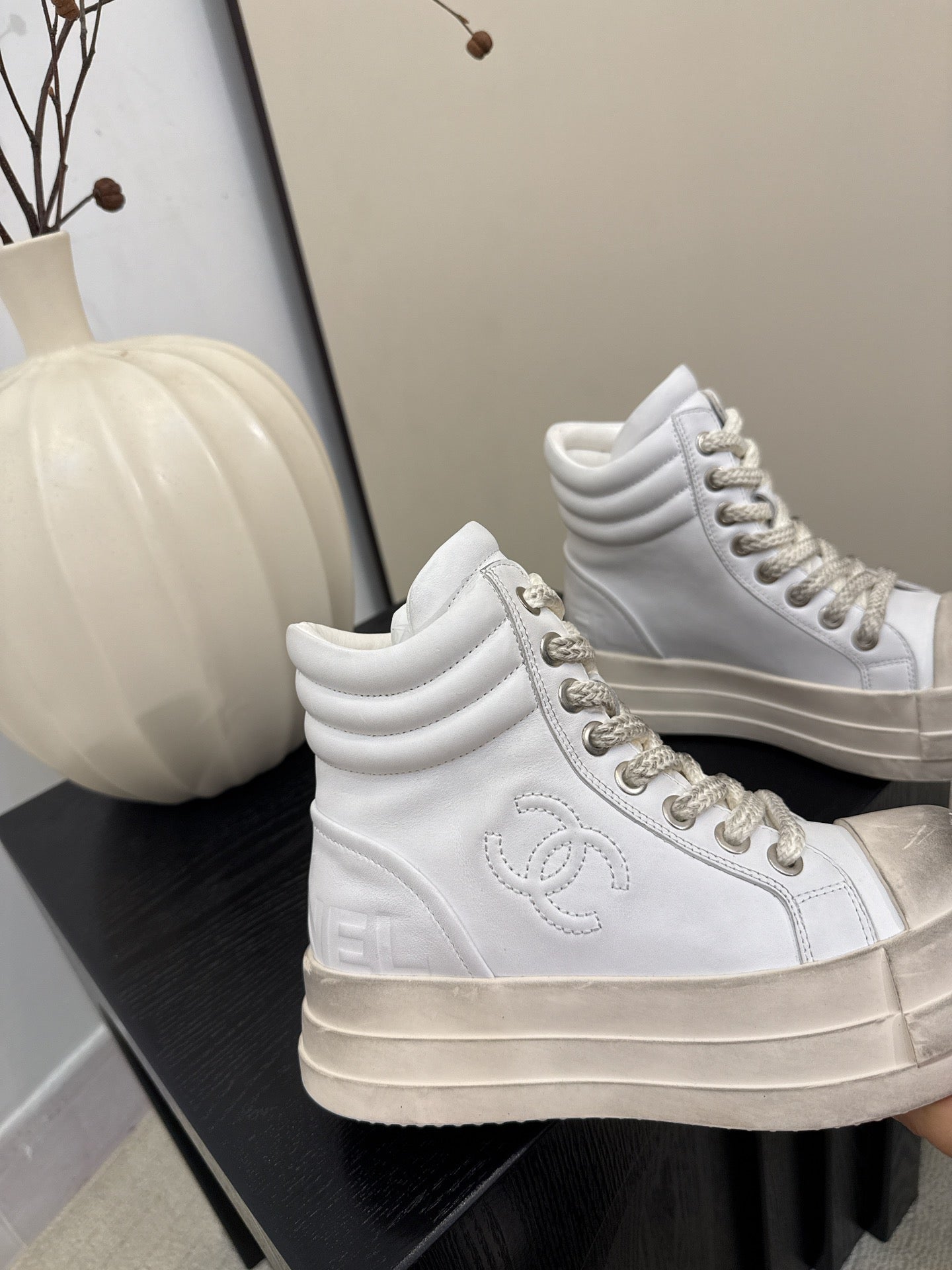 C 25 Make old thick soled mid top casual shoes(WHITE/NAVY/BLACK)
