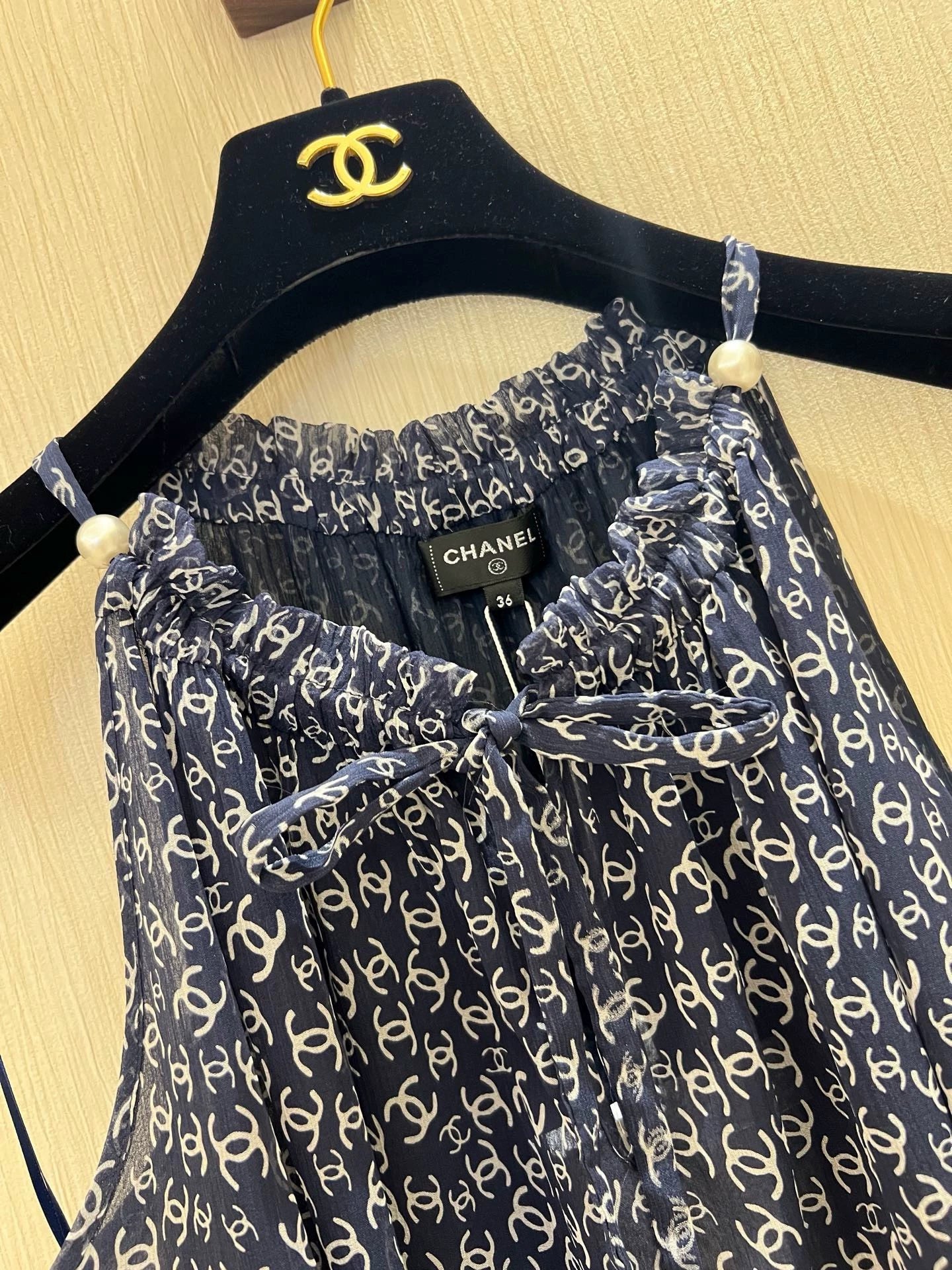 Full logo double C printing pattern exquisite elegance senior Double layer of silk fabric thin and comfortable skin-friendly Super texture Loose fit upper body thin and temperament