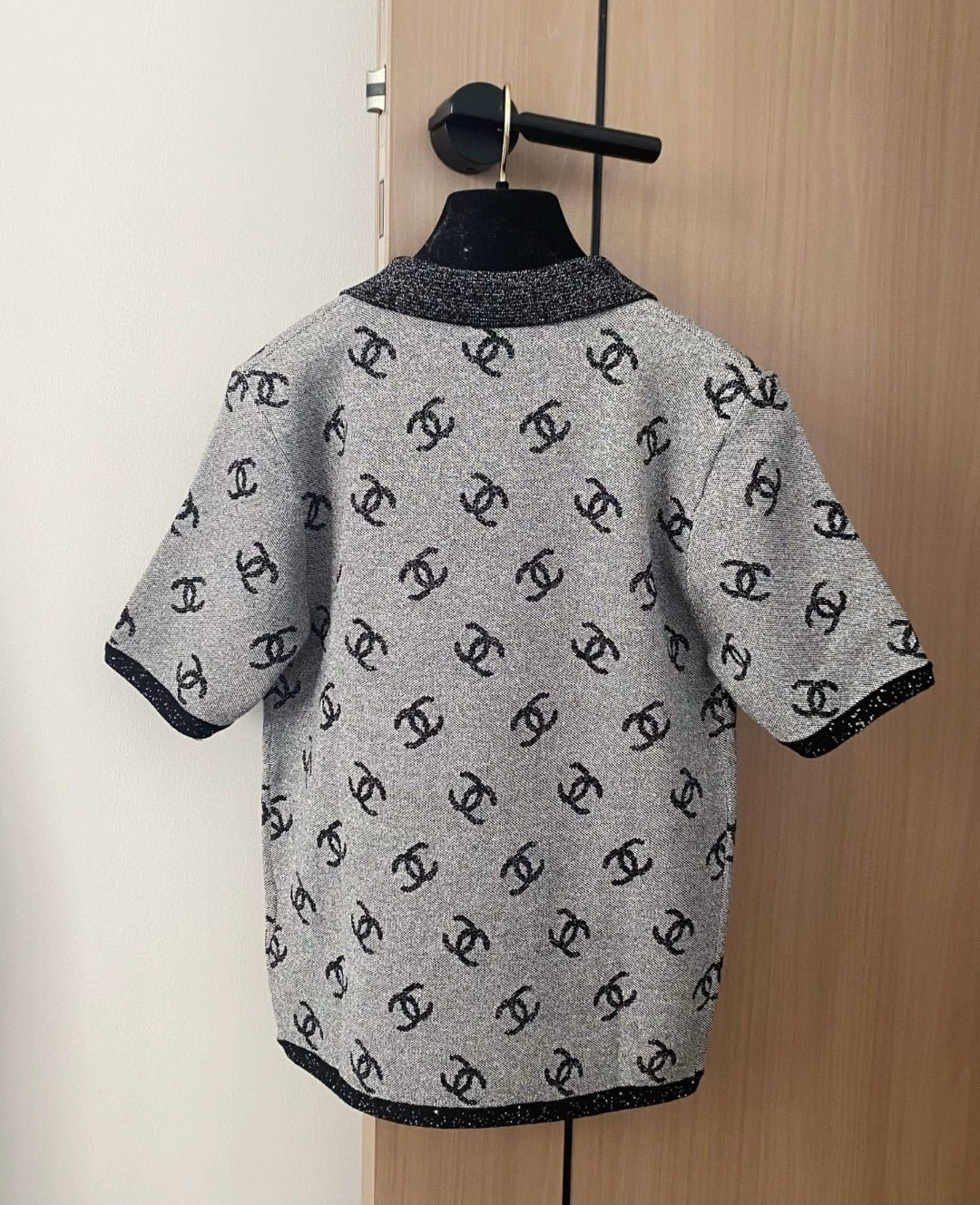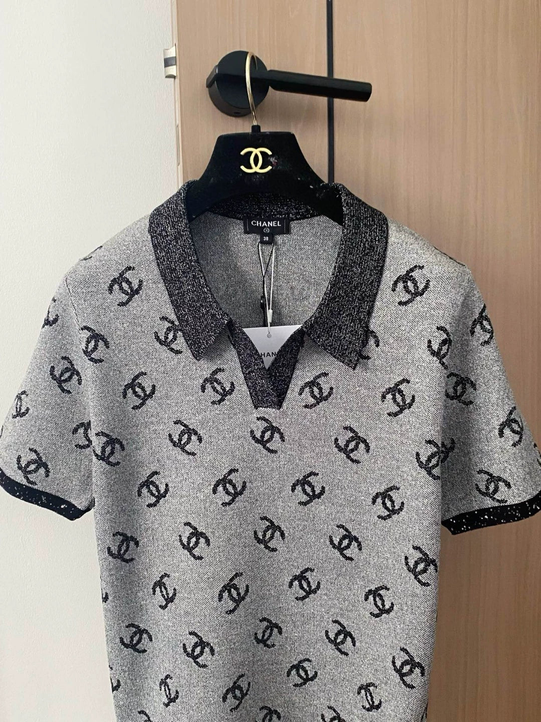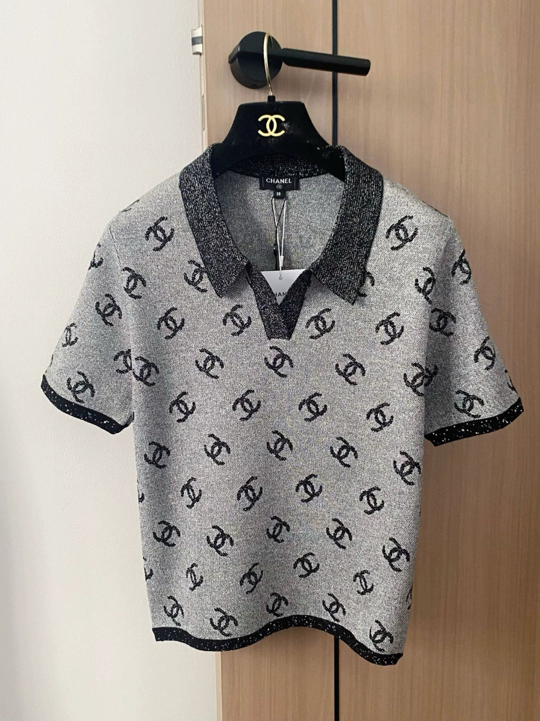 C 25 new color clashing pattern lapel short sleeve knitting