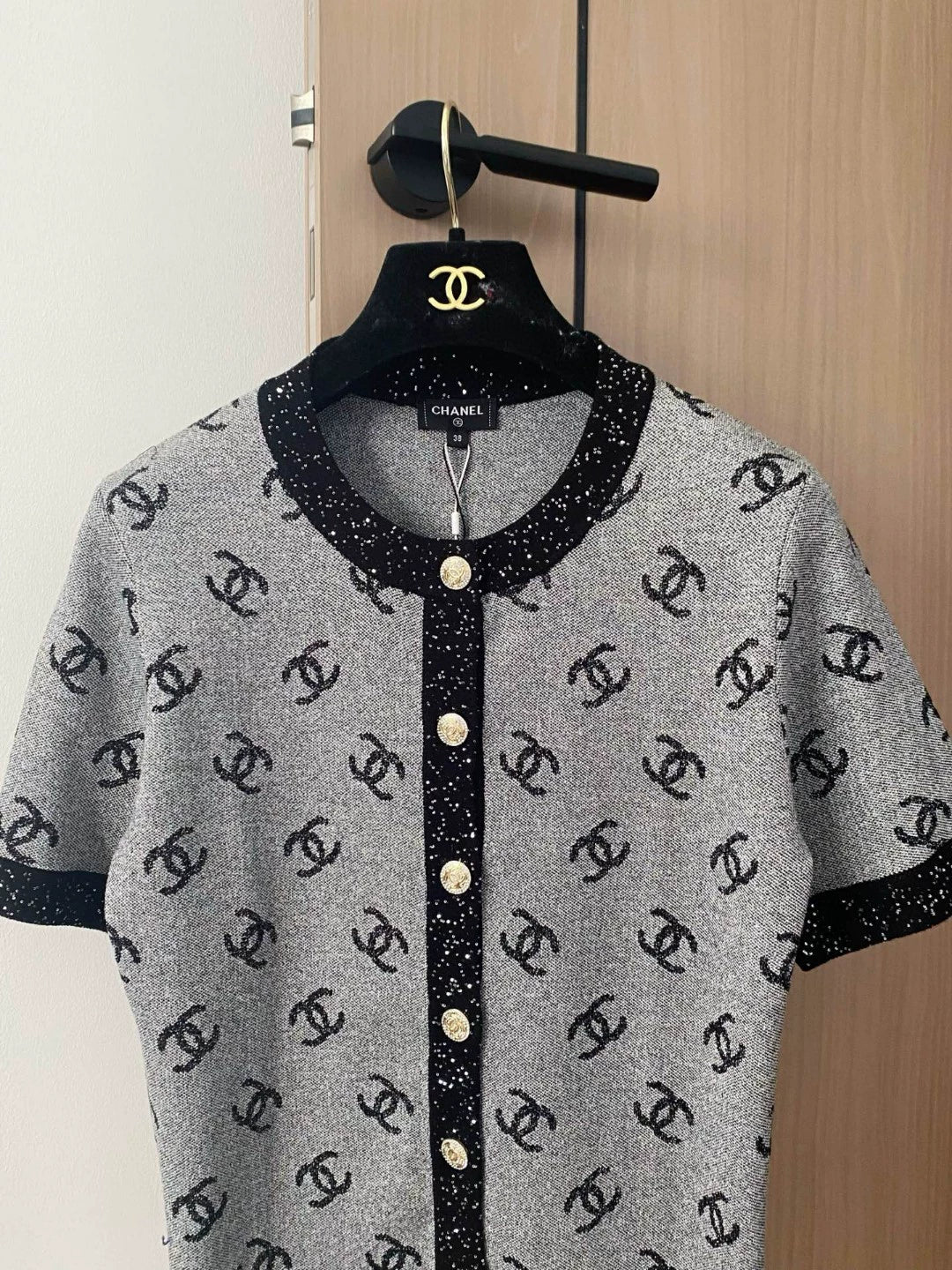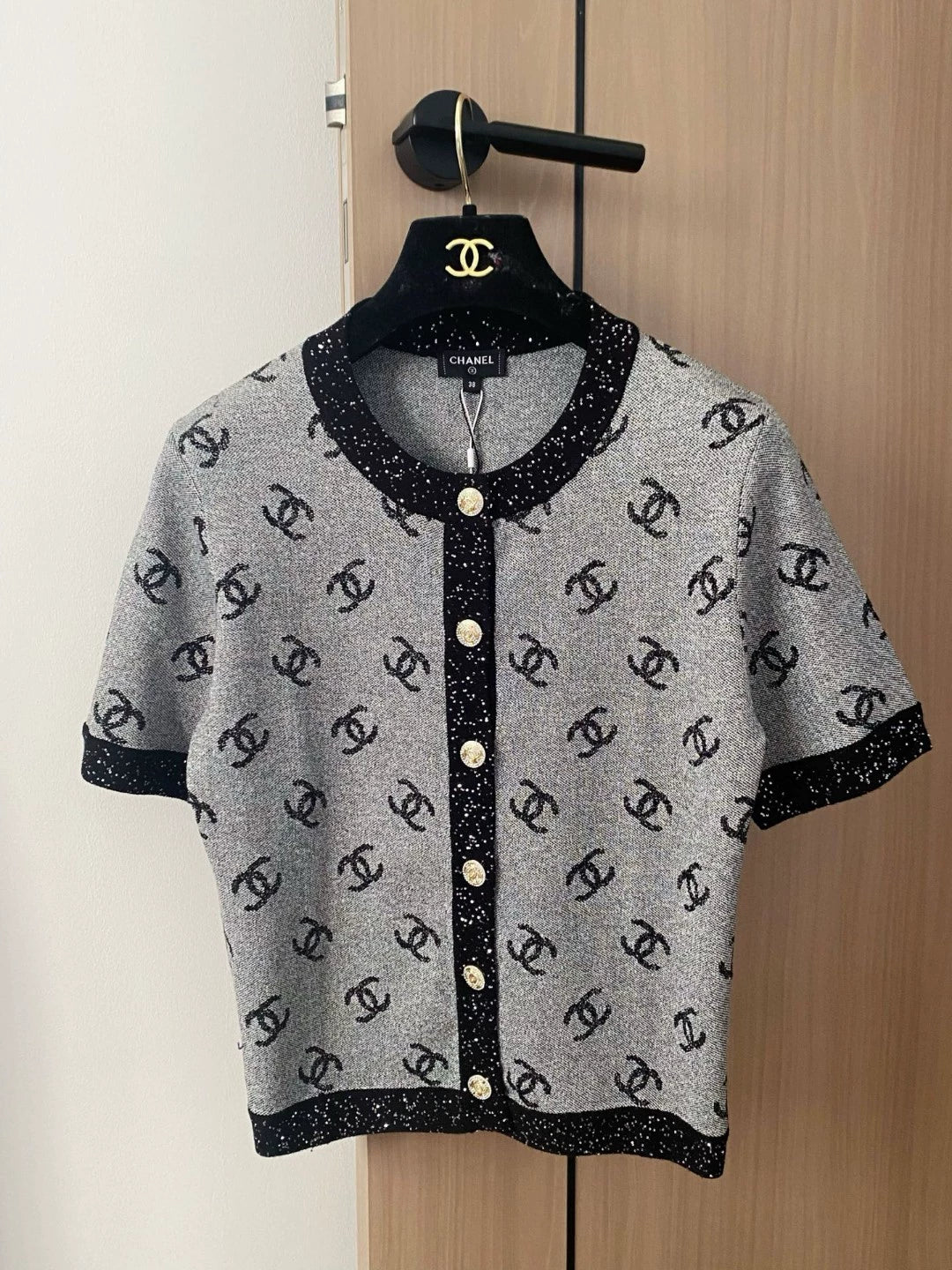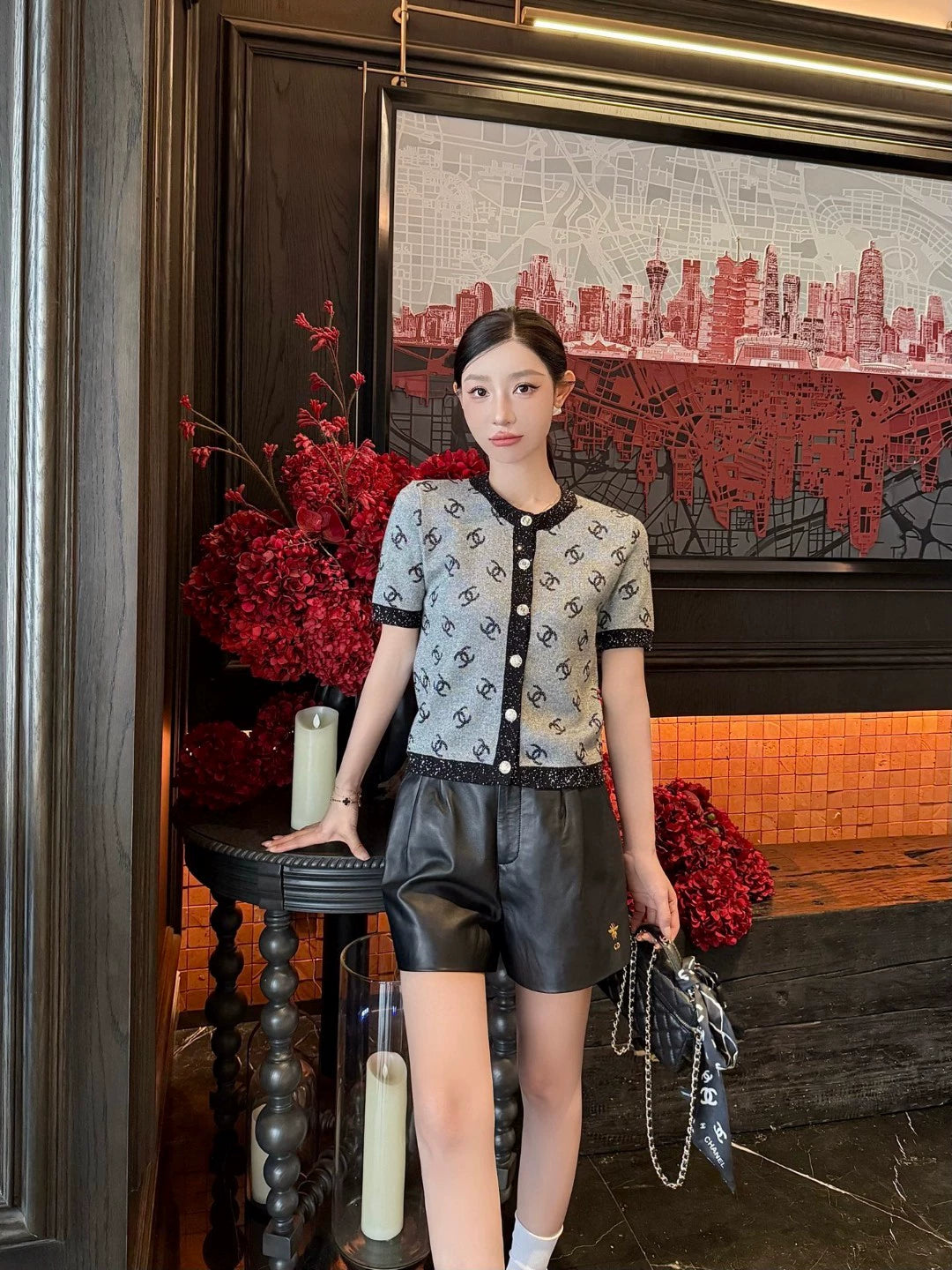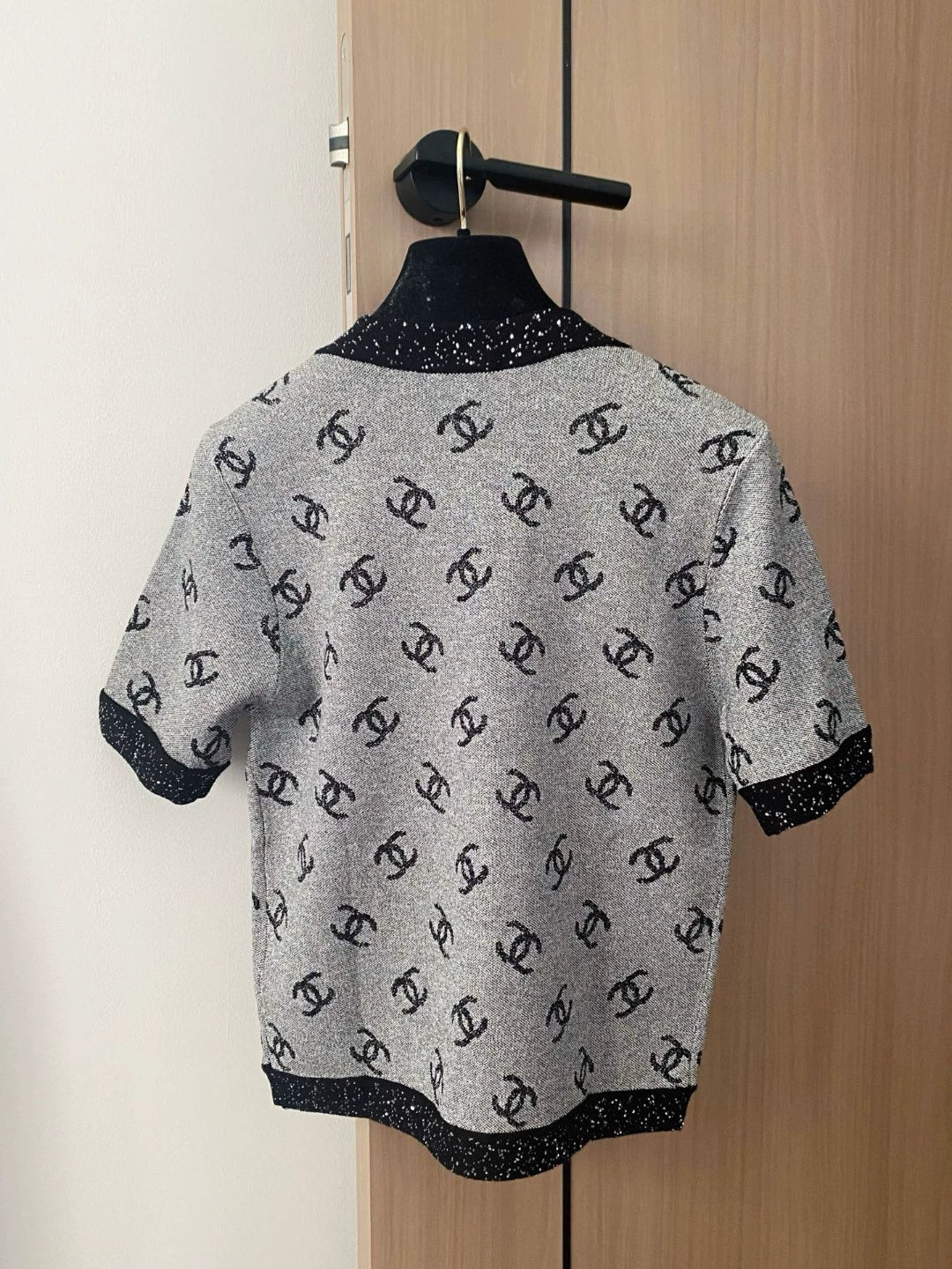 C 25 new color clashing pattern single-breasted round neck short-sleeved knitting
