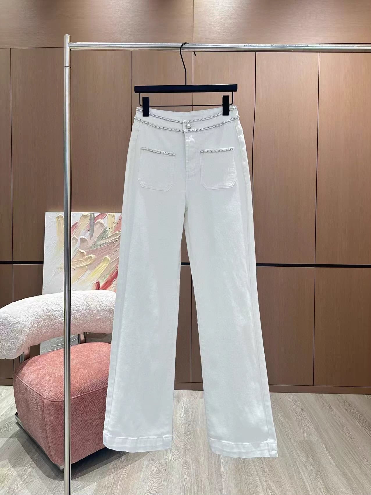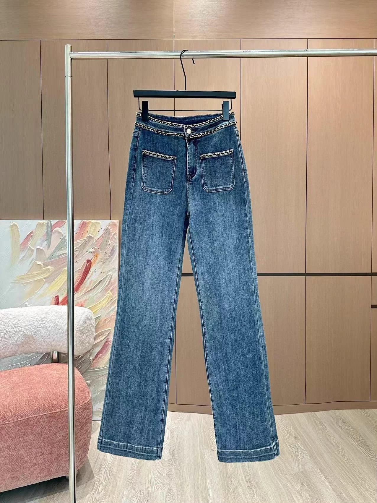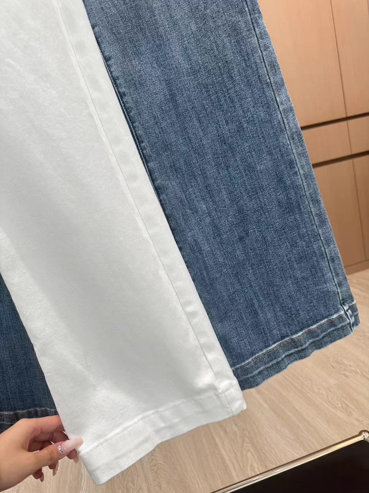 Using high-end custom fabrics, denim is very comfortable to wear, regular design, good inclusiveness, the color scheme adds visual charm, and the grain of the pants will be very delicate, it is a very good fabric