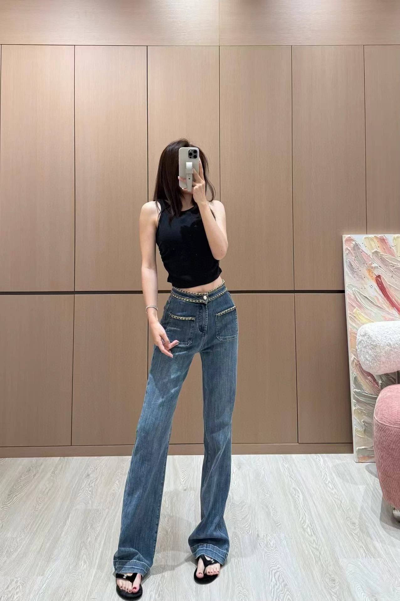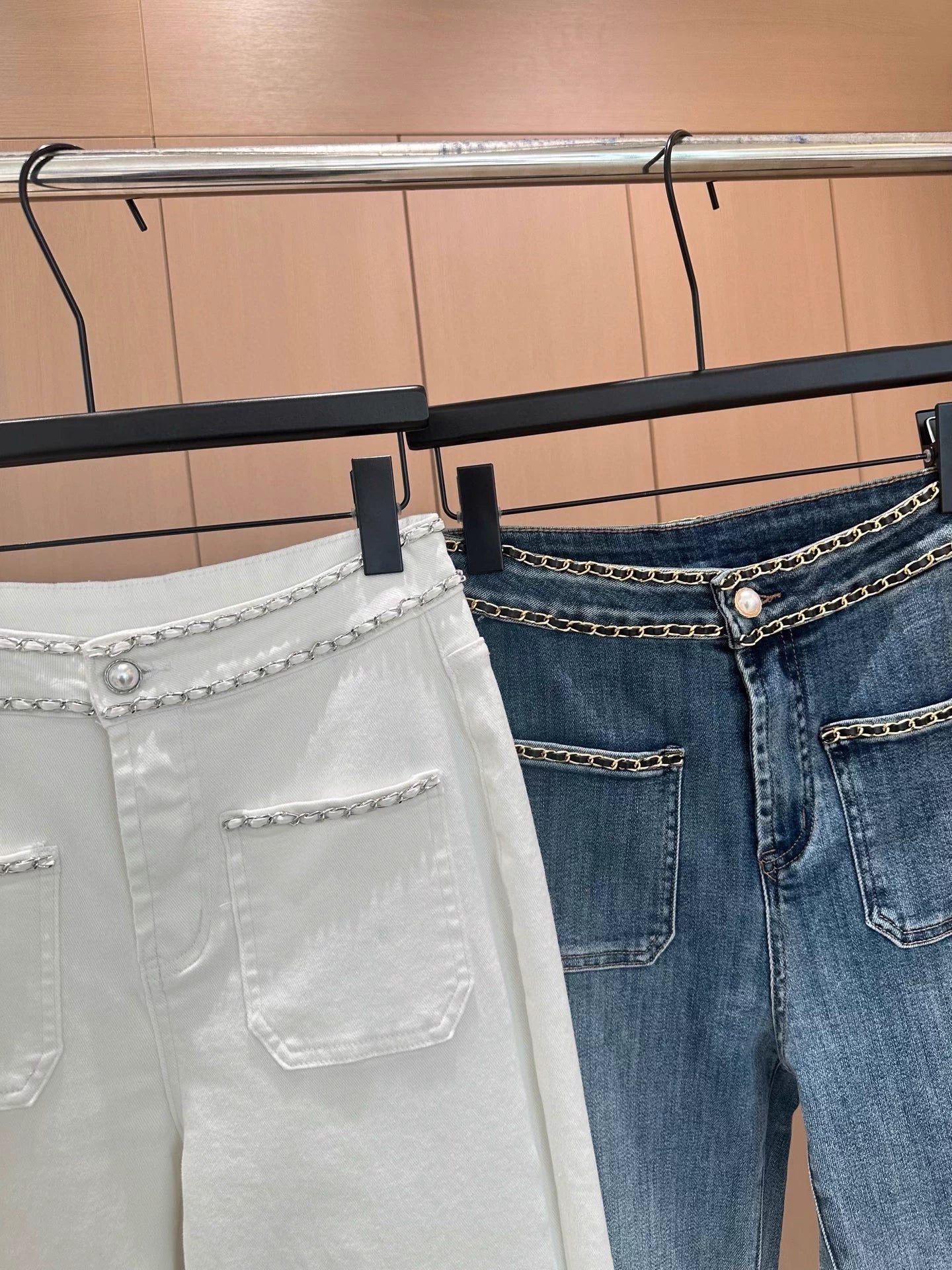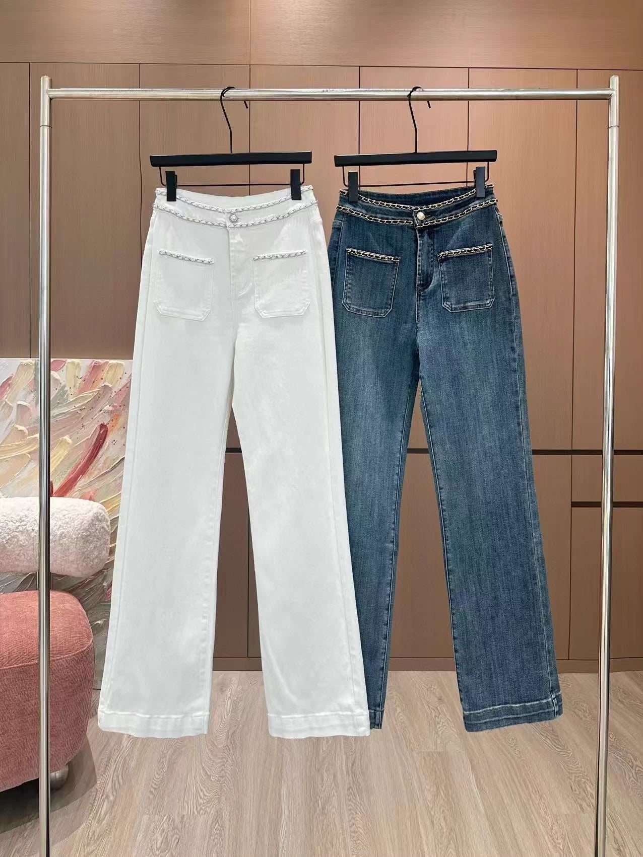 Using high-end custom fabrics, denim is very comfortable to wear, regular design, good inclusiveness, the color scheme adds visual charm, and the grain of the pants will be very delicate, it is a very good fabric