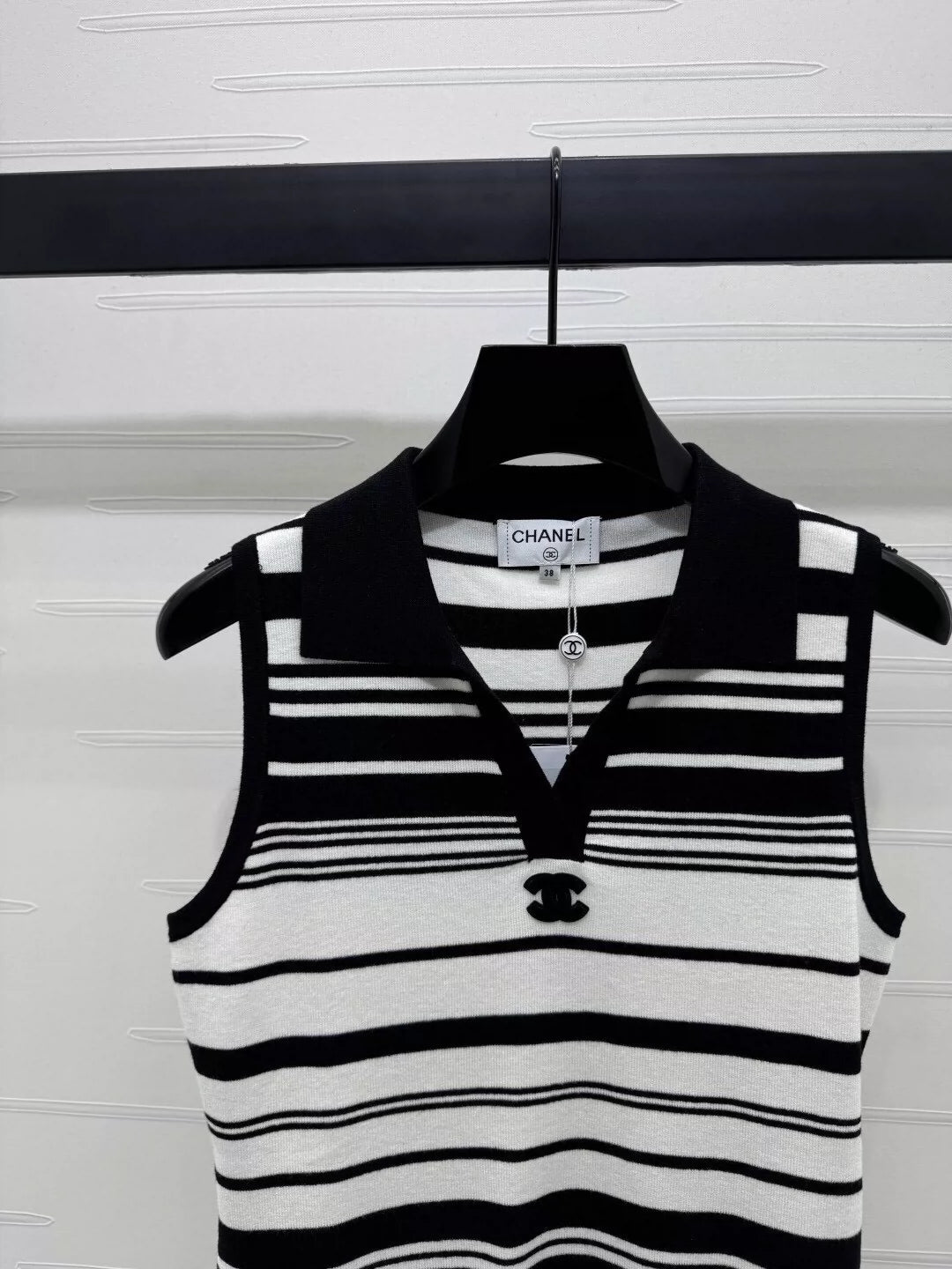 C 25 New Spring/Summer V-neck Embroidered Striped Knit Top Vest