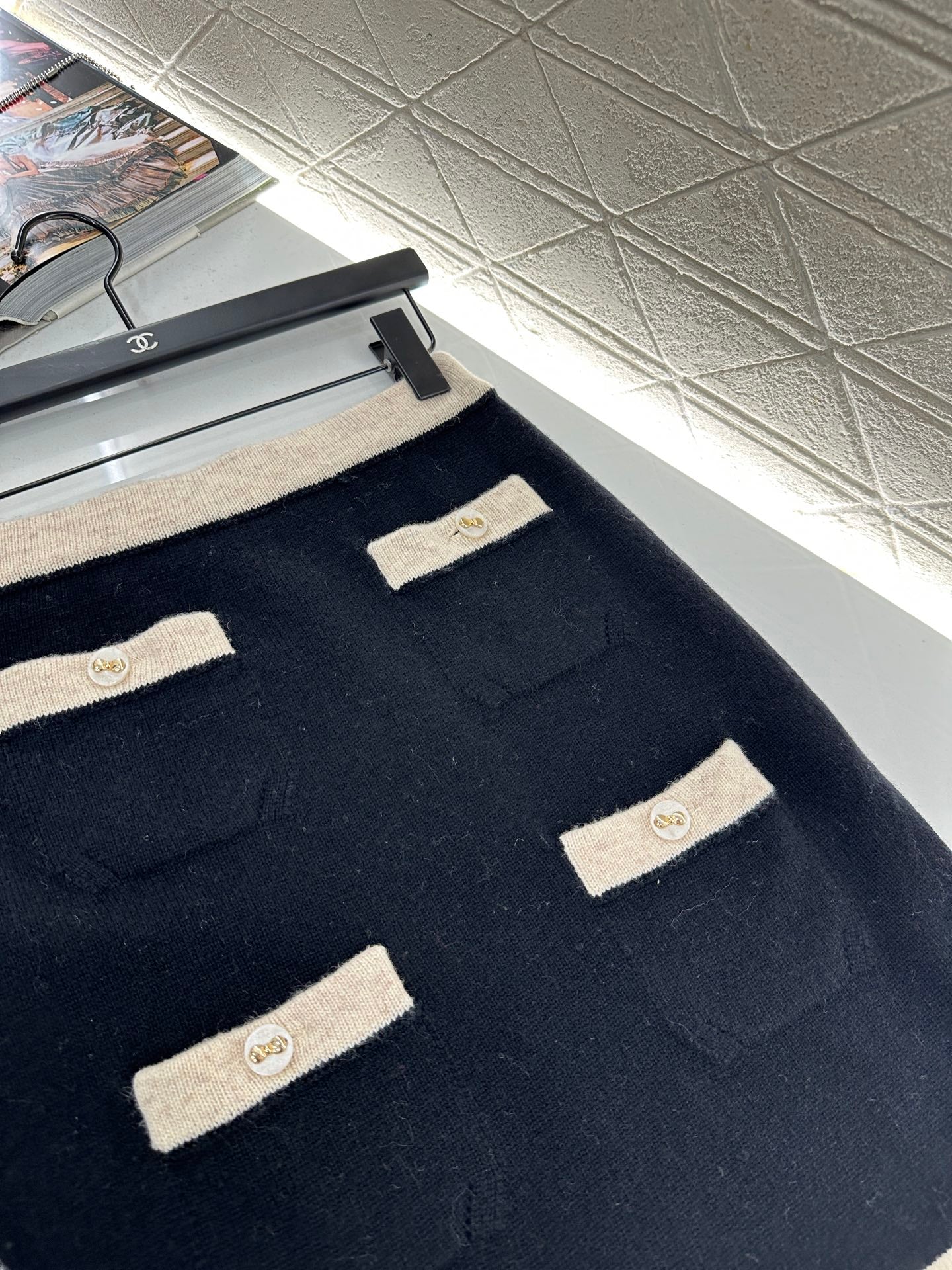 C 25 Pocket knitted cashmere long sleeved+short skirt set