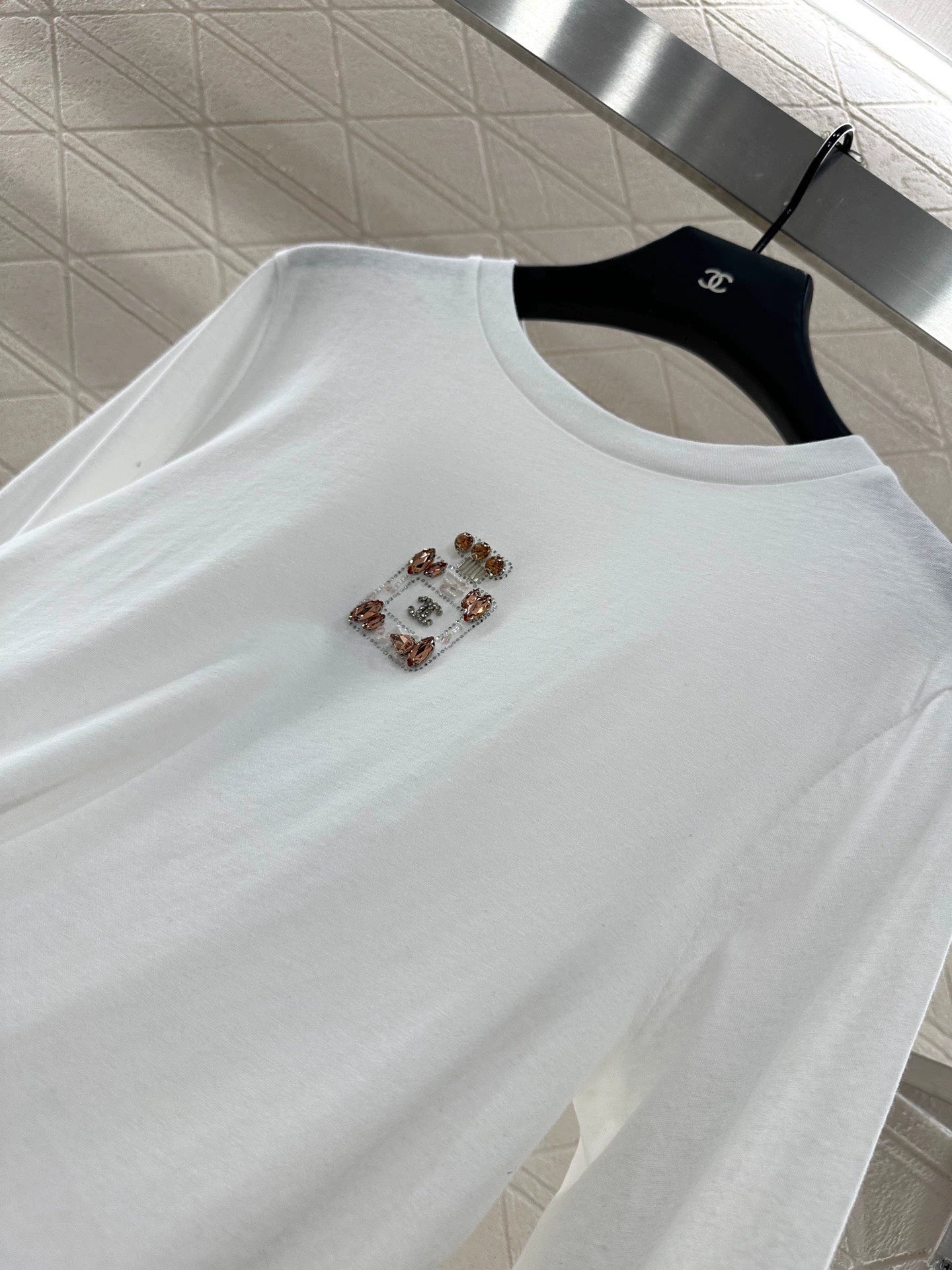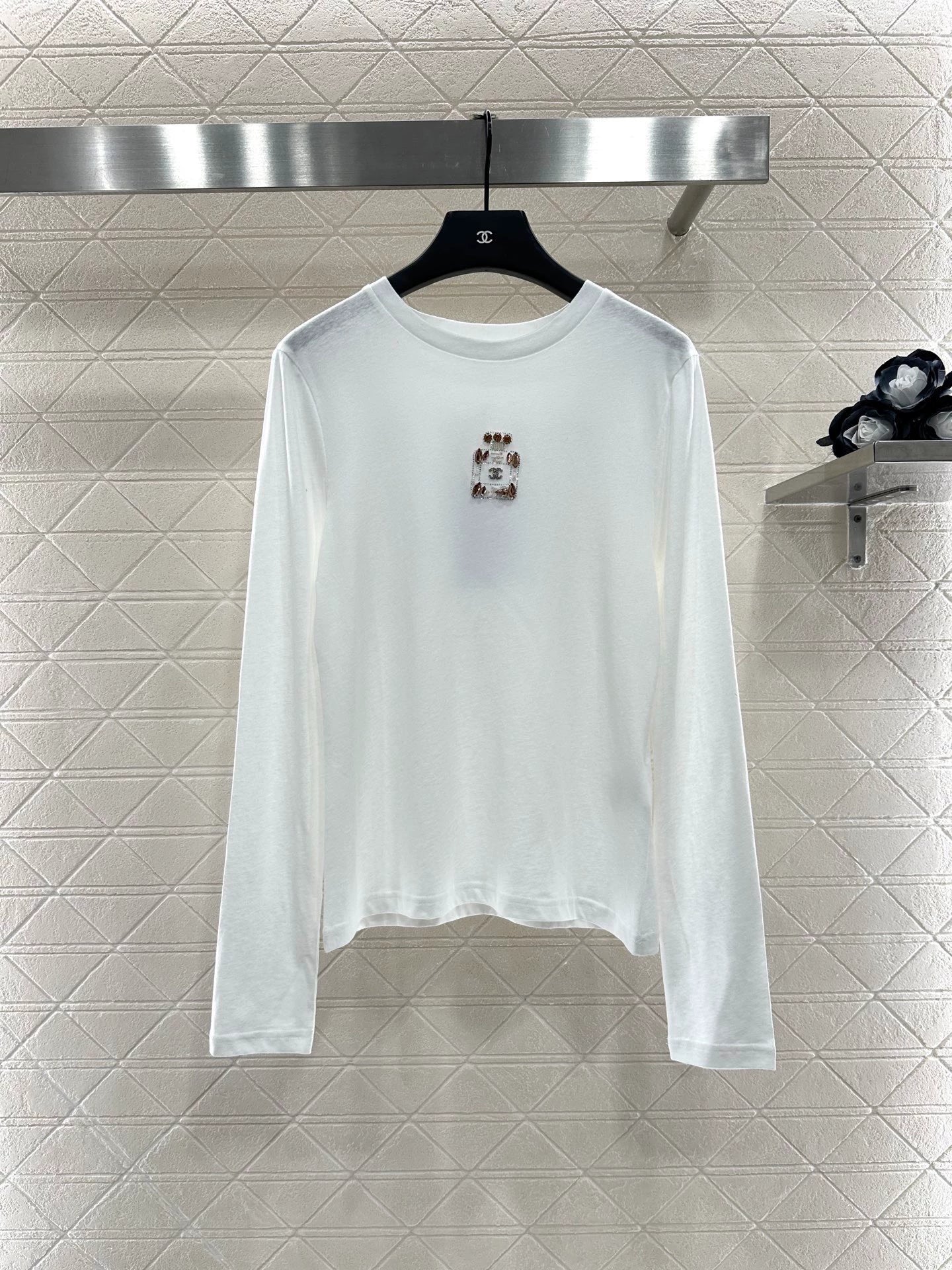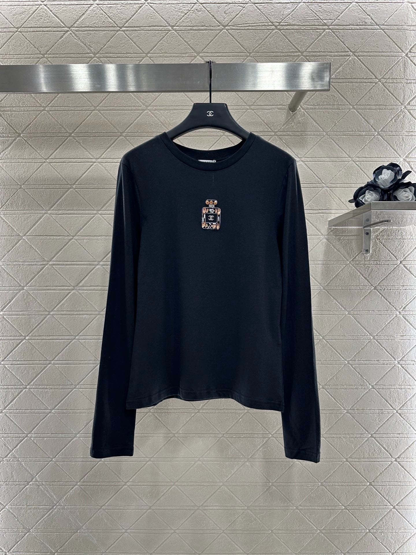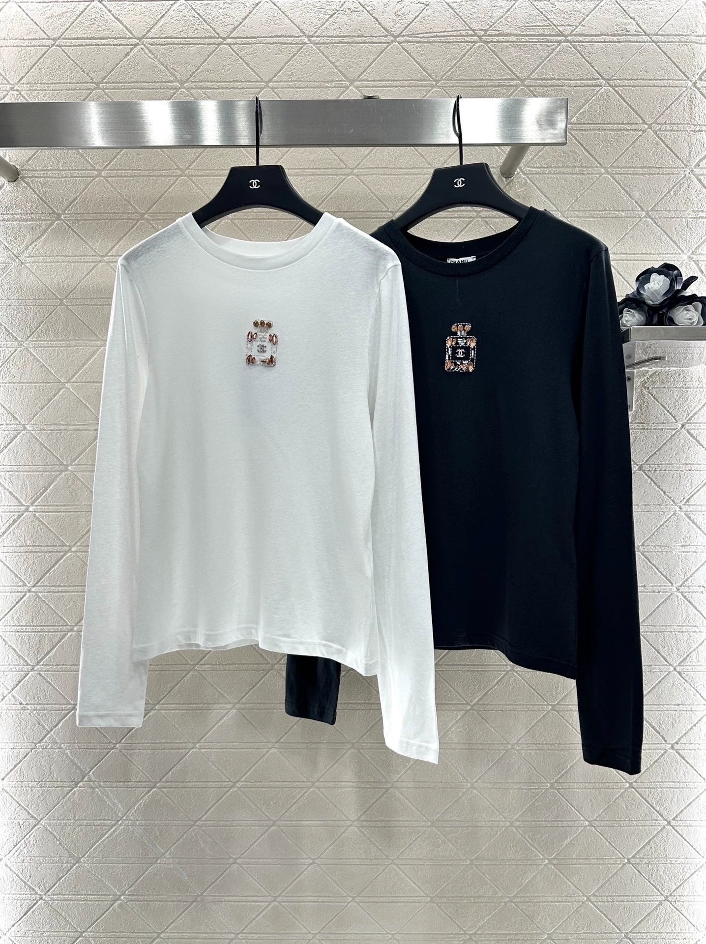 C 25 Rhinestone Beaded Perfume Bottle Crew Neck Bottoming Shirt