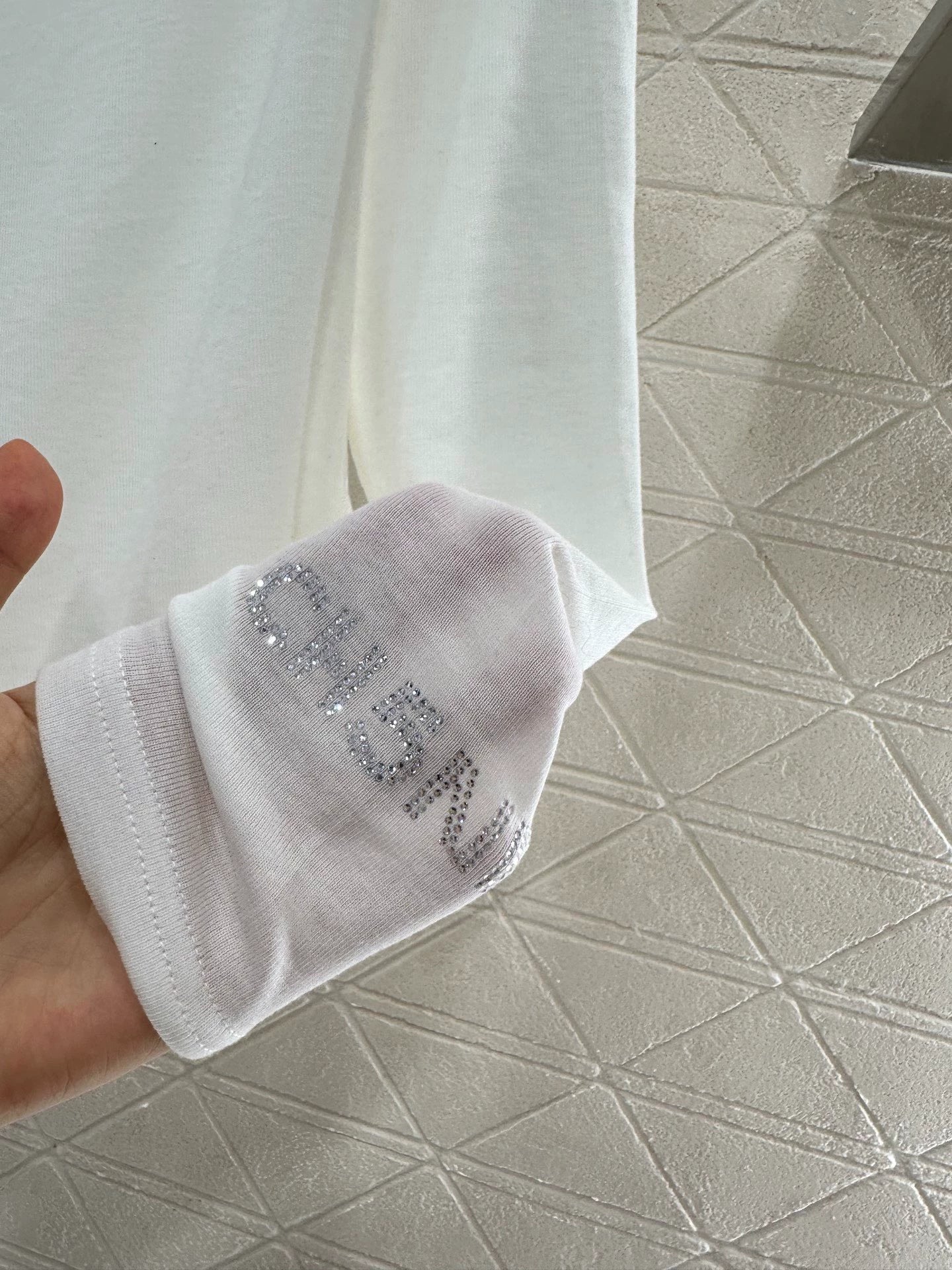 Customized YB Tencel wool for a comfortable, stretchy feel. Flat, off-shoulder, long-sleeved top with ribbed collar. Solid color, versatile and eye-catching. Signature double-C logo embellished on the chest, with matching cuffs. Reflective rhinestones add a touch of luxury, eschewing the monotony. Slim-fitting silhouette for a close-fitting look. A sophisticated, sophisticated look. Perfect for fall and winter, perfect for everyday wear, dates, and casual wear. Customized fabrics and accessories. Look for the latest version.