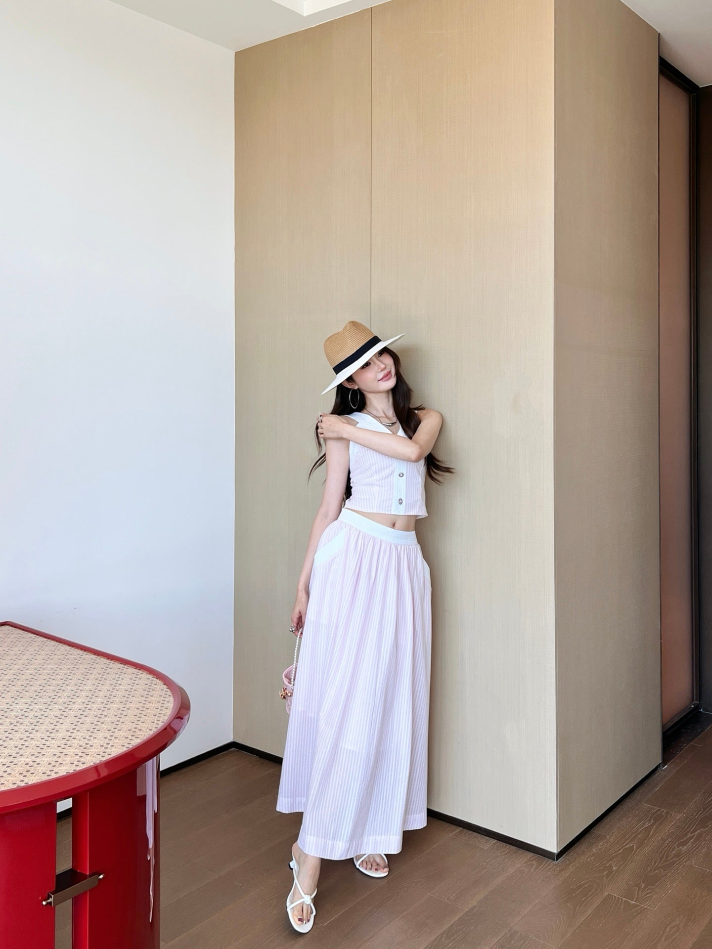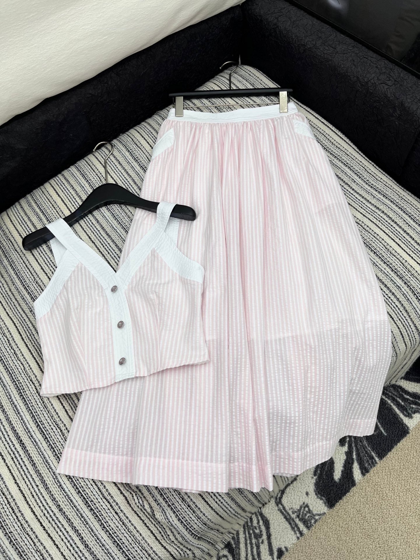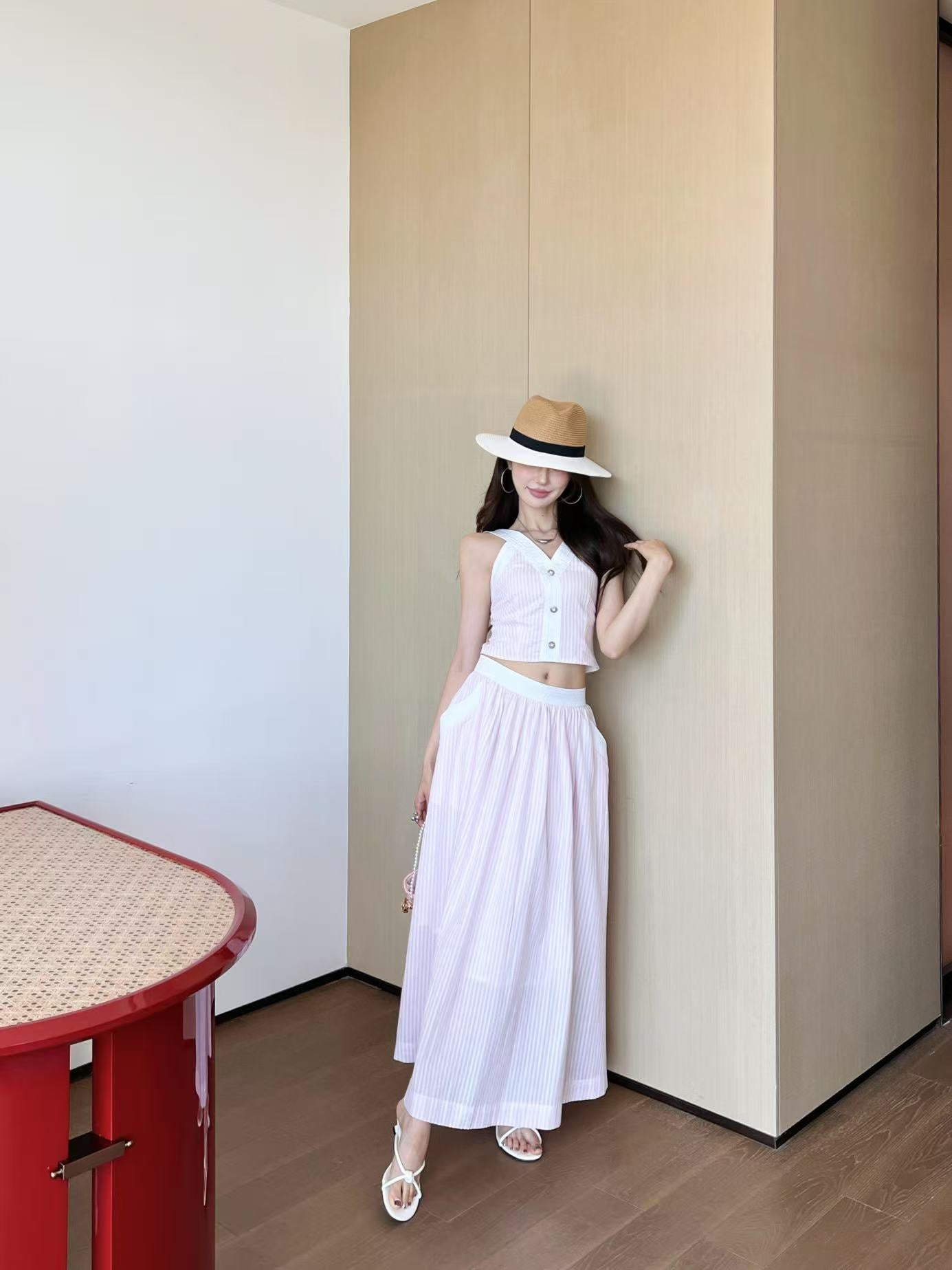 C 25 V-Neck Striped Camisole + Long Skirt Set