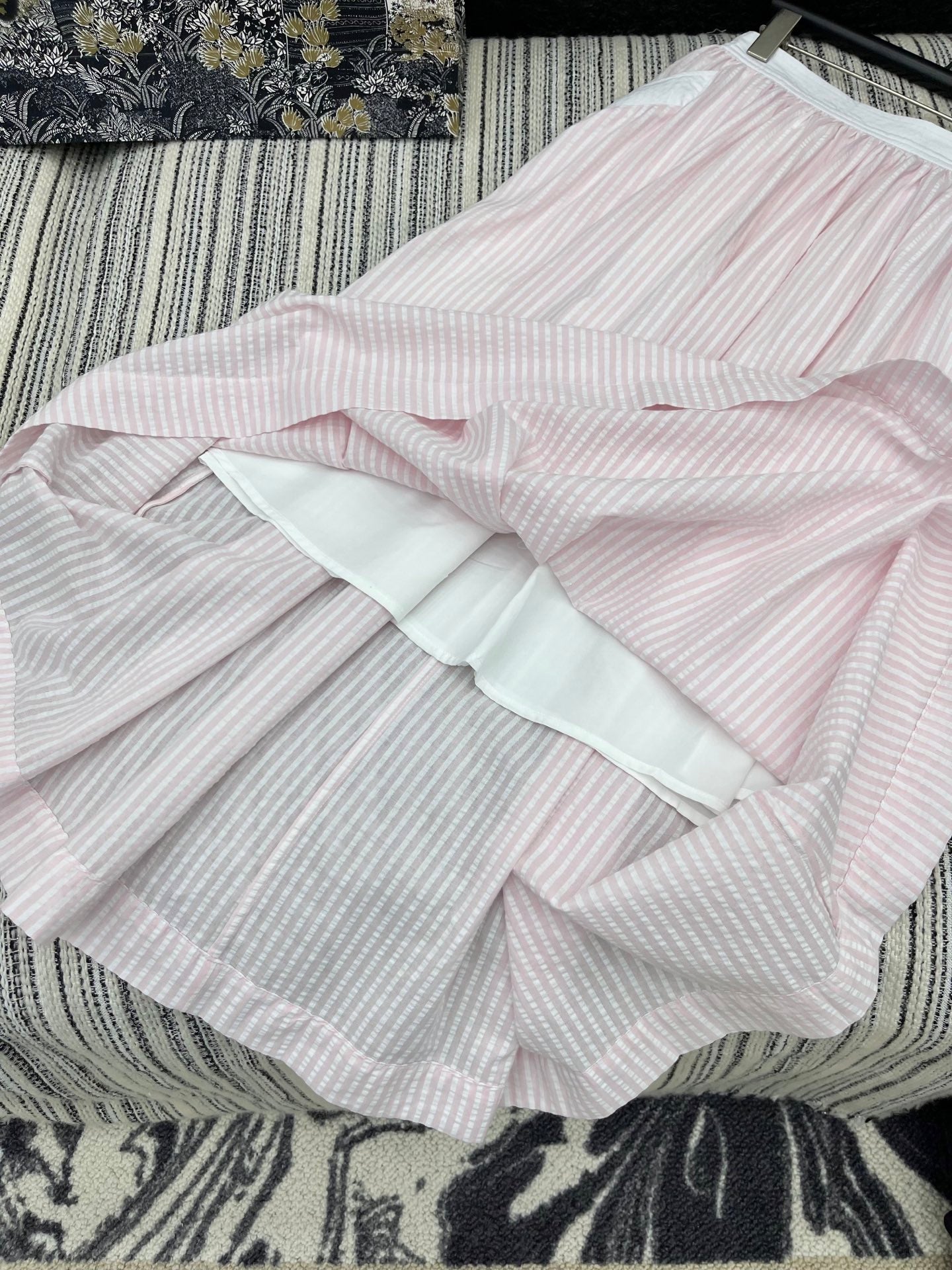 The colorful striped hemline semi-skirt underneath, with three-dimensional cutting to create a voluminous silhouette, and the hemline fluttering lightly as you walk, is a perfect blend of spirit and atmosphere. Striped elements criss-crossing, classic hidden ingenuity, and suspenders on the color echo, the overall shape of the harmony and full of layered sense