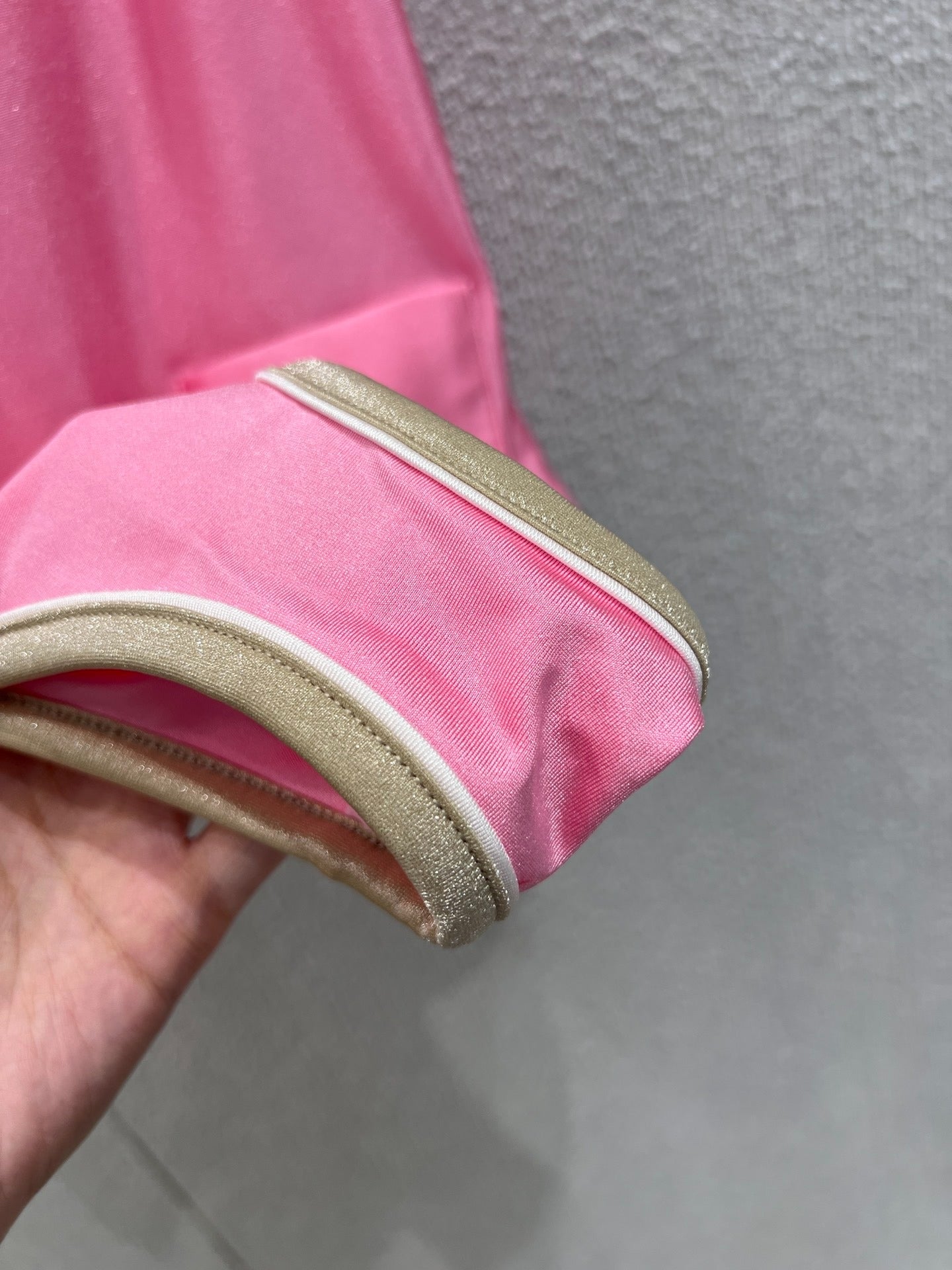 ⚠Exclusively developed by yb! High-end product! Imported swimsuit material, processed by process restoration, presenting a three-dimensional, delicate and soft texture, skin-friendly and comfortable, round neck swimsuit cut, contrasting color outlines and hemming, forming a collision with the body, pink and black and green and pink are bright and lively, the upper body looks white, the neckline pendant diamond double C adds exquisite tone, showing the brand tone, symmetrical pockets enrich the layers, suitable for the fashionable and stylish style of reducing age