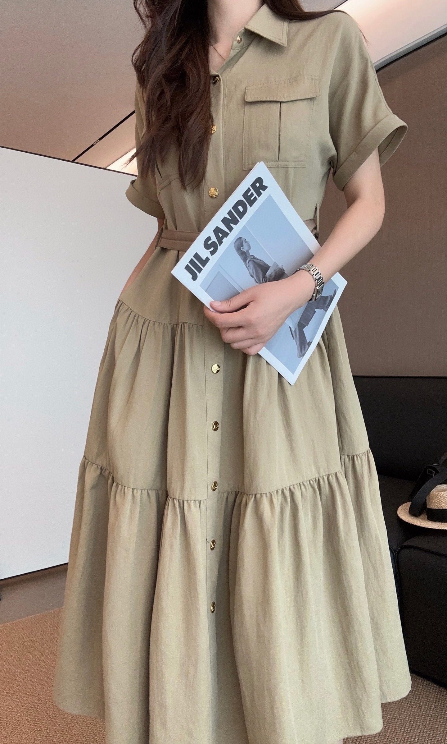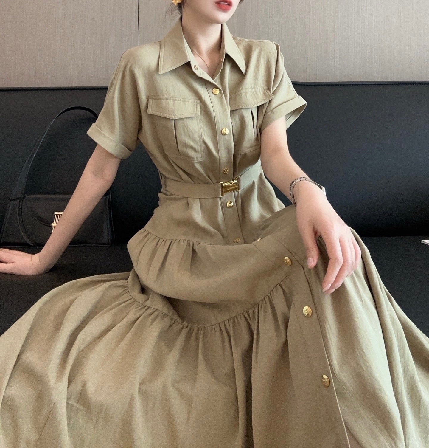 The Celin*♥ 2025 gold button lapel waisted dress combines refined tailoring with elegant detailing. Featuring a structured lapel and striking gold buttons, it accentuates the waist for a flattering silhouette. This dress offers a sophisticated look ideal for professional environments or upscale events, blending classic design with contemporary style.