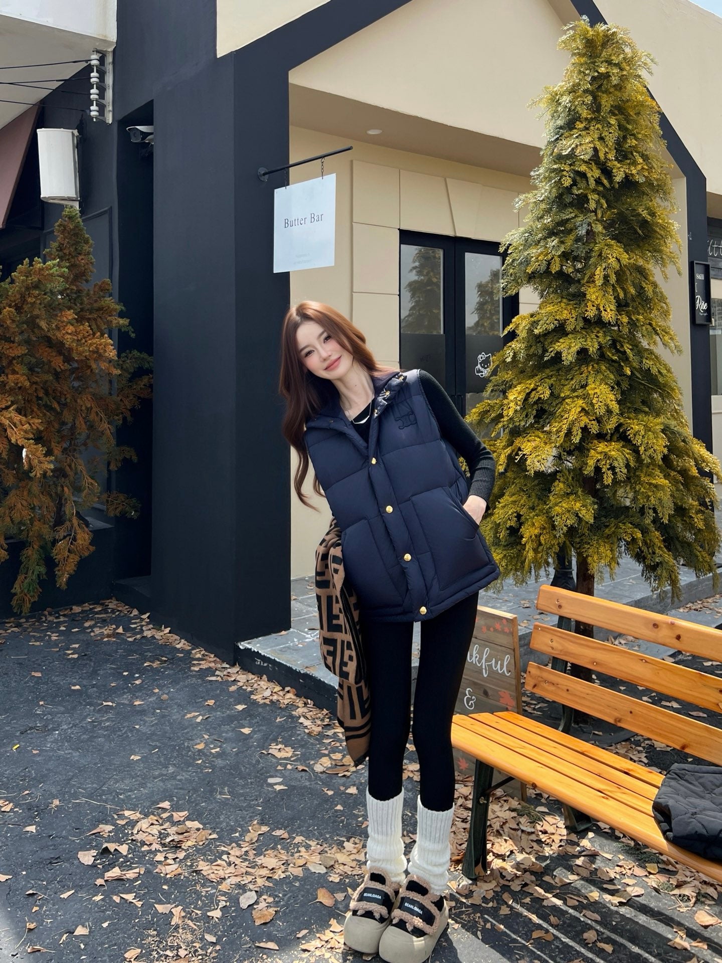 Ce 25 New Arc de Triomphe Decorative Stand Collar Down Vest(BEIGI/BROWN/NAVY)