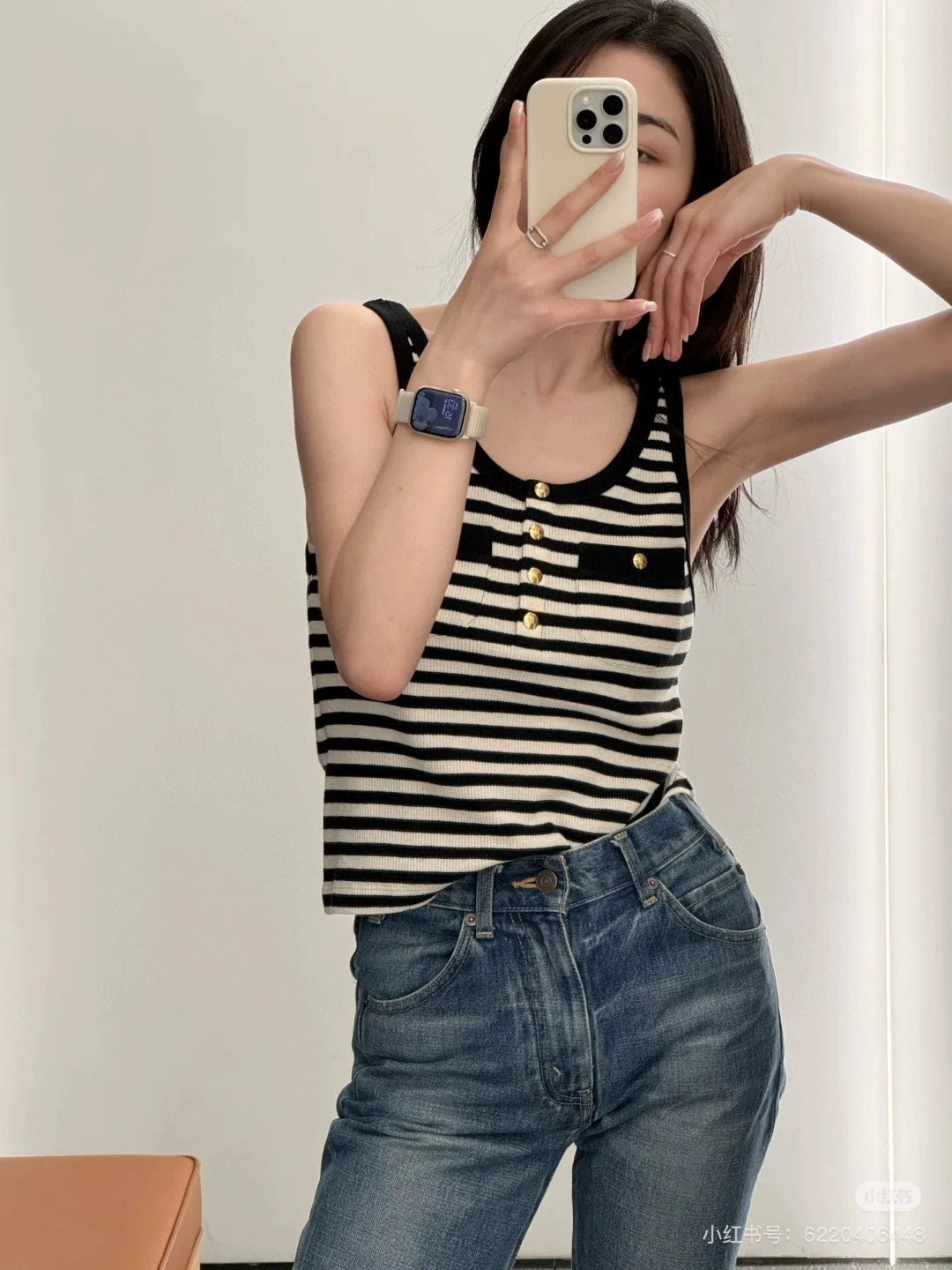 CE 25 new contrast striped button pocket knitted vest