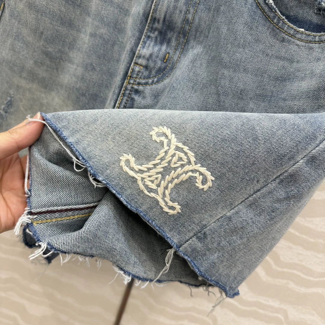 Ce 25 New Hand Hook Embroidered Denim Shorts
