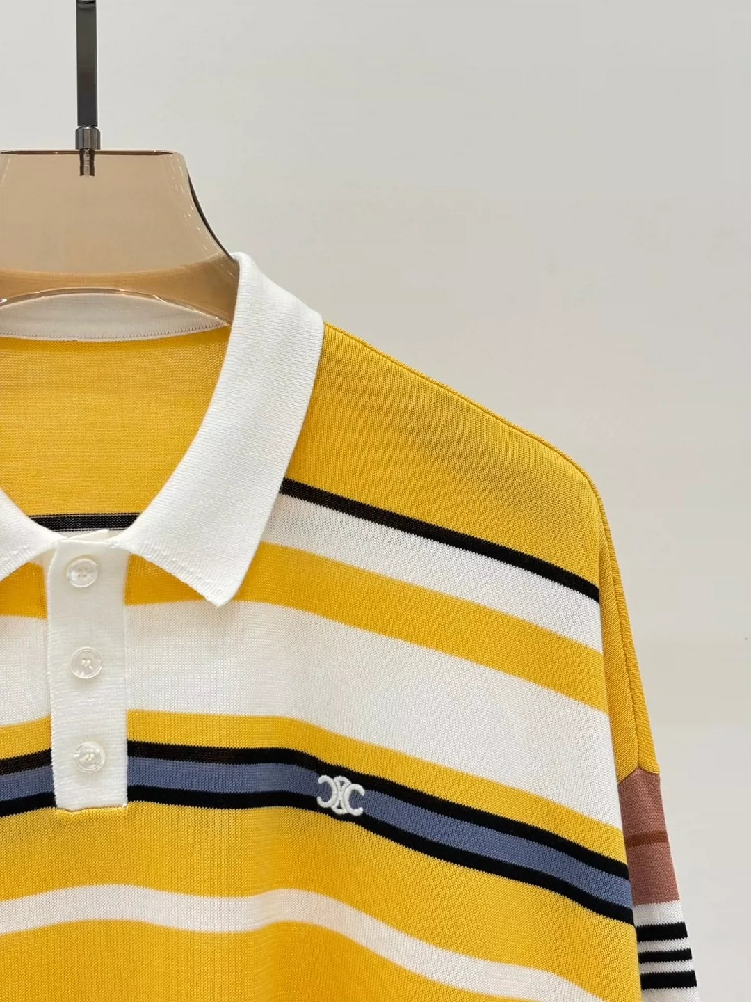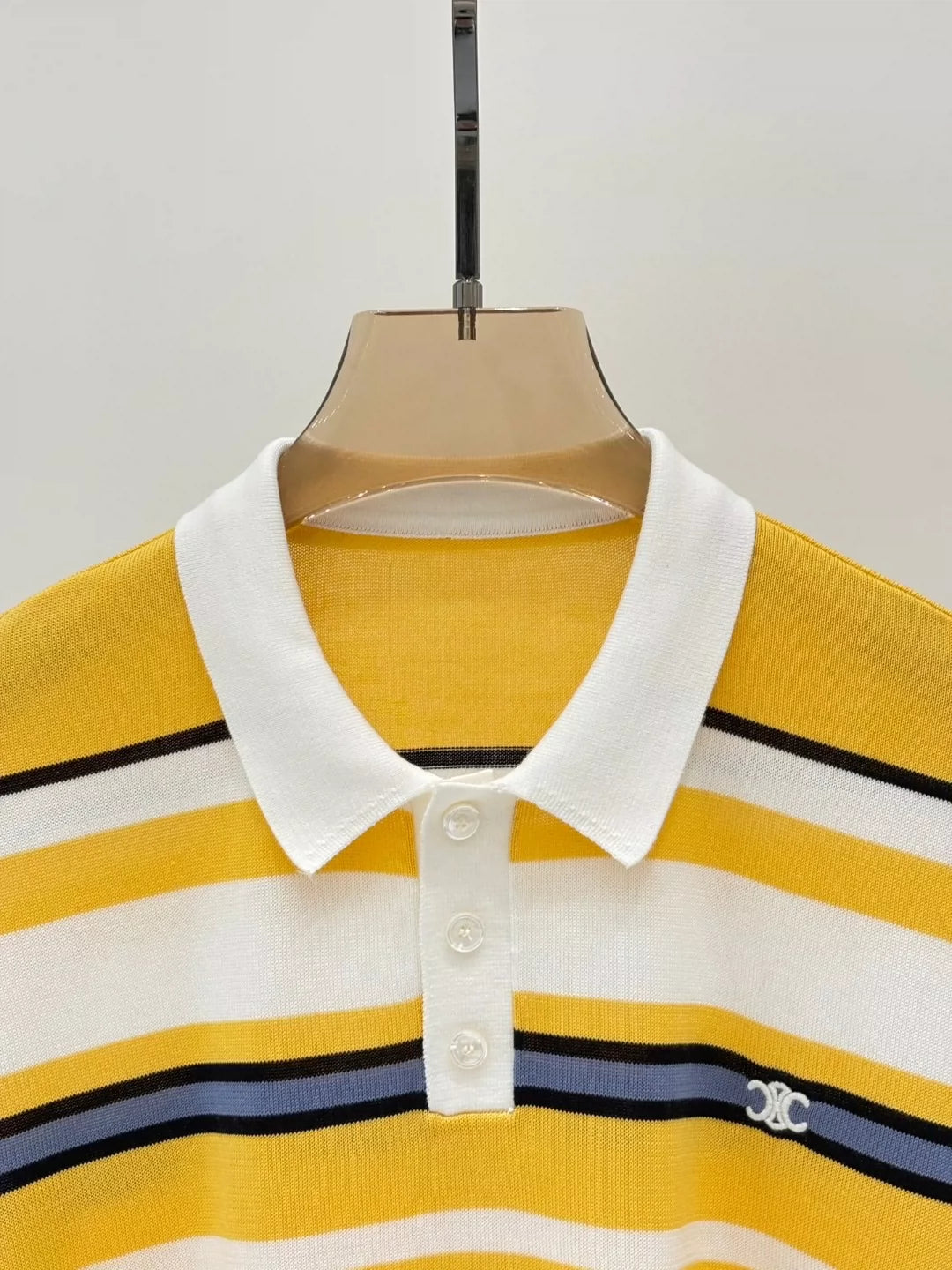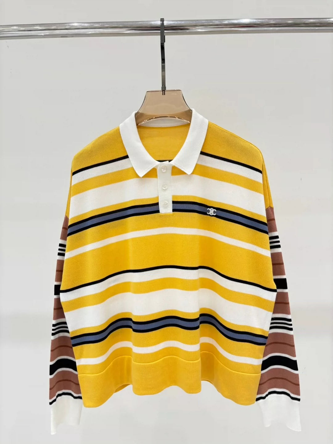CE 25 Spring and Summer new lapel logo embroidery pure cotton knitted long sleeves