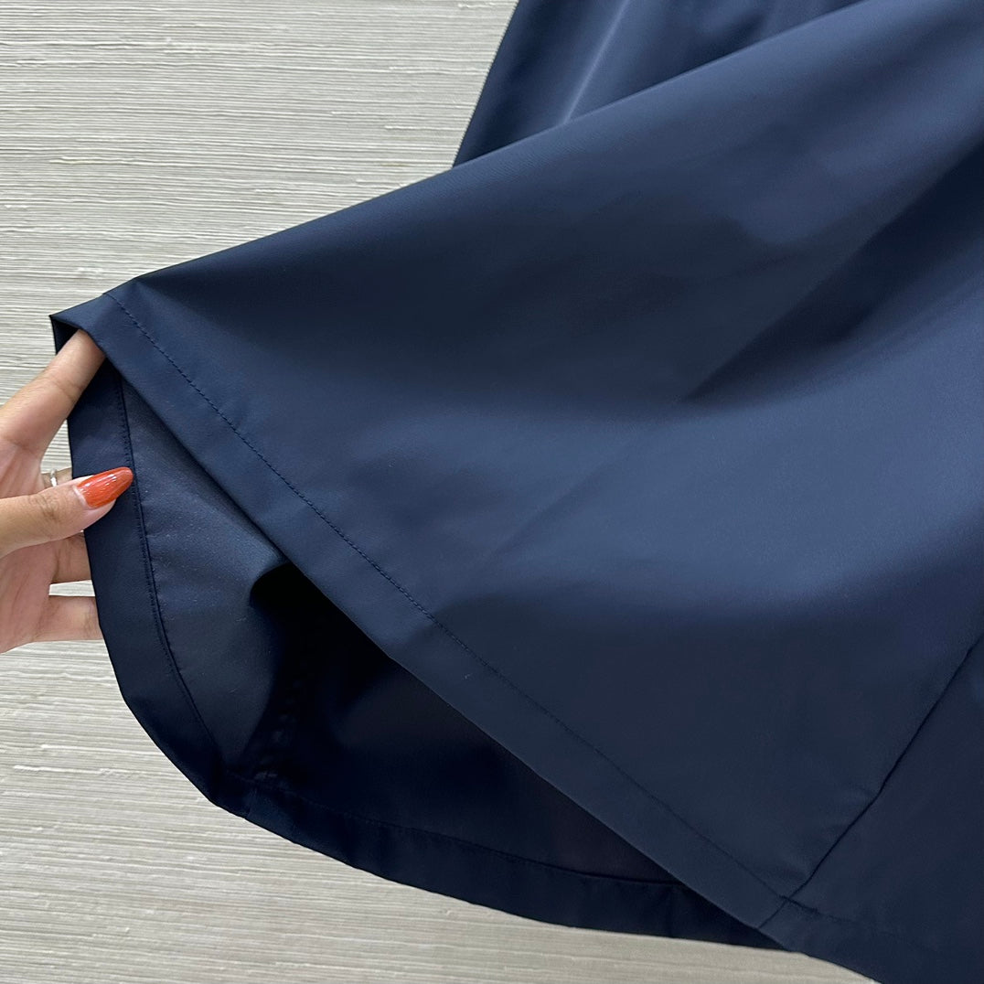 Customized YB imported environmentally friendly recycled nylon material Superior texture Drape gloss High waist umbrella-shaped mid-length skirt version Use waist and abdomen elastic band to adjust Highlight the advantage of slim waist Micro A skirt to modify waist and hips Match pocket edge decoration and triangle logo Enrich the design level More emphasize brand positioning Increase the sense of workwear fashion Middle length Inclusive leg shape Slim and versatile Fashionable and stylish
