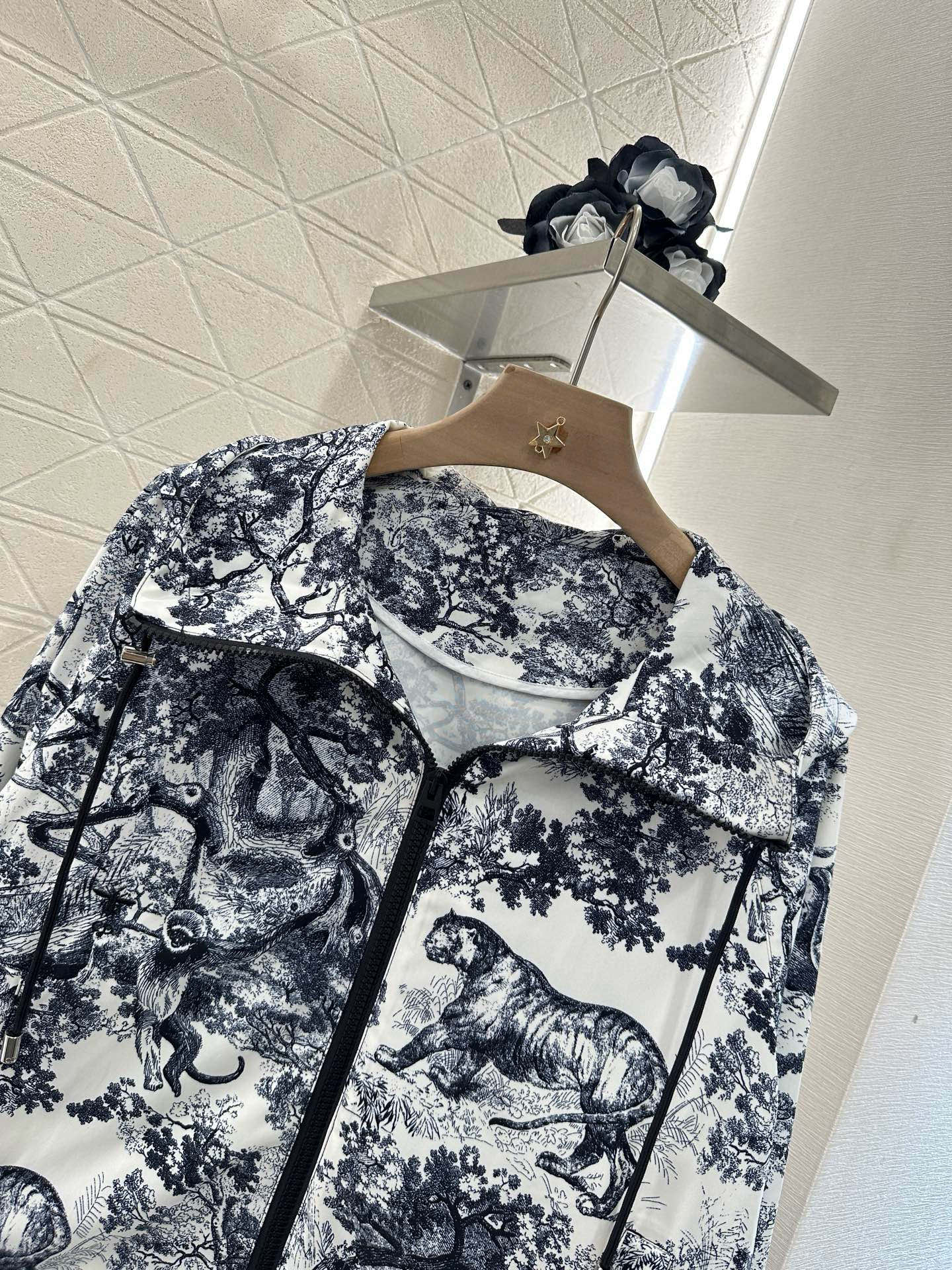 Customized YB imported sun protection material Comfortable and easy to wear Crisp and stylish Hooded sun protection jacket and shorts set Fully printed with natural jungle elements of plants and animals Enhance the casual and refreshing atmosphere At the same time, it echoes the holiday atmosphere of the hot summer Use tailoring and details to enhance the sophistication and enrich the visual effect Match with shorts from the same series The side letter logo ribbon echoes the back to highlight the fashionable and trendy positioning Complete upper body Fashionable and stylish Customized surface and accessories Look for the version High version