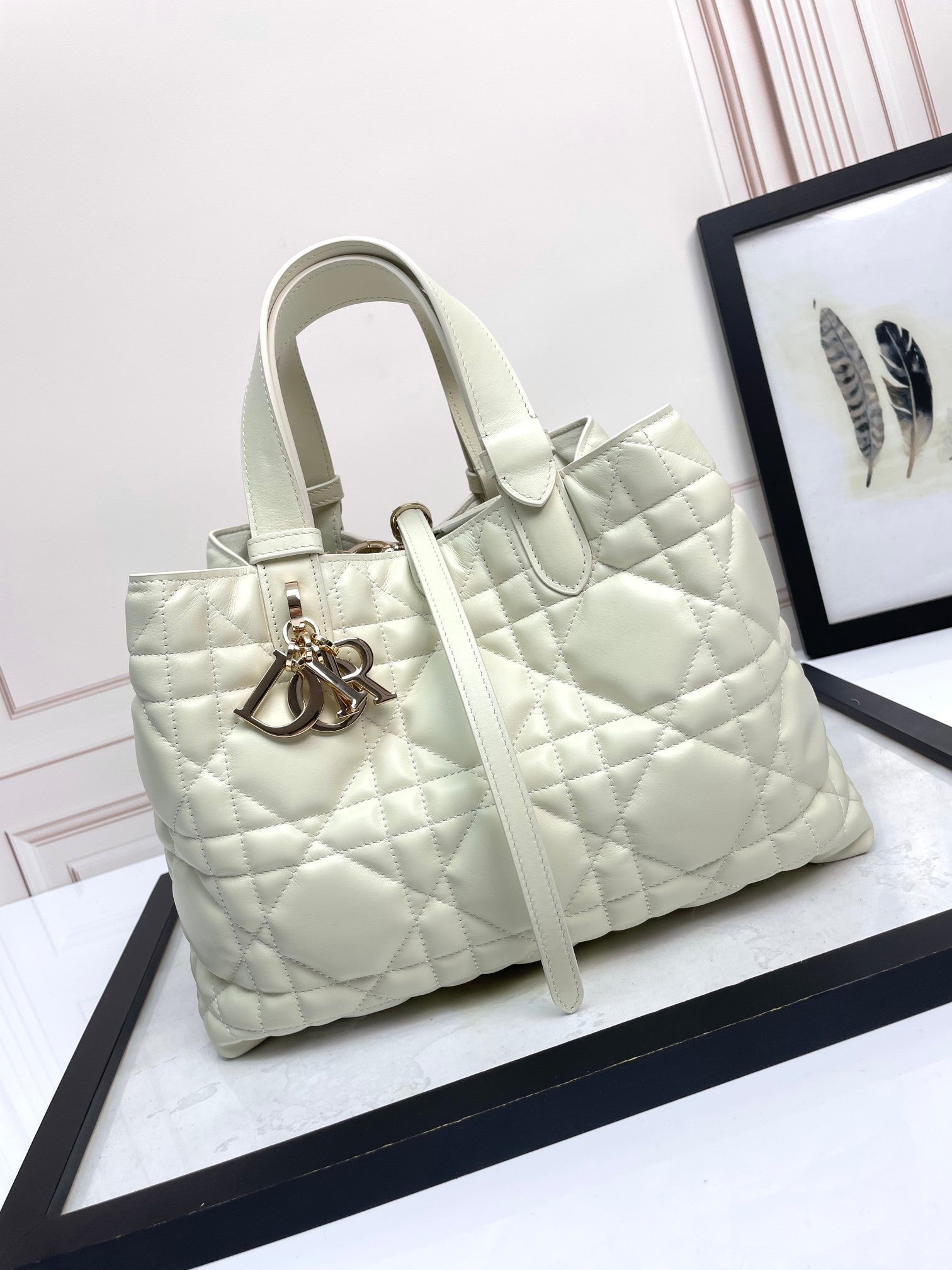 Sheepskin lining 💫✨ Featuring premium hardware and imported stitching 🧵✨ This Toujours handbag made a spectacular debut at the Spring/Summer 2023 collection launch show, with a casual and practical design that is distinctive. Crafted from cream cowhide leather with oversized rattan check stitching, it features spacious interior compartments and pouches to neatly organize your everyday essentials. Featuring a leather lace-up closure for secure storage, the medium style has leather handles with adjustable details for easy carrying.