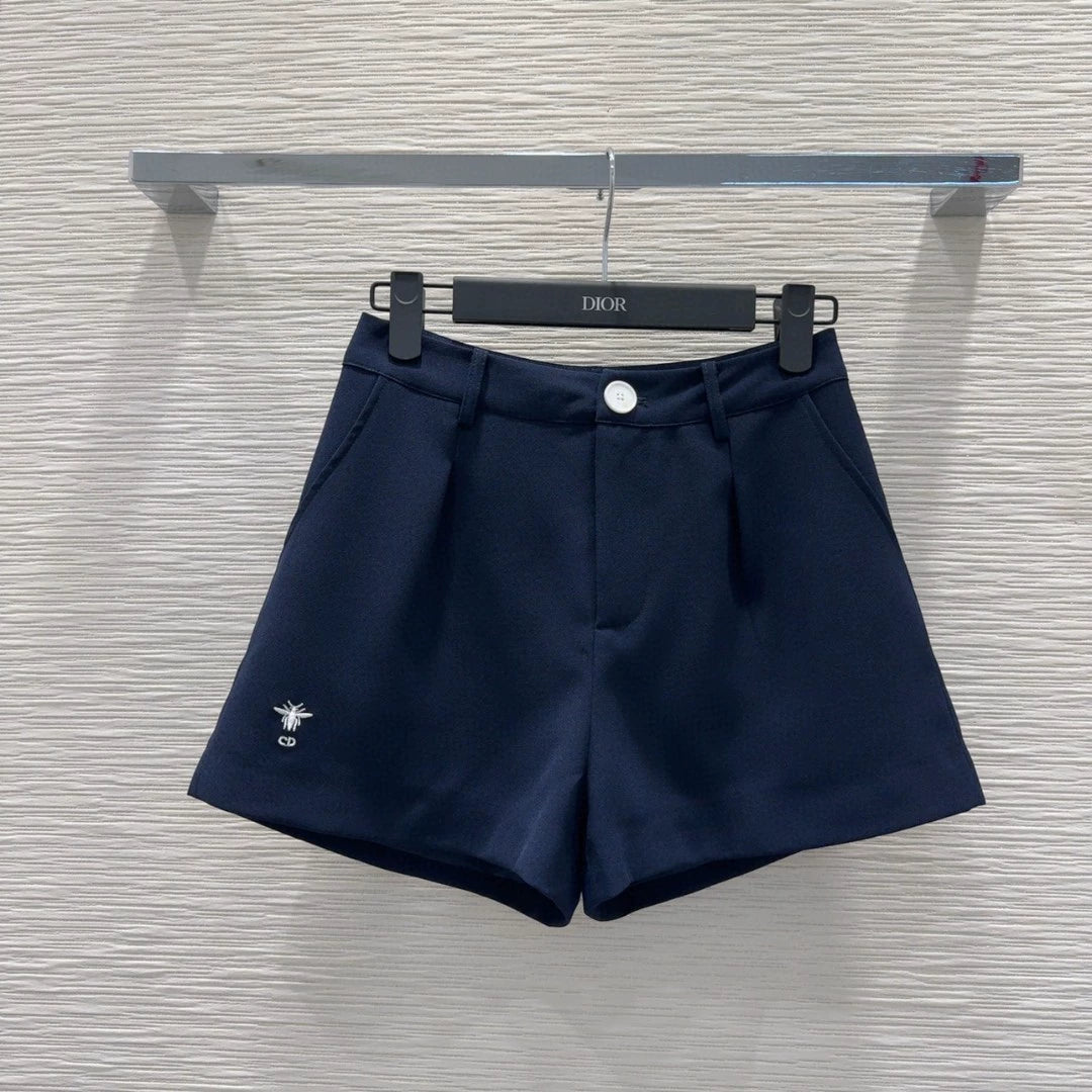 D 25 New Bee Embroidery Single Breasted Lapel Short Sleeve Shorts Suit
