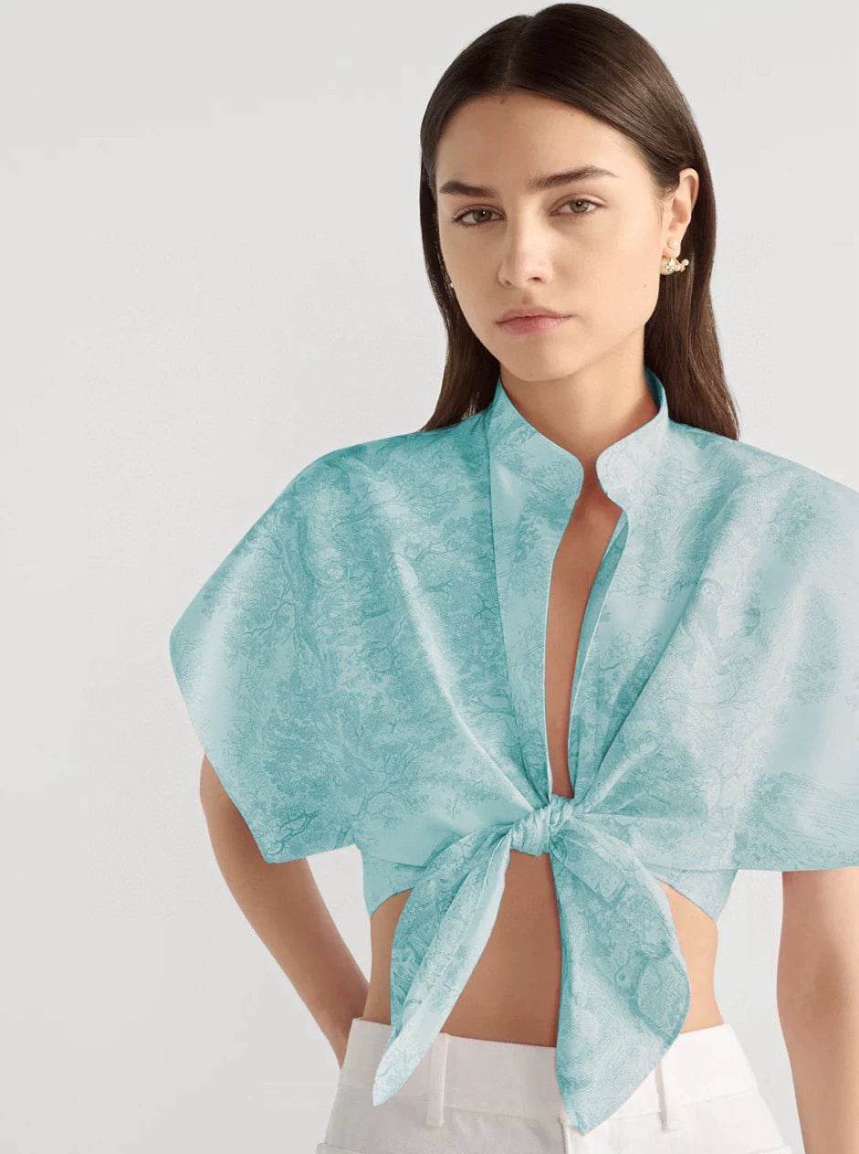 The jungle animal print all over the body brings a strong vacation atmosphere to highlight the brand tone Turtleneck shoulder hem tie knot style Animal flower color adds a sense of styling layers to create a sense of literature on the body more fashionable fashionable Fabrics and accessories development Commuter date with the same series of bottoms to wear a simple atmosphere