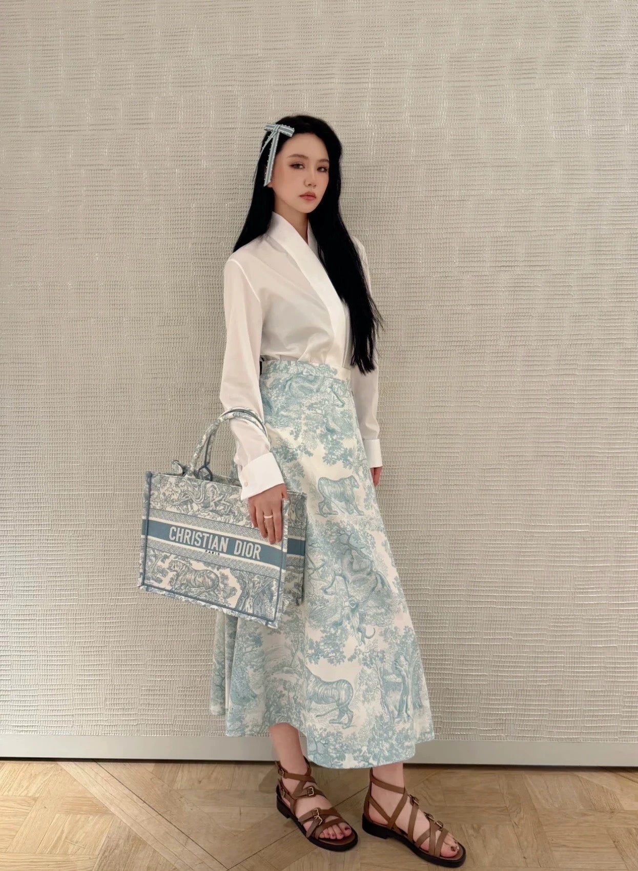 Jungle animal print all over the body to bring a strong resort atmosphere to highlight the brand tone oversized swing waist head full of material customized buttons on both sides of the animal color to add a sense of styling layering using a moderate length to modify the lower half of the body line to create a sense of literary sense on the upper body is more fashionable fashionable fabrics and accessories to develop a high-waisted mid-length half-skirt silhouette for a date to commute to work with the series of the same series of tops to wear a simple atmosphere