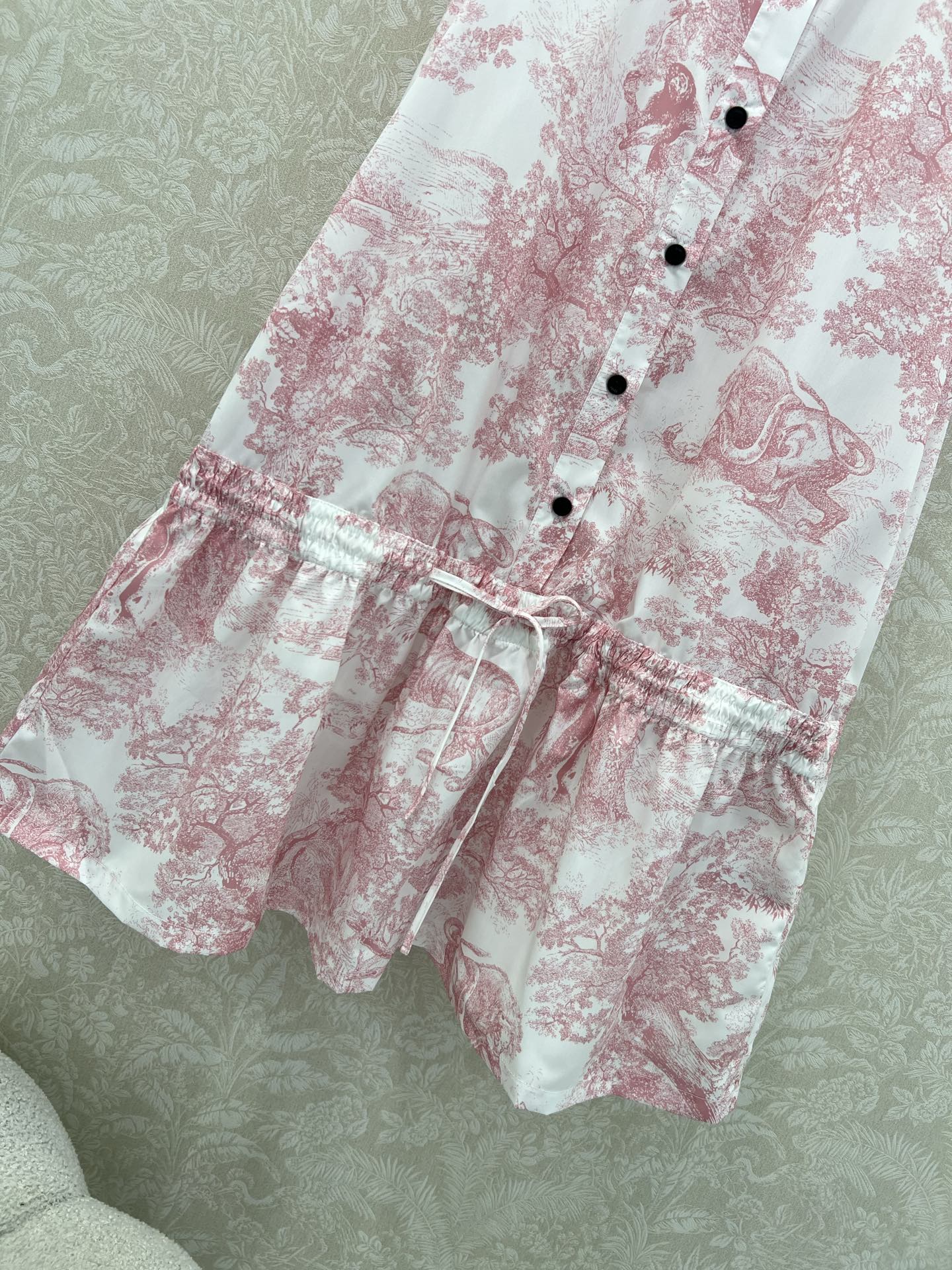 Throughout the body full print jungle animal pattern Collar undershirt hem drawstring pleated design play unrestrained free soul idyllic style temperament goddess Animal flower color to add modelling layering sense Moderate length modification of the lower half of the body line to create a sense of literature on the upper body is more foreign stylish fashionable Fabric and accessories development, the original customized material is lightweight and comfortable.