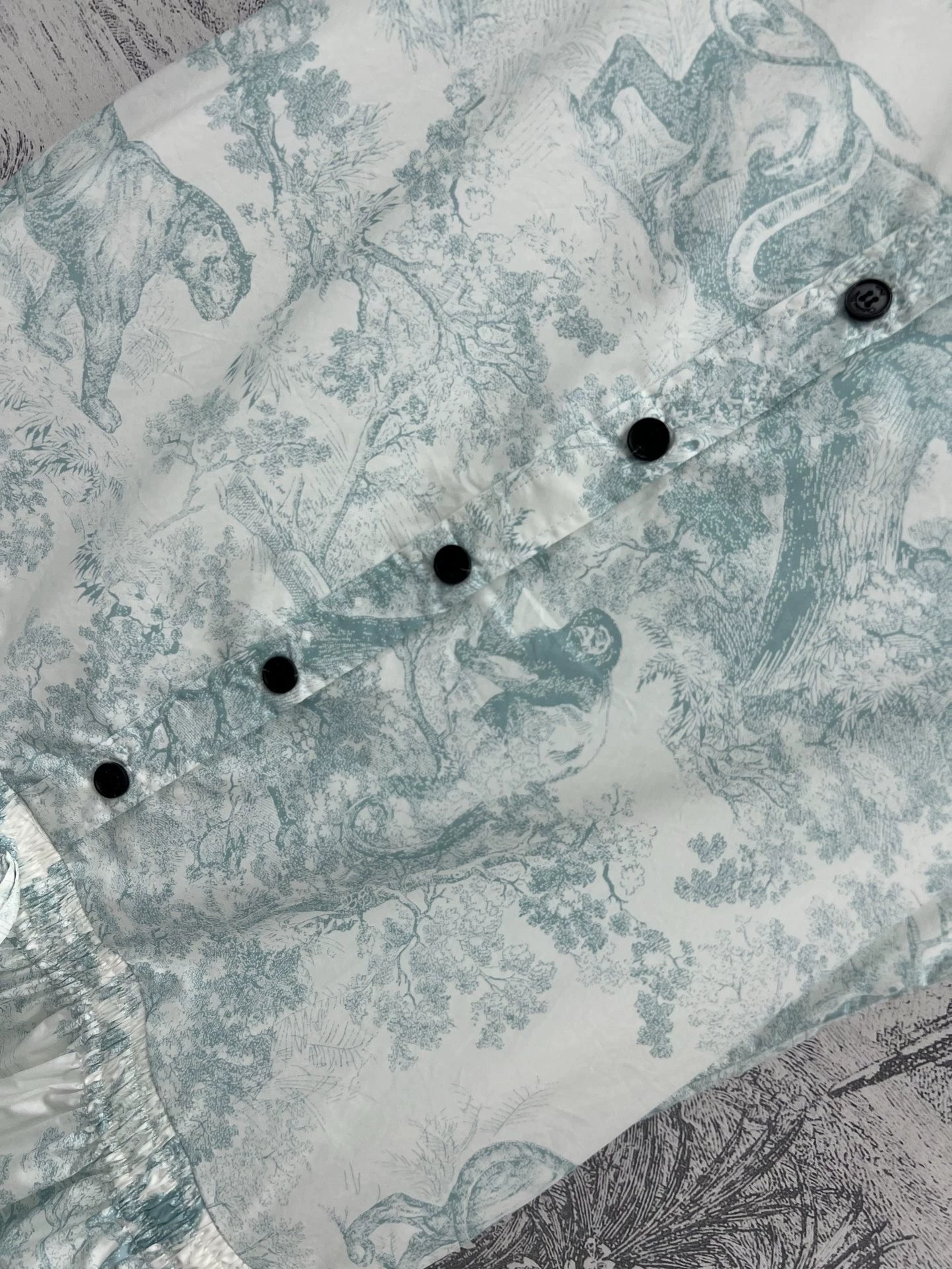 Throughout the body full print jungle animal pattern Collar undershirt hem drawstring pleated design play unrestrained free soul idyllic style temperament goddess Animal flower color to add modelling layering sense Moderate length modification of the lower half of the body line to create a sense of literature on the upper body is more foreign stylish fashionable Fabric and accessories development, the original customized material is lightweight and comfortable.