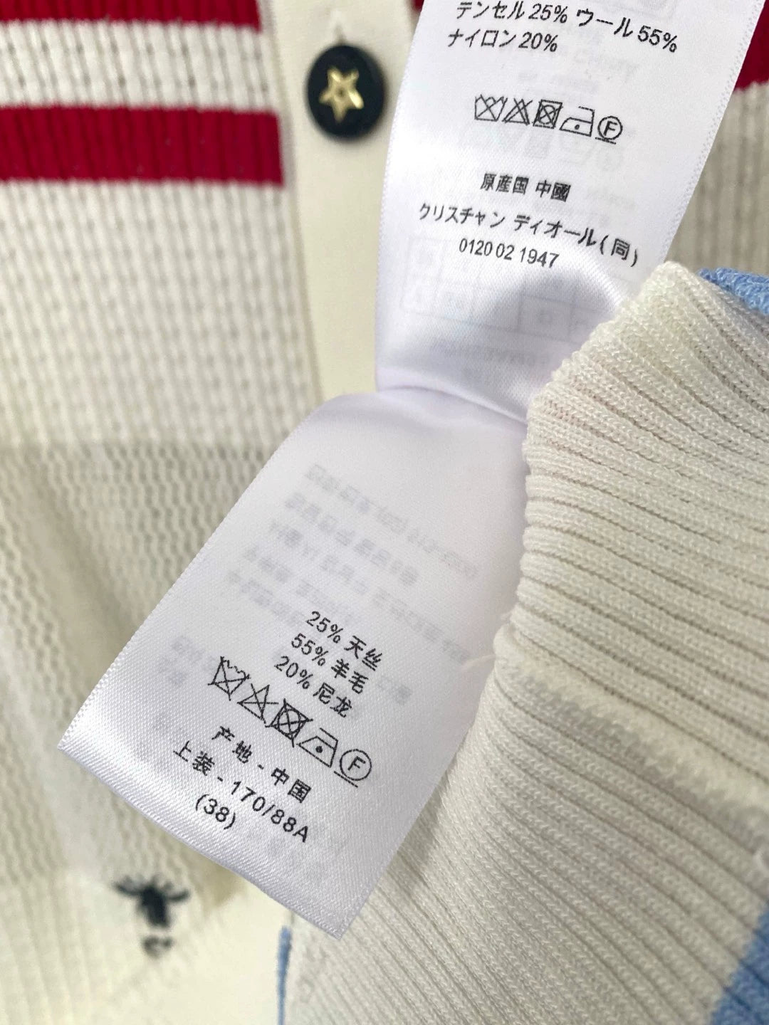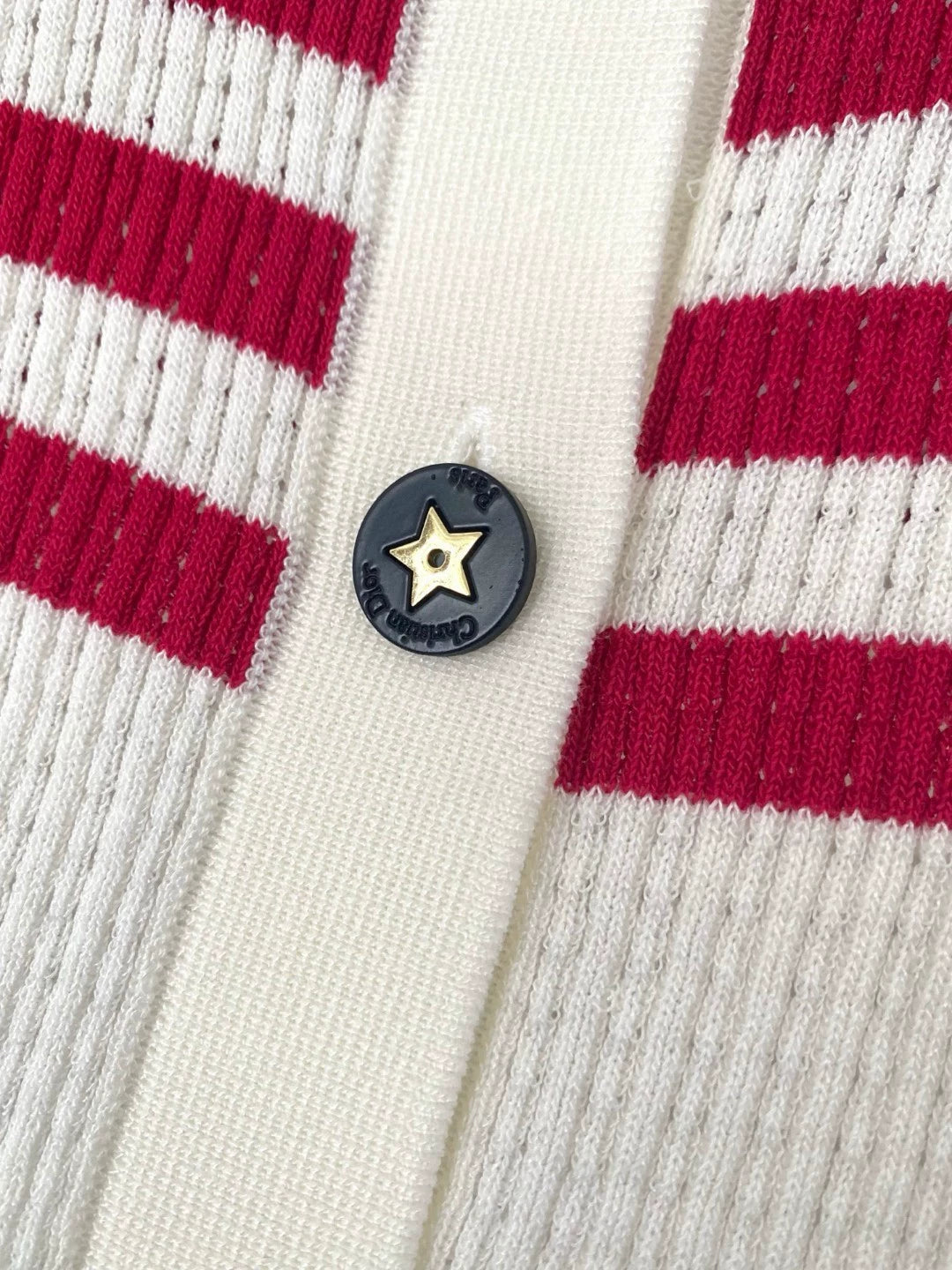 D 25 new striped bee embroidery single-breasted button-down lapel short-sleeved knitted cardigan