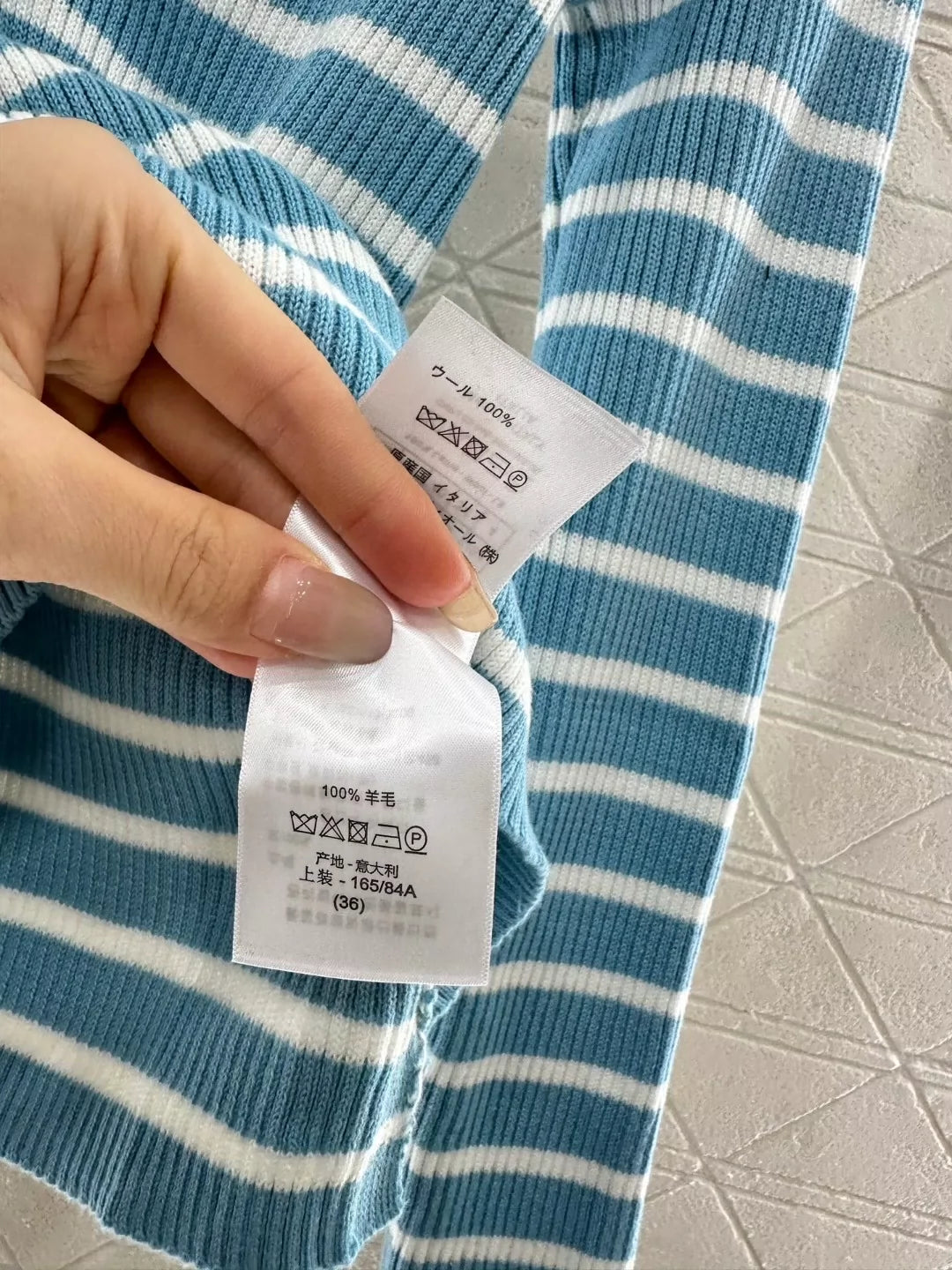 D Spring/Summer 25 Shawl-neck striped knit long-sleeve top.