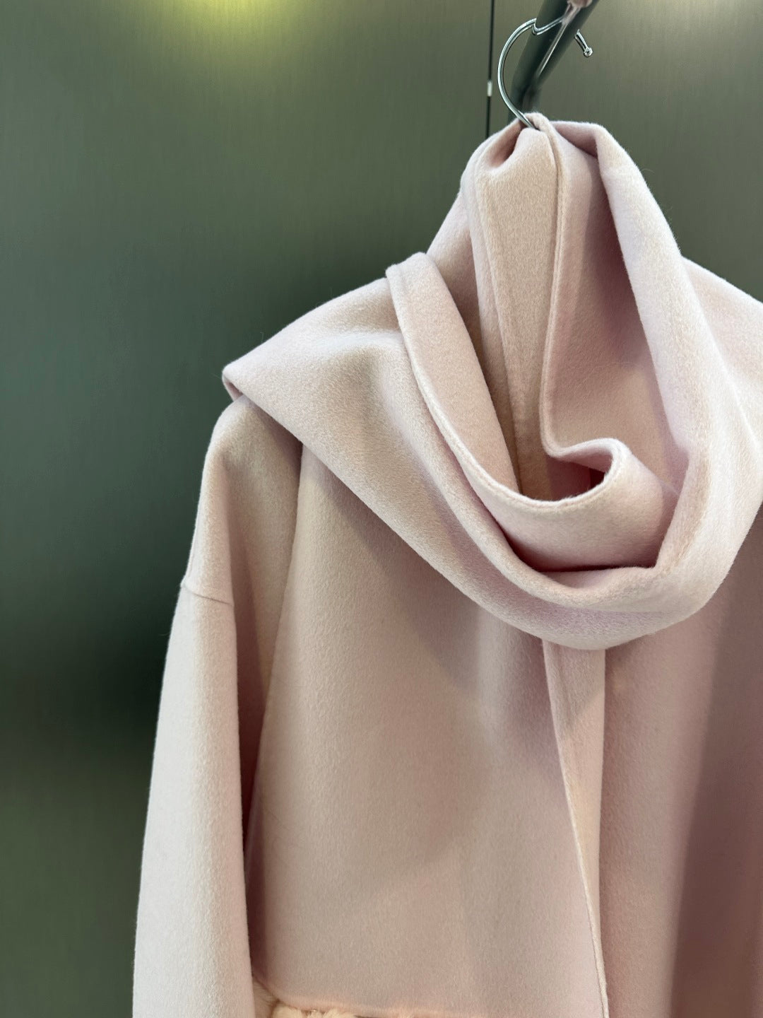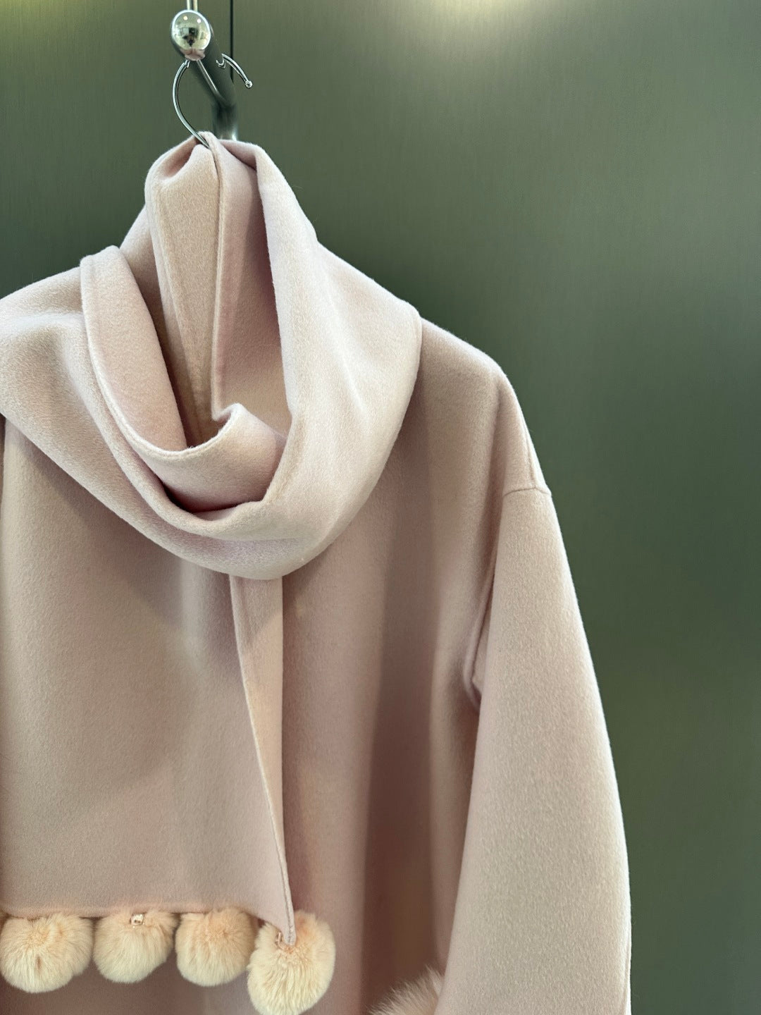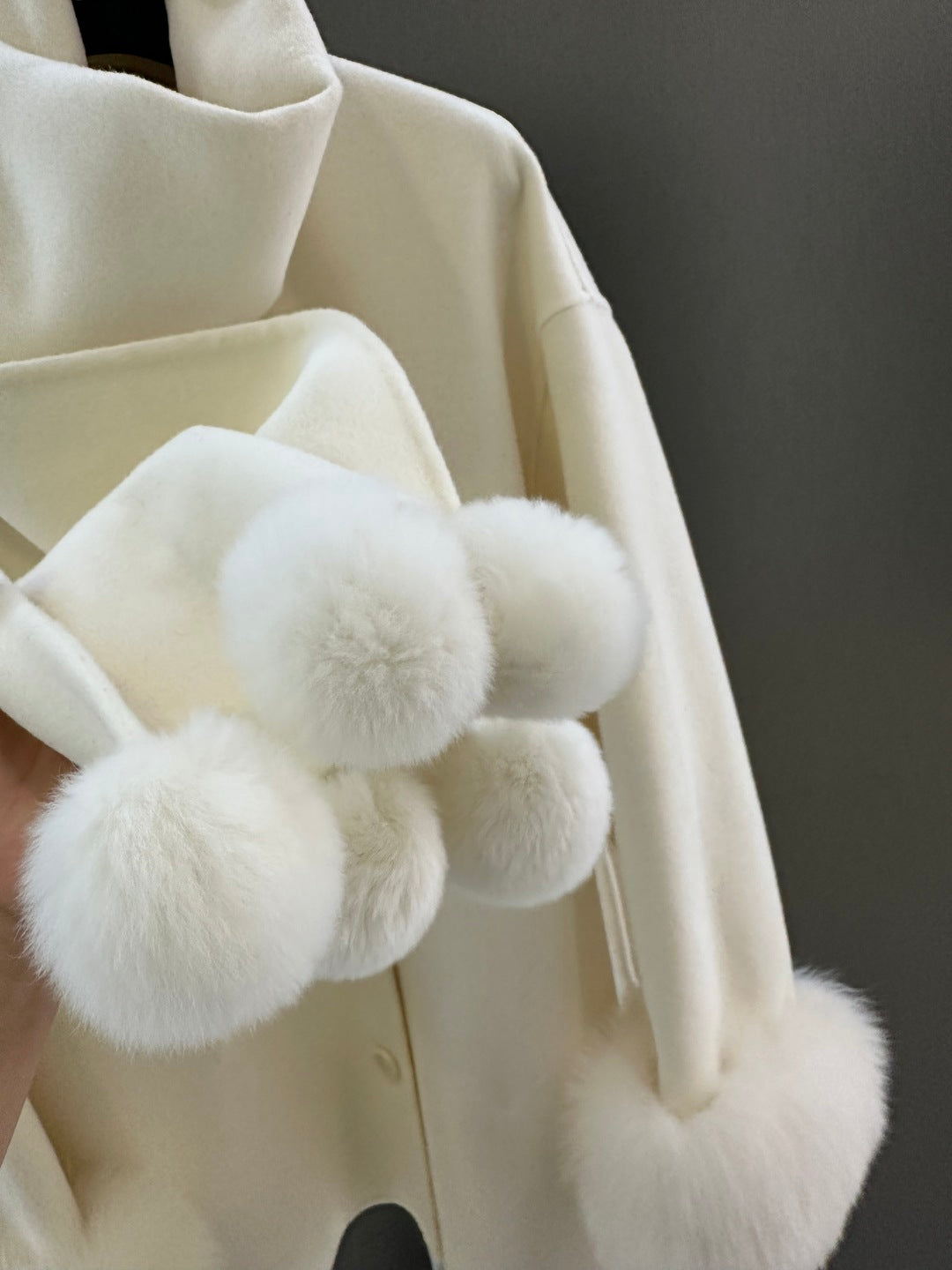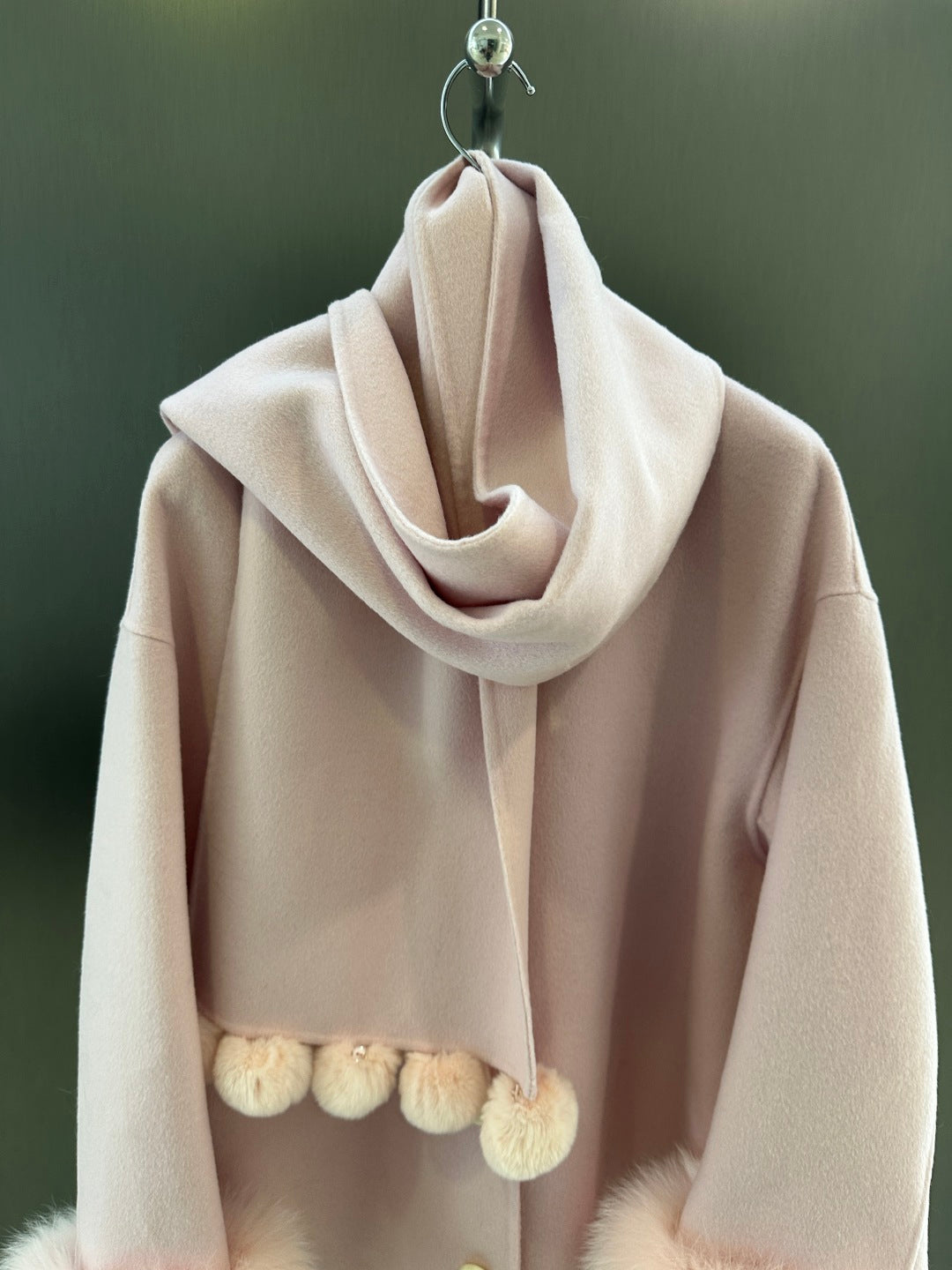 Di 25 New fox fur wool coat with matching scarf(BEIGI/BLACK/PINK)