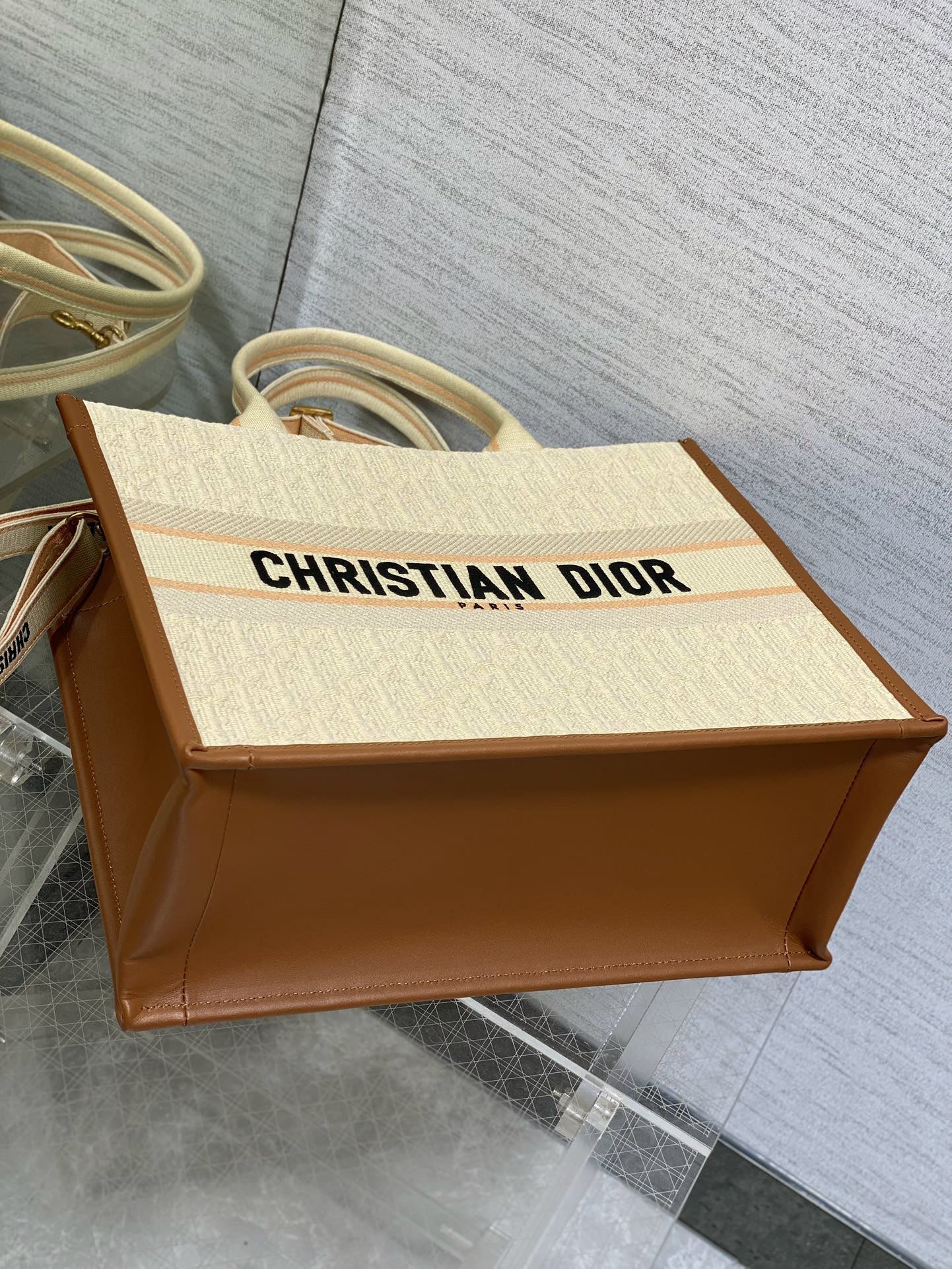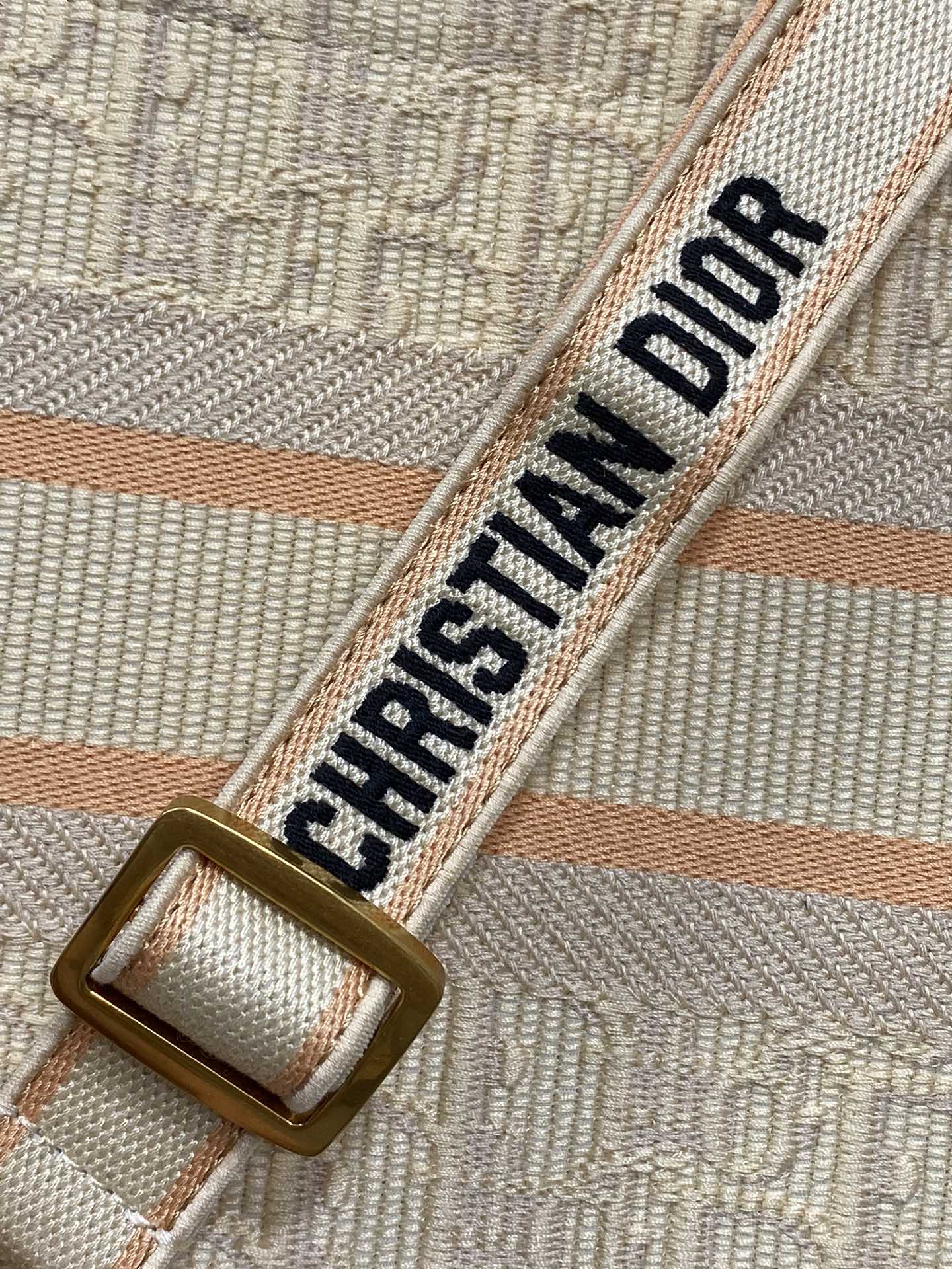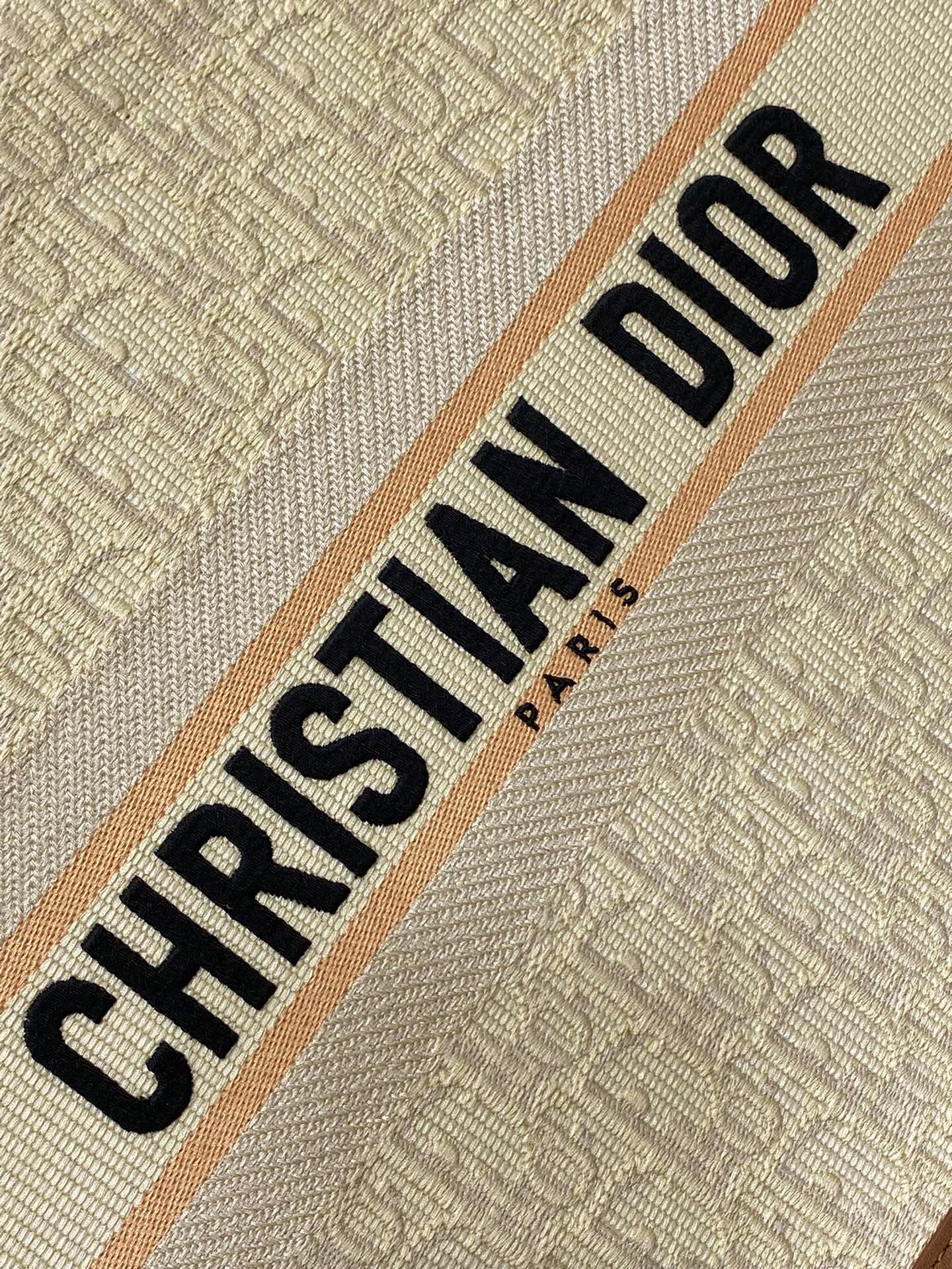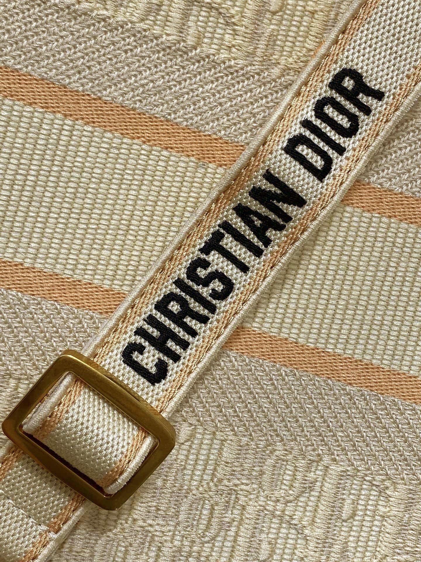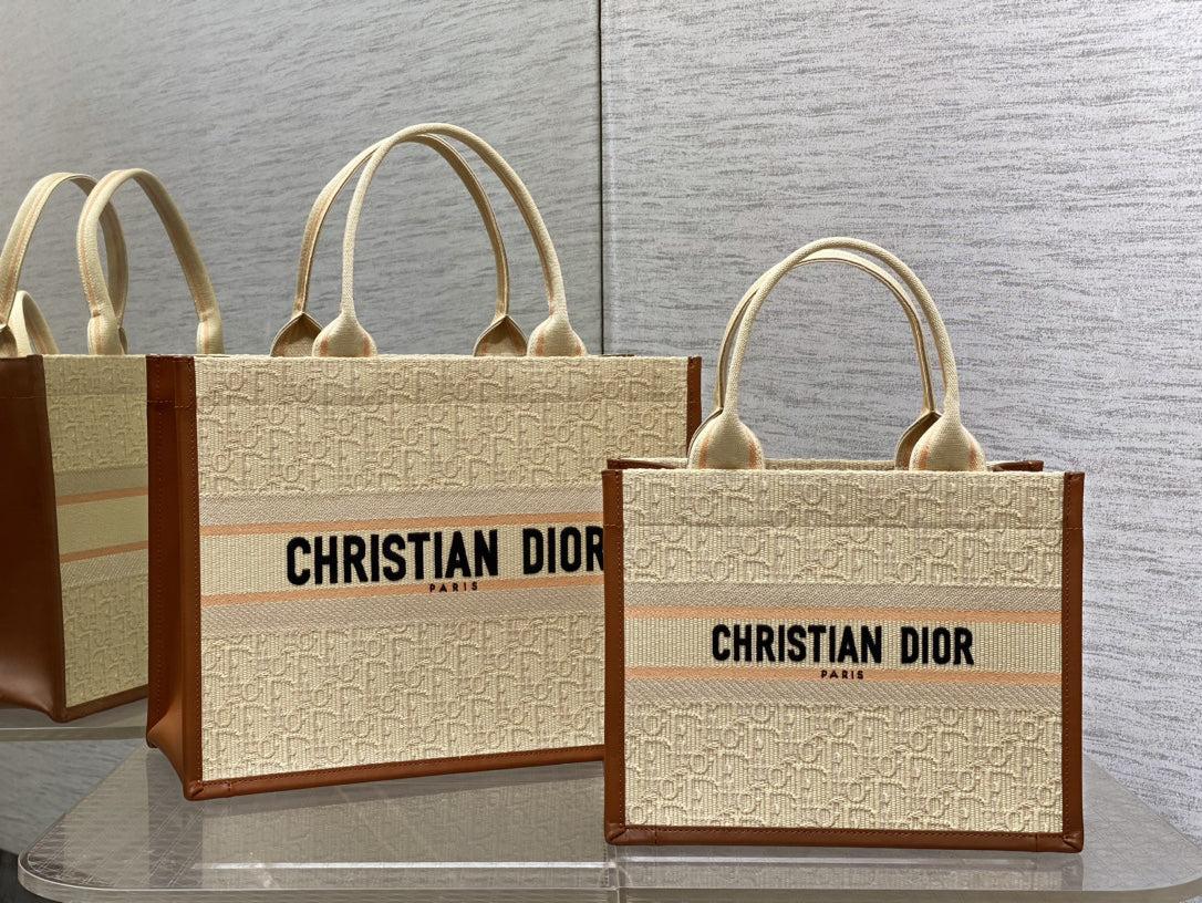 D Book Tote Bag Beige Oblique Embroidered Raffia and Camel Calfskin