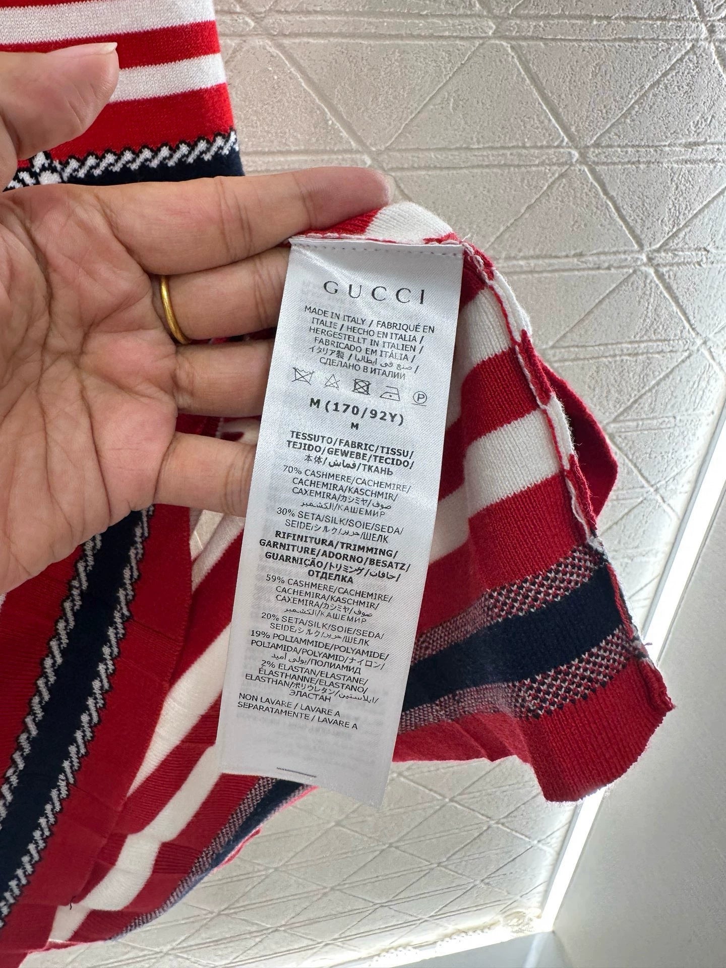 Imported yarns Fine texture Comfortable and breathable Collar knit short-sleeved dress Half placket Printed buttons highlight the delicate details Red and white stripes on the body Interwoven navy style Romantic flavor pulling full In the collar cuffs and waist skirt dark outlined silhouette Forms a collision with the full elasticity of the fabric Fit more skinny Pleated hem style accommodates the figure more loose sense of vacation style On the top of the body to match the ageing chic style