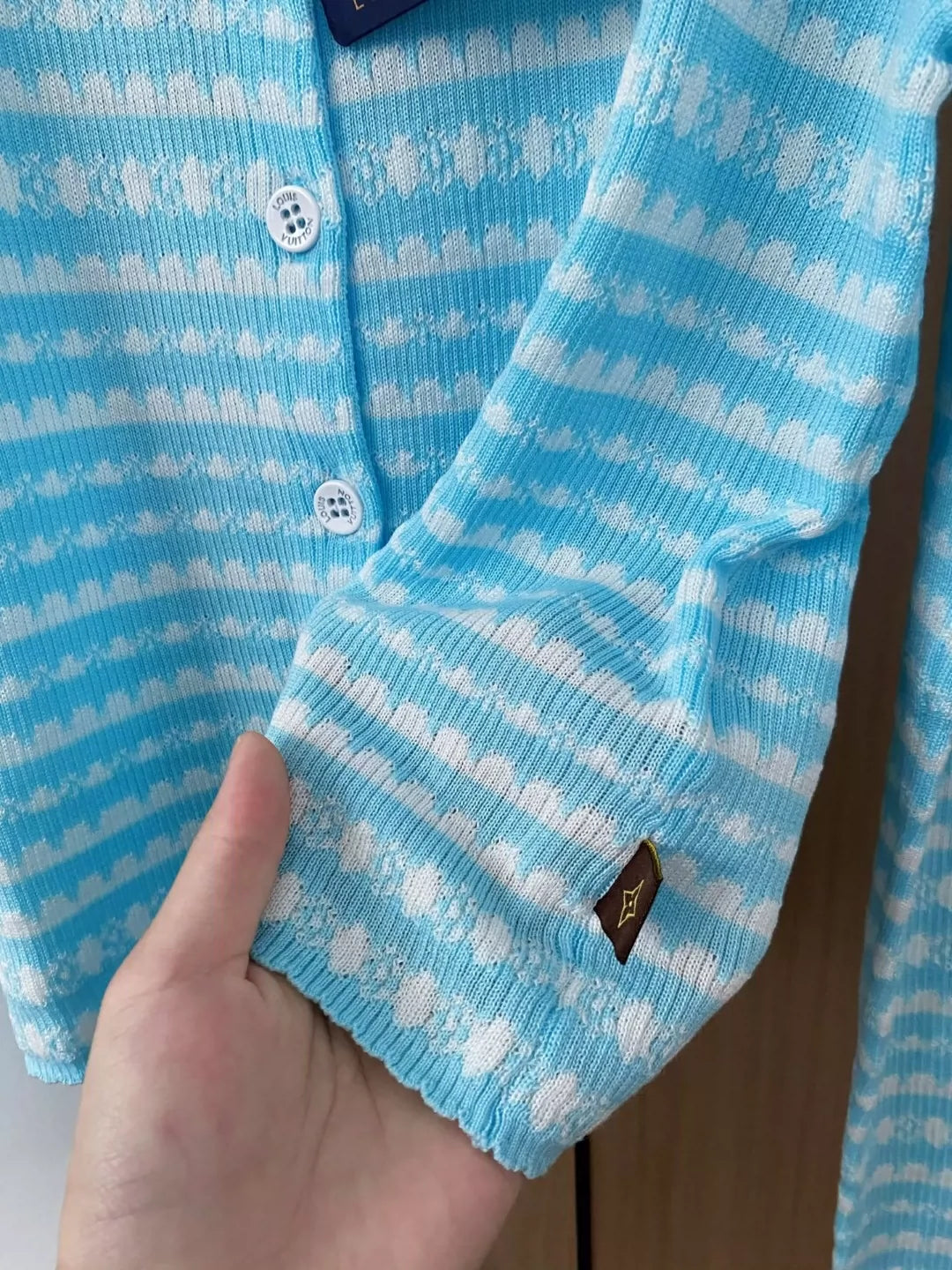 L 25 New color clashing striped leather single-breasted round neck long-sleeved knitted cardigan