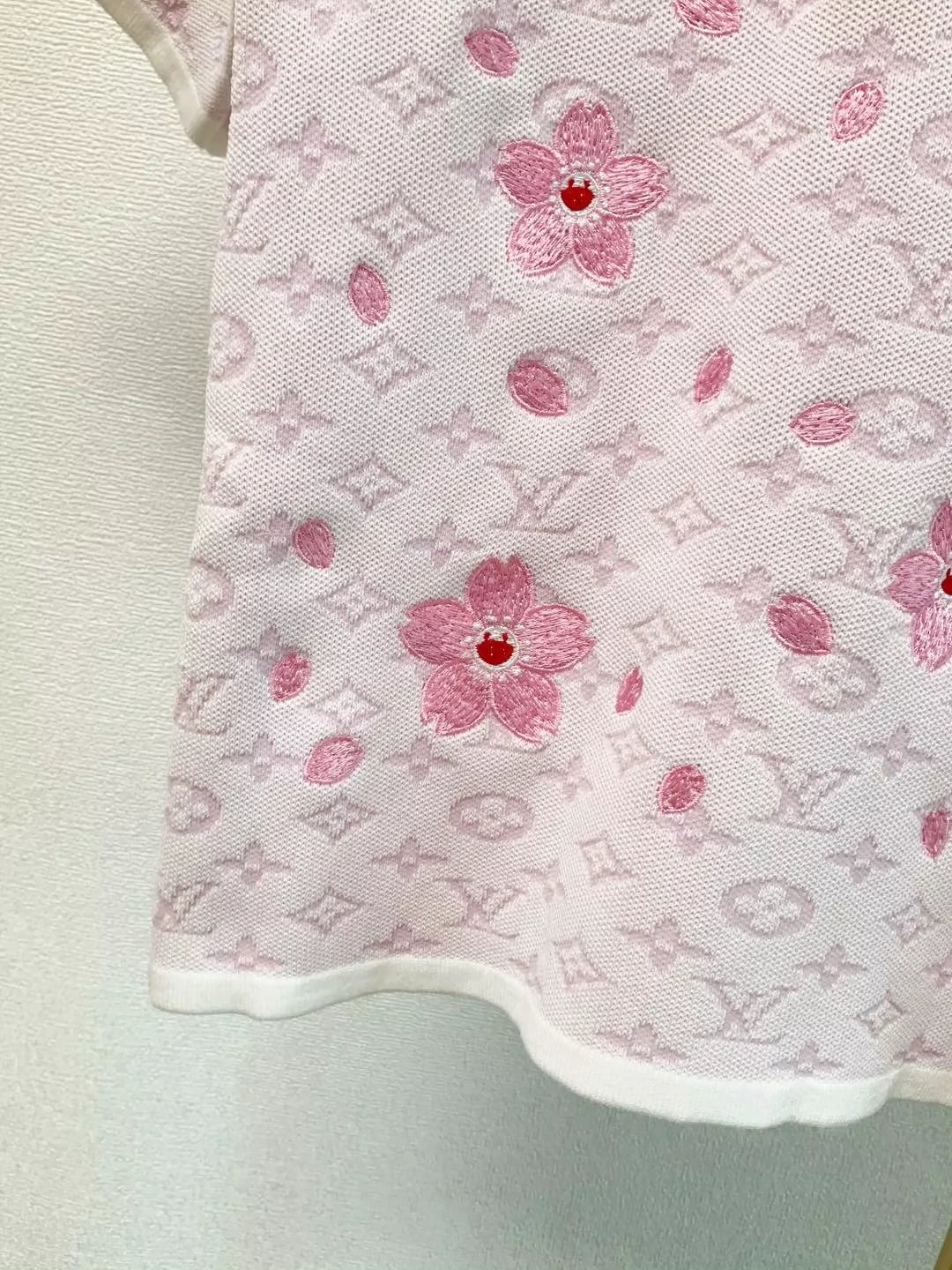L 25 New Letter Full Print Embossed Flower Embroidery Knit Crew Neck Short Sleeve