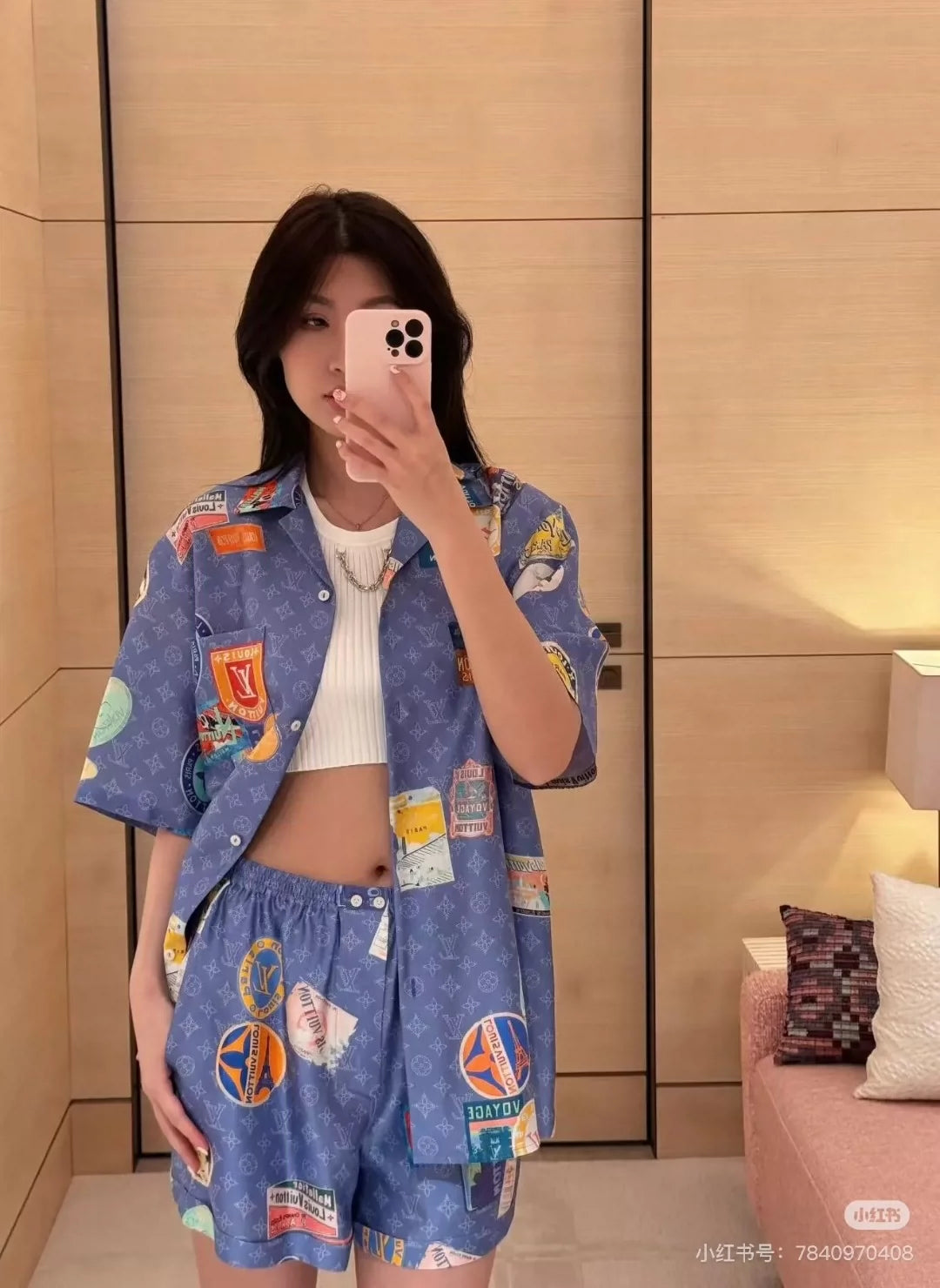 L 25 New Poster Badge Print Printed Silk Short Sleeve Shirt!