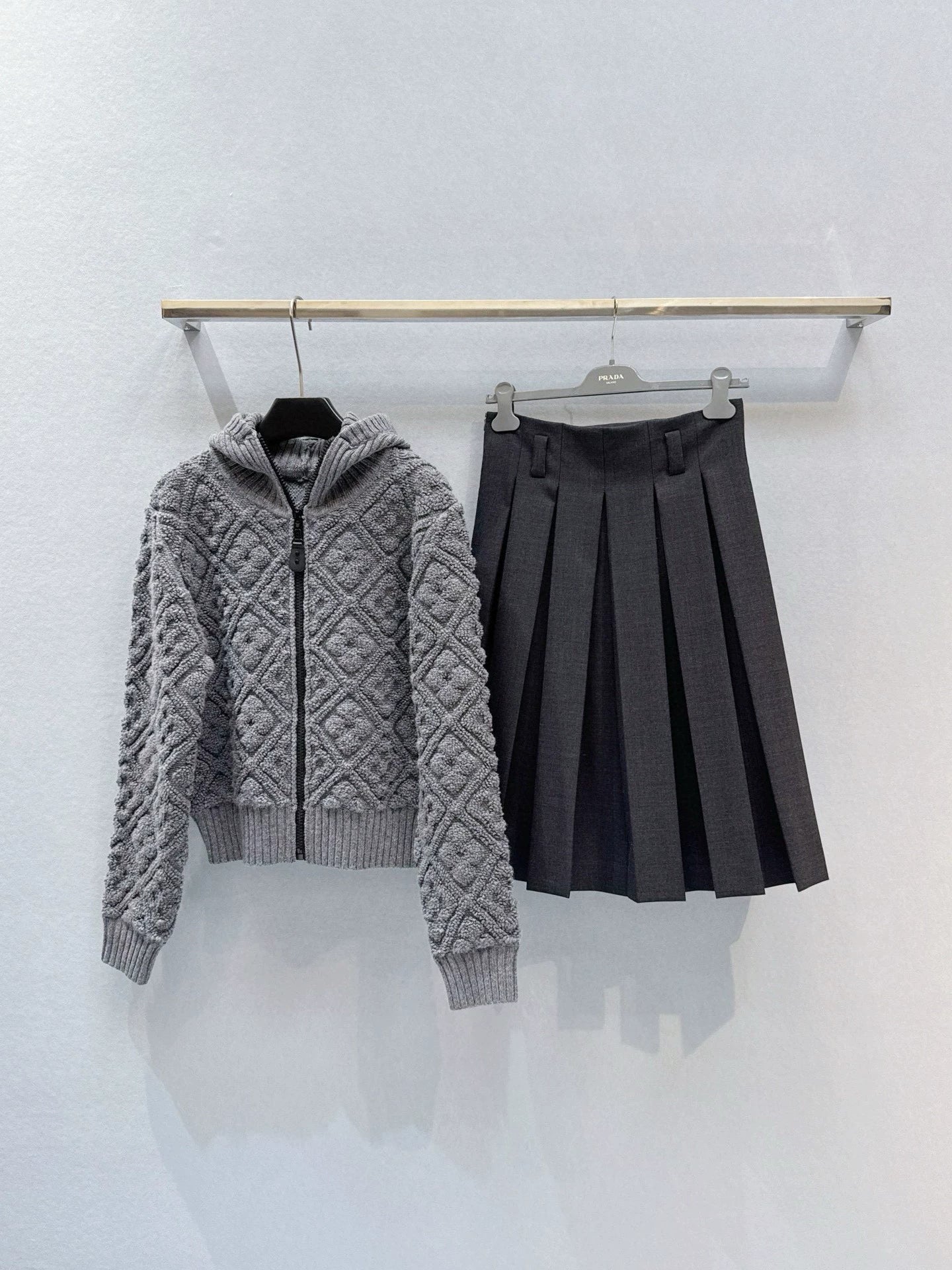 L 25 Yarn Diamond Zipper Long Sleeve Hoodie