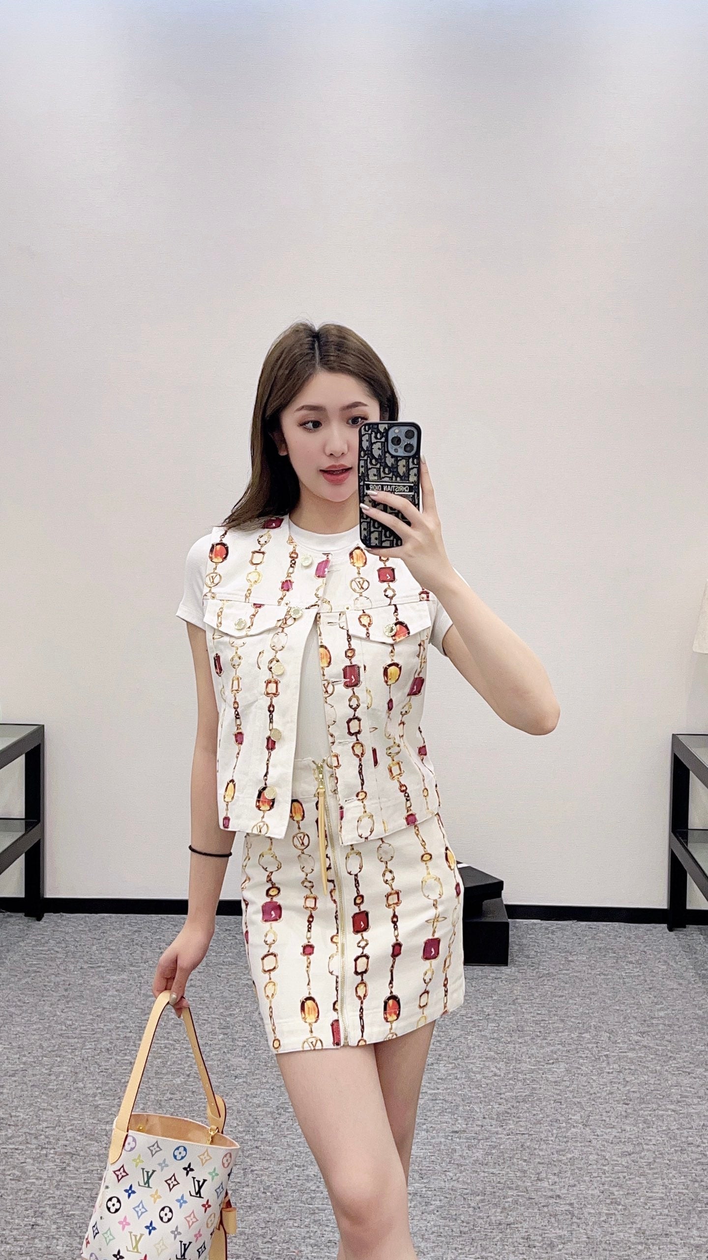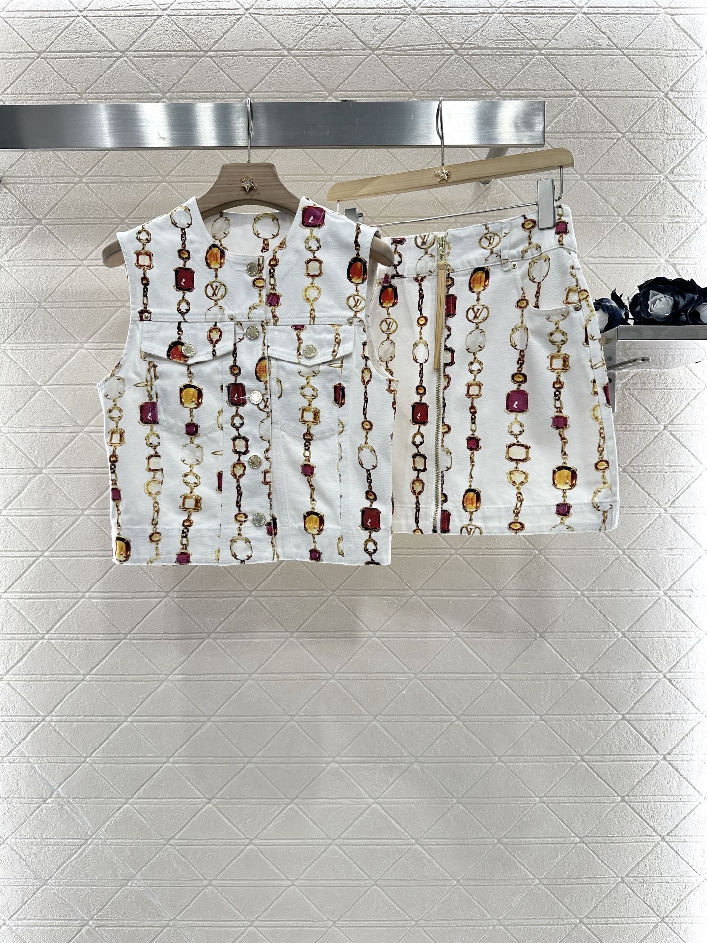 The L 2025 Denim Vest and Skirt Set offers a sophisticated take on classic denim. This expertly designed ensemble pairs a structured vest with a coordinating skirt, crafted from high-quality denim for durability and style. The tailored fit of both pieces enhances your silhouette, making it ideal for polished casual looks or layered outfits. Perfect for those who appreciate refined craftsmanship and versatile fashion, this set delivers a balanced blend of contemporary design and timeless appeal.