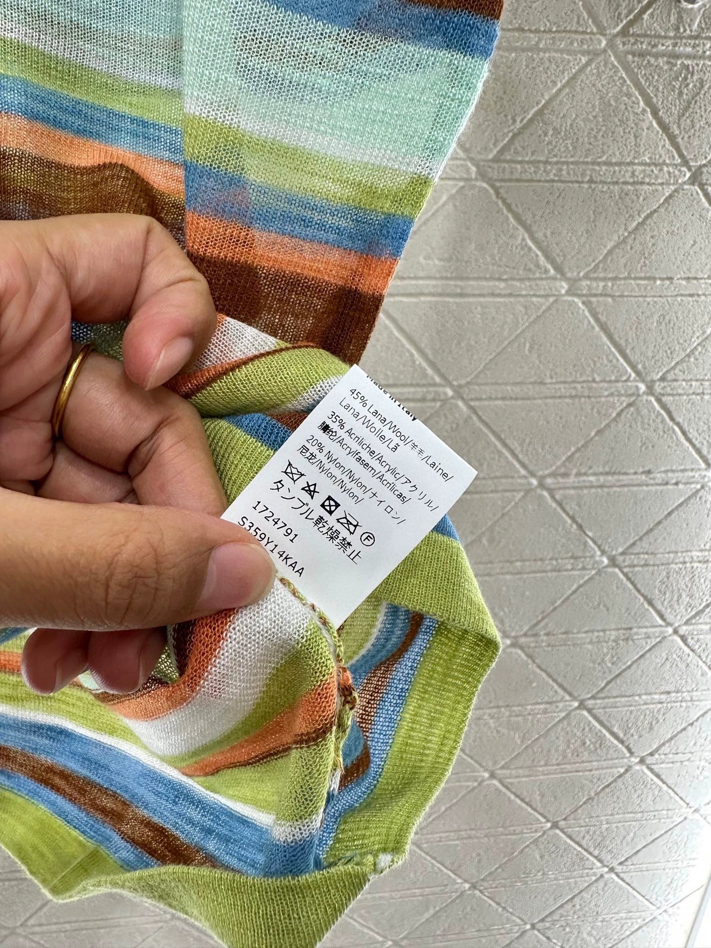 Customized YB wool yarn weaving, soft and comfortable, stylish and slimming. Lapel knitted polo short sleeves tailored. Loose version to show lazy and relaxed posture. The whole body is colorful and striped to create a romantic and free fresh style. The black edging on the front of the collar + embroidered totem decoration adds a youthful atmosphere to the upper body. Customized fabrics for all seasons. Look for the version. High version
